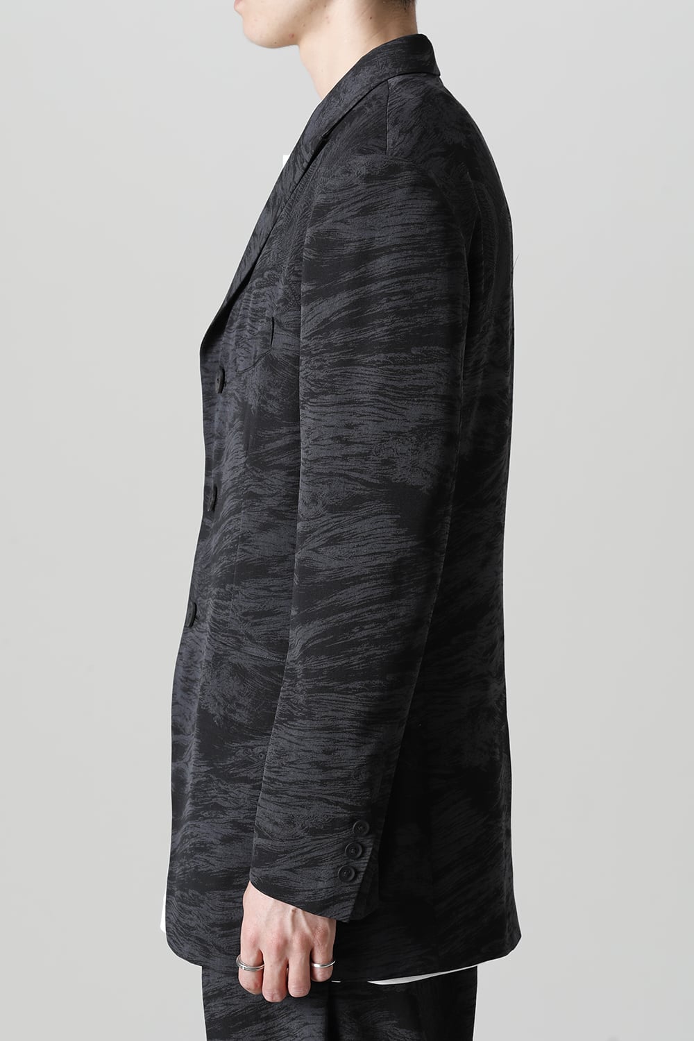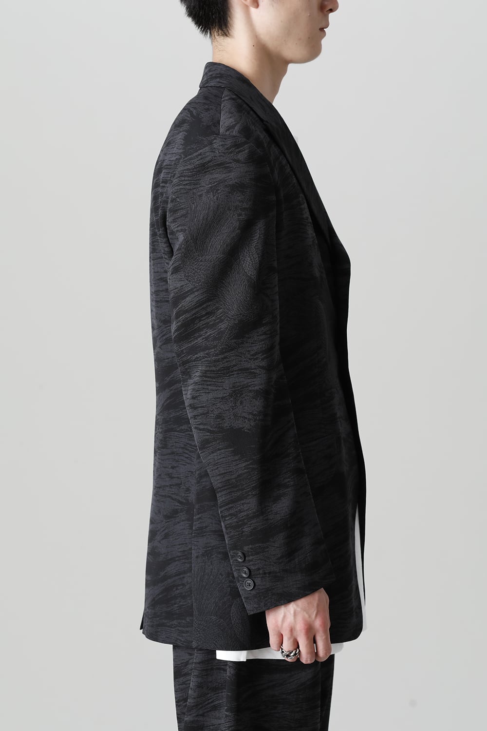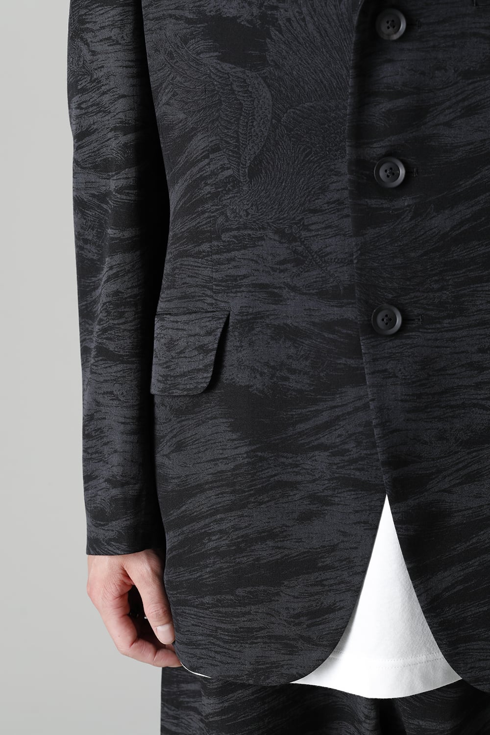 This is a picturesque modern Japanese peak lapel jacket with a hawk motif and waves all over.