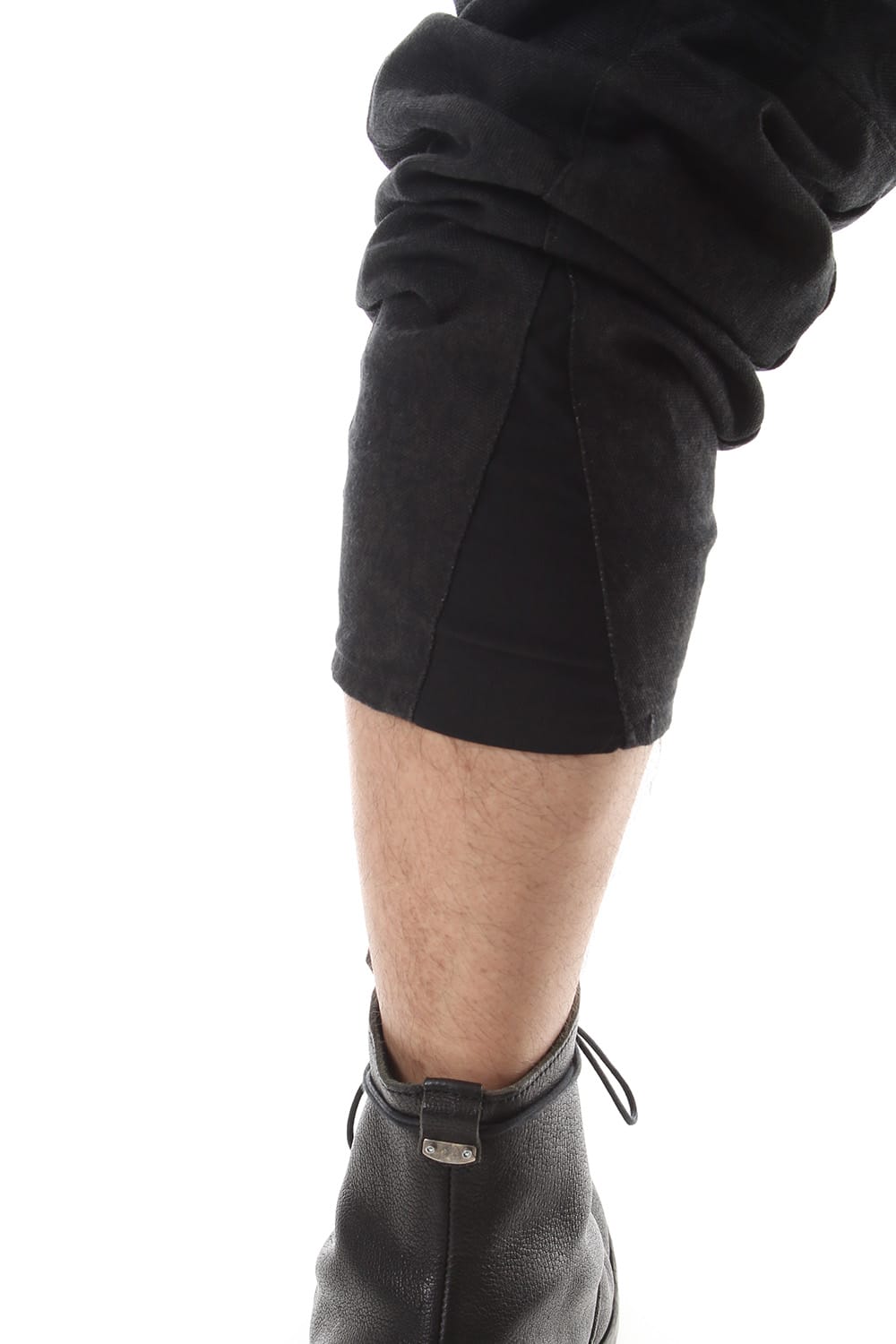 -High rise drop crotch, voluminous waist and sharp tapered hem.