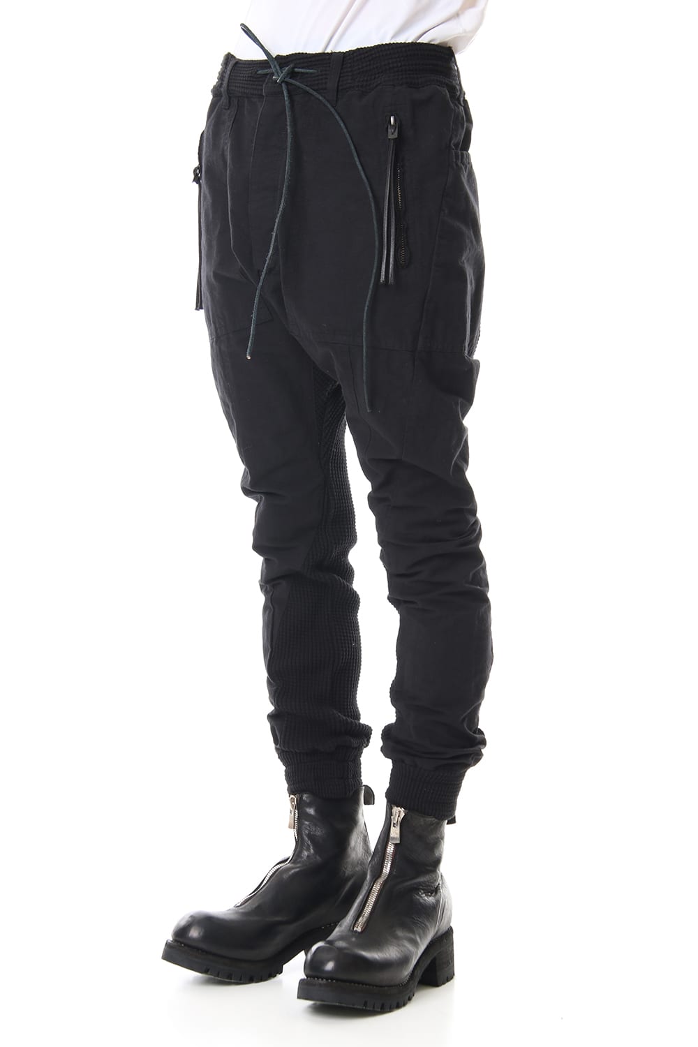 Heavy Waffle x Japanese Paper Mix Glo-Glon Combination Cold Dye Drop Crochee Jog Pants Black