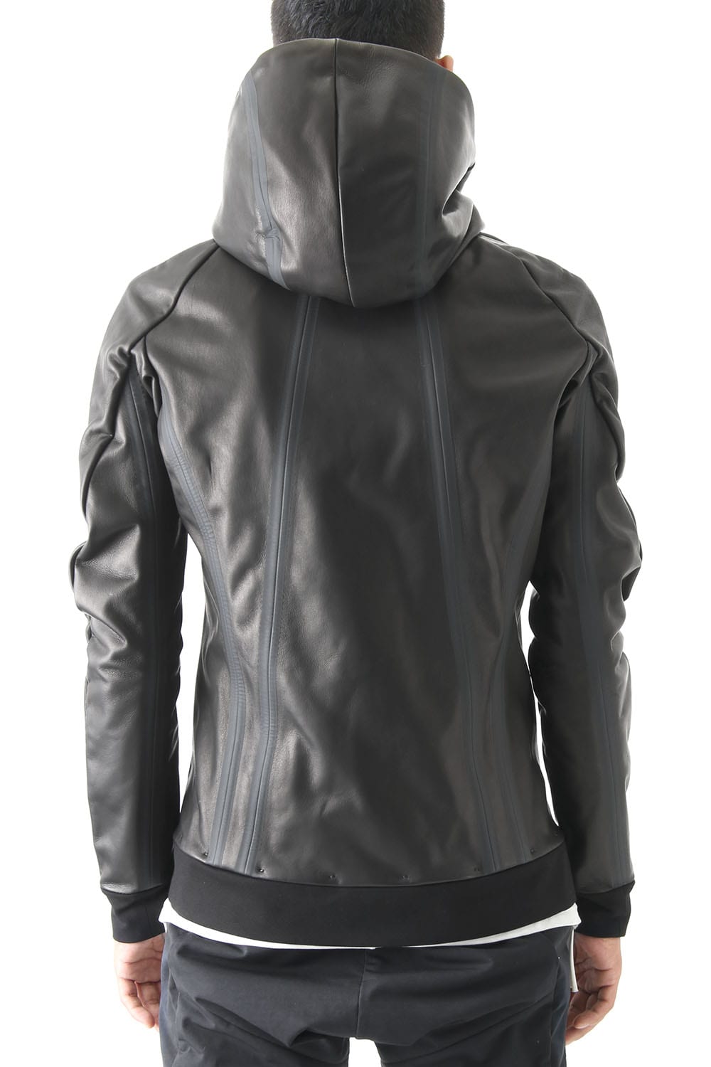 First leather hooded jacket in a while. The deer skin had a polyester stretch sheet bonded to its reverse side, making a great stretch leather jacket. To use the material stretch well, the size was made a bit smaller than usual.
