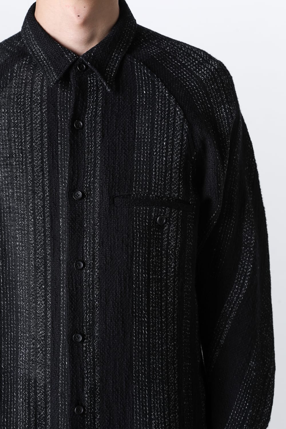 采用略带颗粒感的棉麻混纺纱线制成,表面看起来有 粗花呢 风格的触感。有一种粗糙的编织方式,就像手工编织的面料,因此透气性很好。
