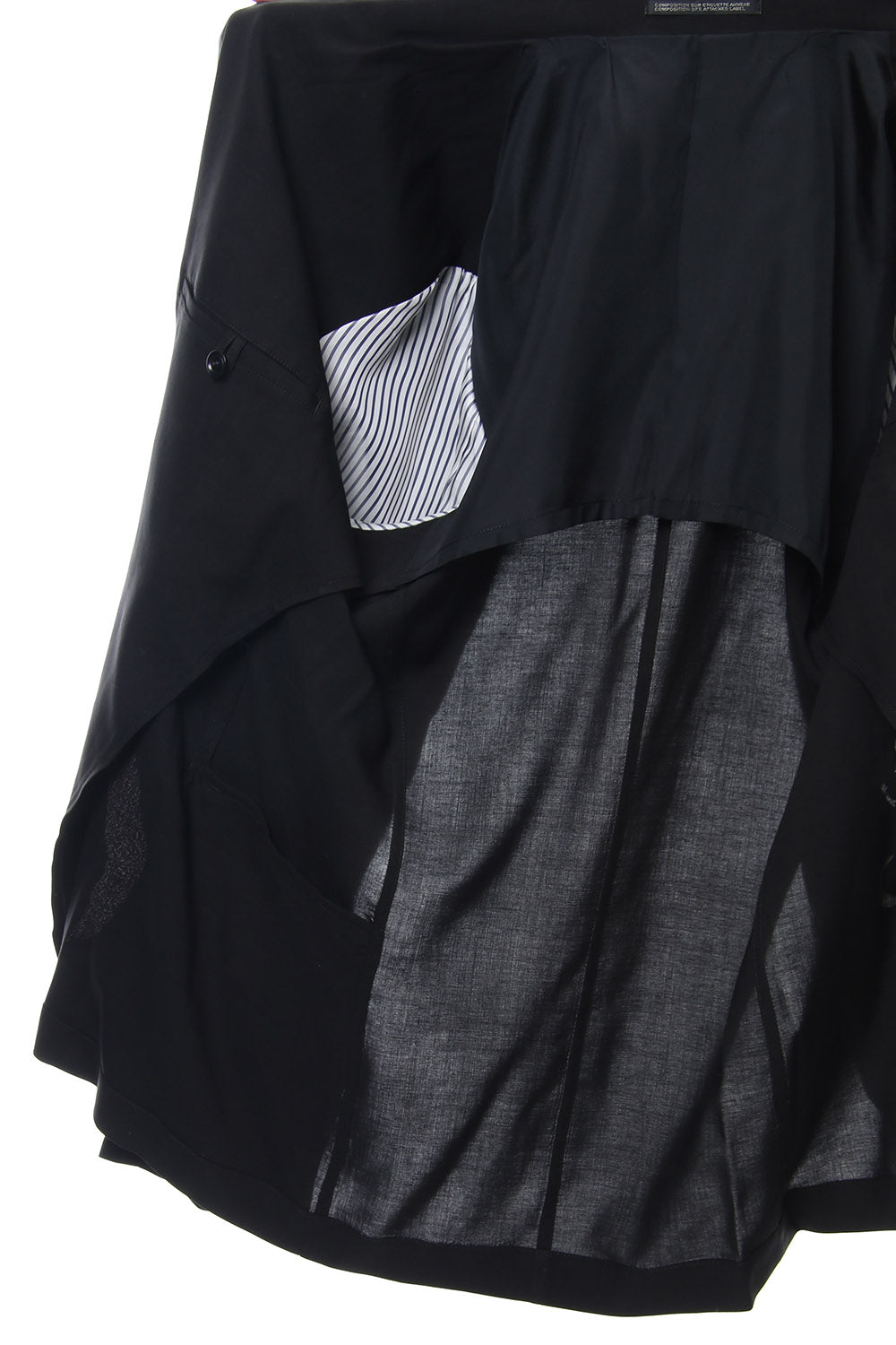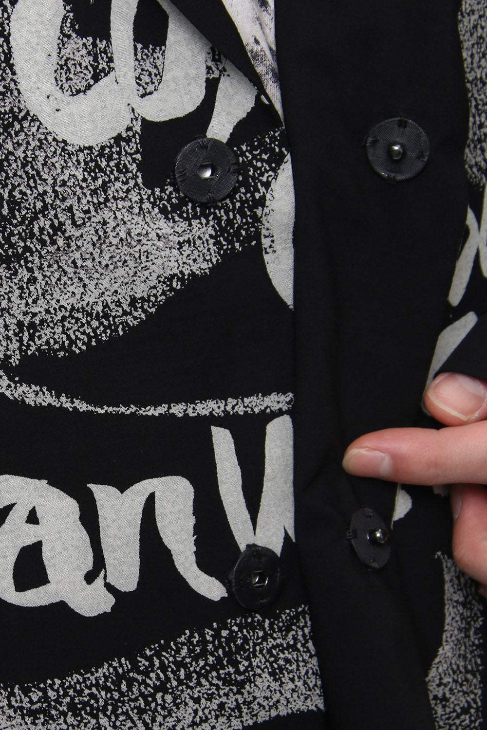 This rayon gabardine jacket has a bold discharge print on the front which was worn during the runway LOOK 8. It is of a light fabric feeling suitable for spring and summer although the texture is similar to wool gabardine which is a representative fabric of Yohji Yamamoto. The front button part has a snap button specification.