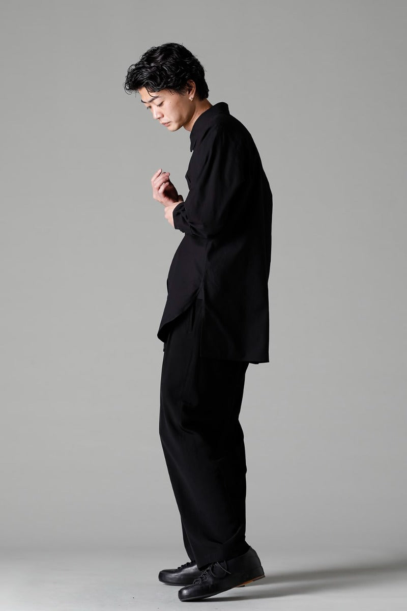 这款基本款衬衫使用了手工编织的温暖的卡迪棉面料。 手纺线特有的线本身就像有内芯一样蓬松的手感是其特征。 (在面料的特性上,存在着像编织了不同颜色的线一样的线条等个体差异。) 这款简约衬衫的亮点在于胸口的口袋和前后衣身的不同下摆的裁剪,因此是一款一年四季都可以穿着的万能单品。