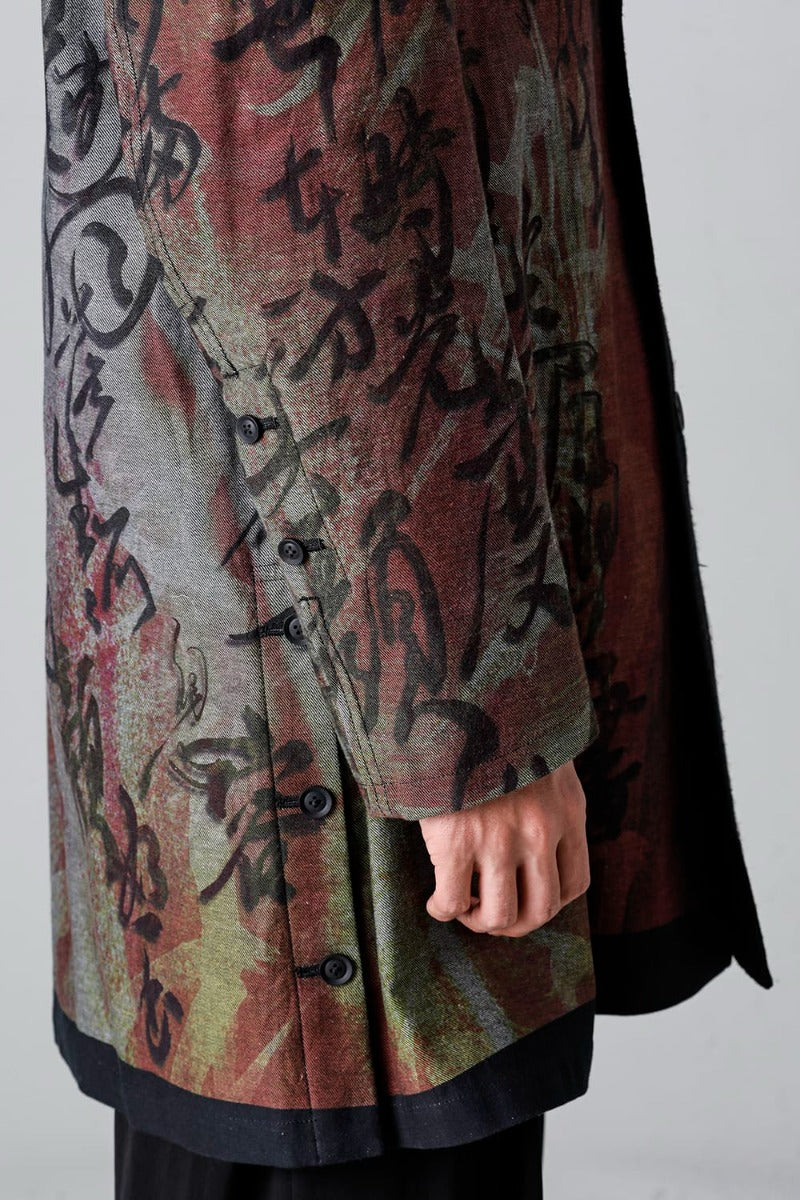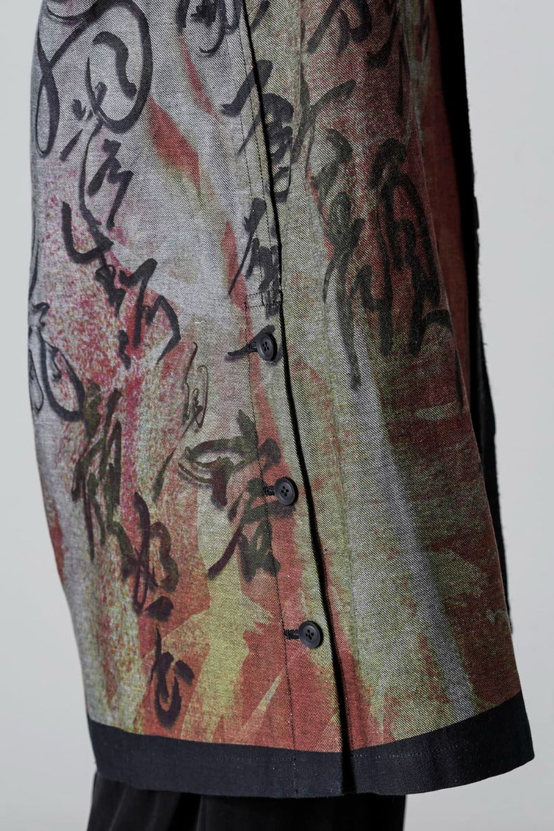 Raul在Runway LOOK 34中穿着的不对称面料的中袖短外套。 右前和后身采用了印花牛仔面料,左前衣身采用了带有棉结的中等厚度的亚麻面料。 两侧设计有可以开合纽扣的通风口,可以搭配穿着的打底衫或裤子。 衬里采用了具有春夏气息的背部无衬里设计,包括袖子在内的衬里采用了条纹衬里,袖口翻折设计是这款商品的亮点。