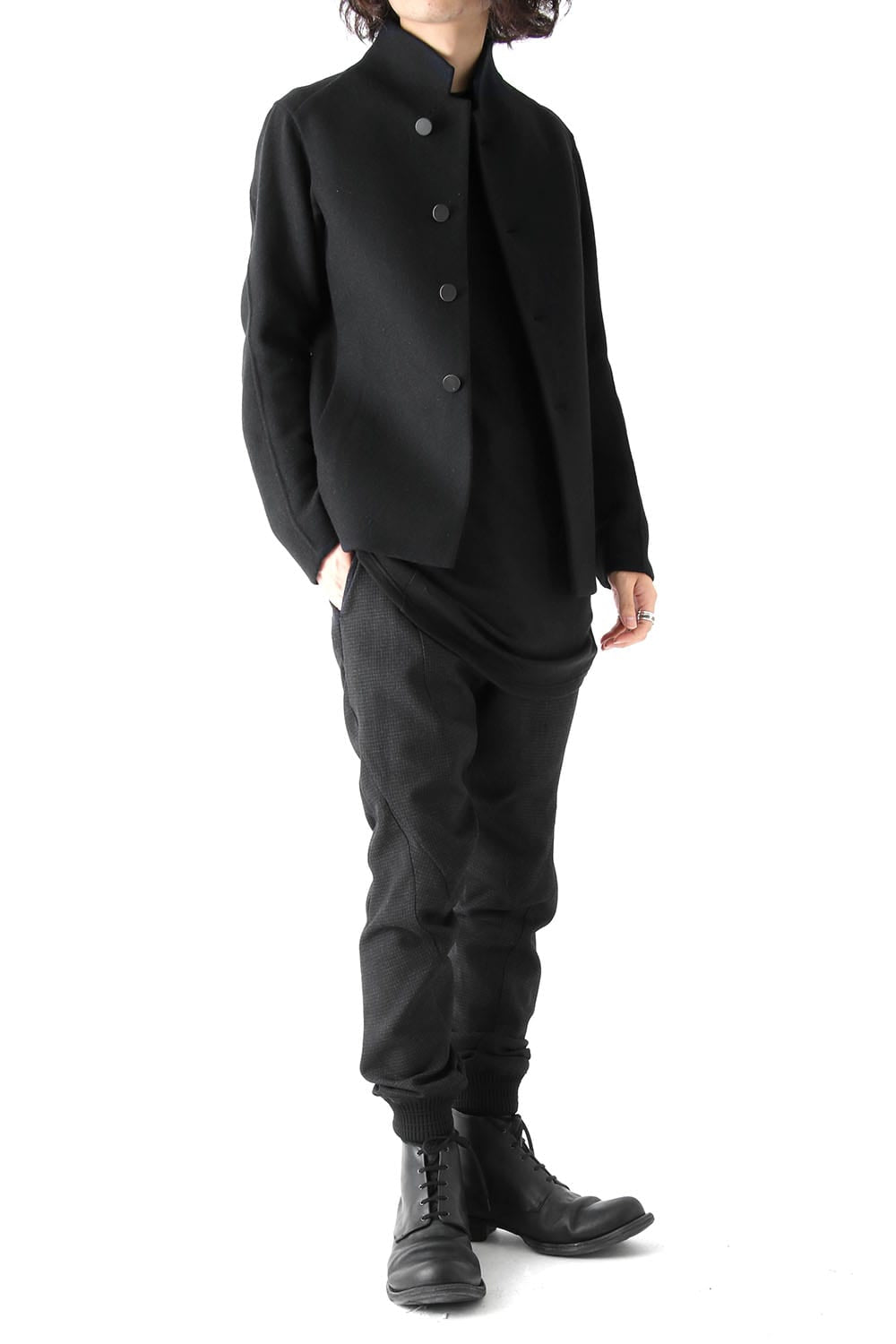Jacket made with the Uruguay Hybrid Wool fabric developed recently, and using the river sewing. The fiber is almost as thin as cashmere, and has a very nice touch so we did not even recognize the difference with a cashmere fabric. It shows a very luxurious impression. The sewing is made to express the fabric characteristics the best possible, and each piece has hand stitches. It feels very light, and has a nice warmth.