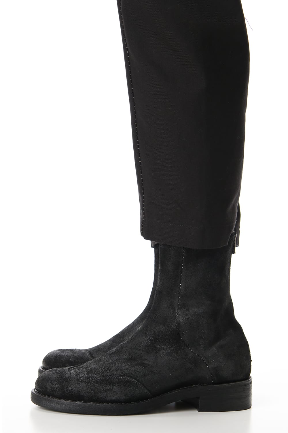 This is a pair of wide pants that has a slightly adjusted silhouette with a cropped length and a lowered pant rise from the standard jodhpurs. TOP thread is used for the material. This is a fabric that tightens up the expression and has a supple and high quality feel.