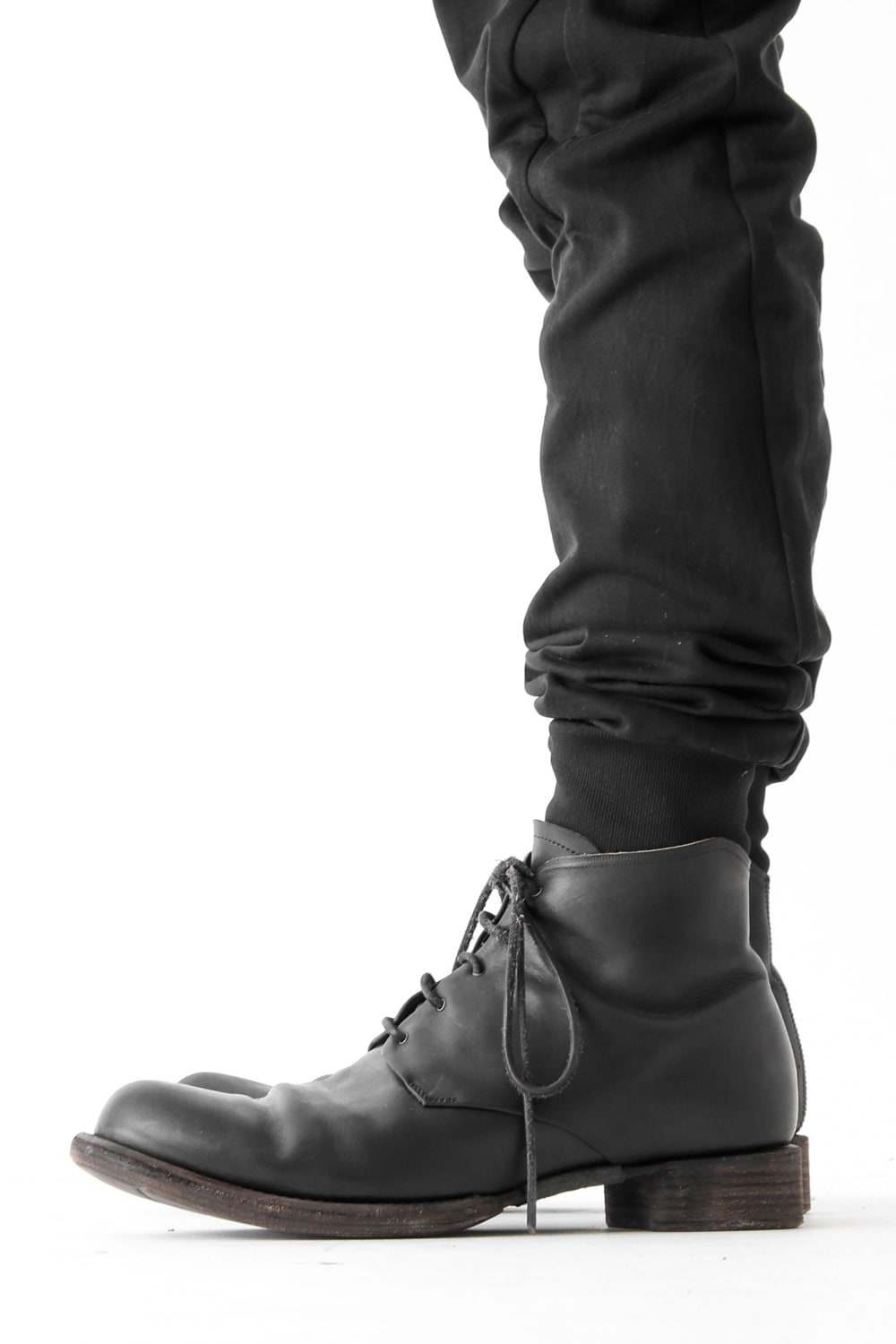 Made with high gauge, nice volume loop thread used for the reverse side, and a wrinkle finish applied to this Spring Summer jersey fabric. The silhouette is a jodhpurs silhouette and the hem has ribs.