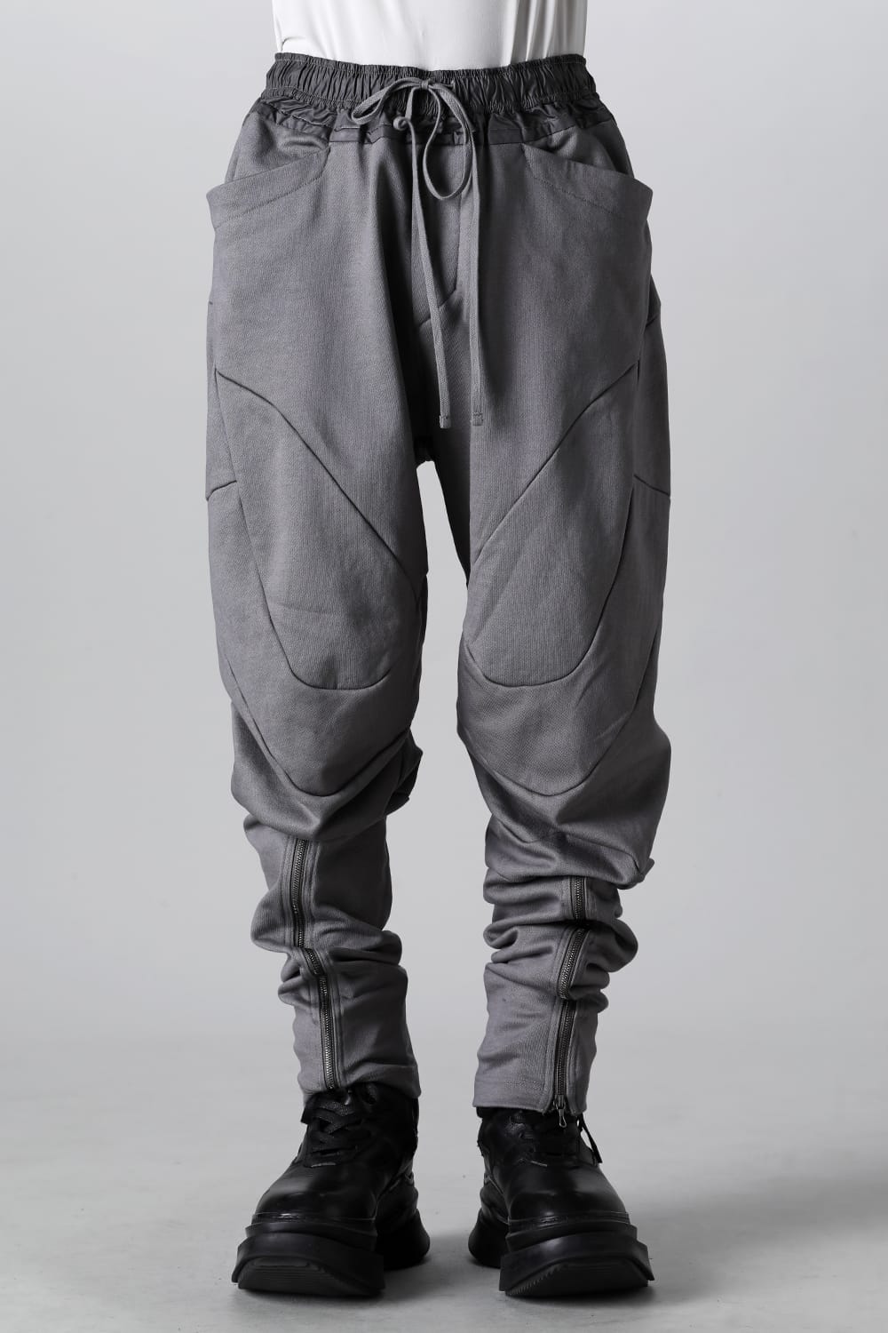 商品名 : コーティングスウェット フロントジップ シームド パンツ グレー