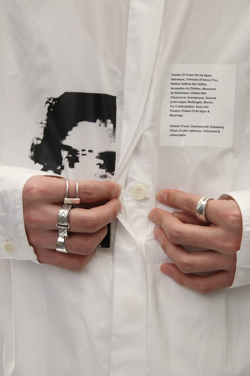 Stand collar shirts with drop shoulders and oversized silhouette. The side is equipped with a little big swing pocket, the front part is accented with the original graphic print taken by the photographer “Salvatore".