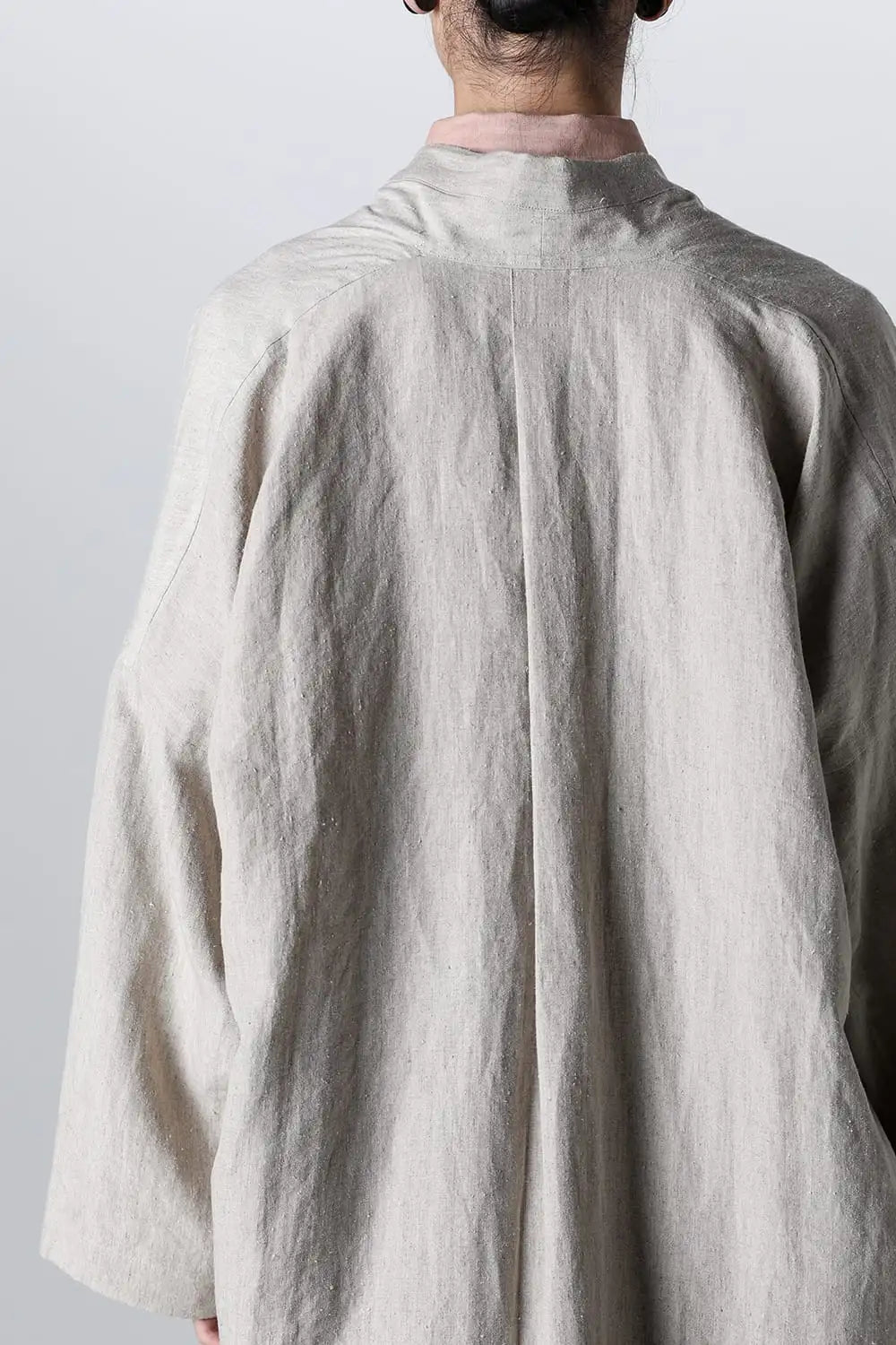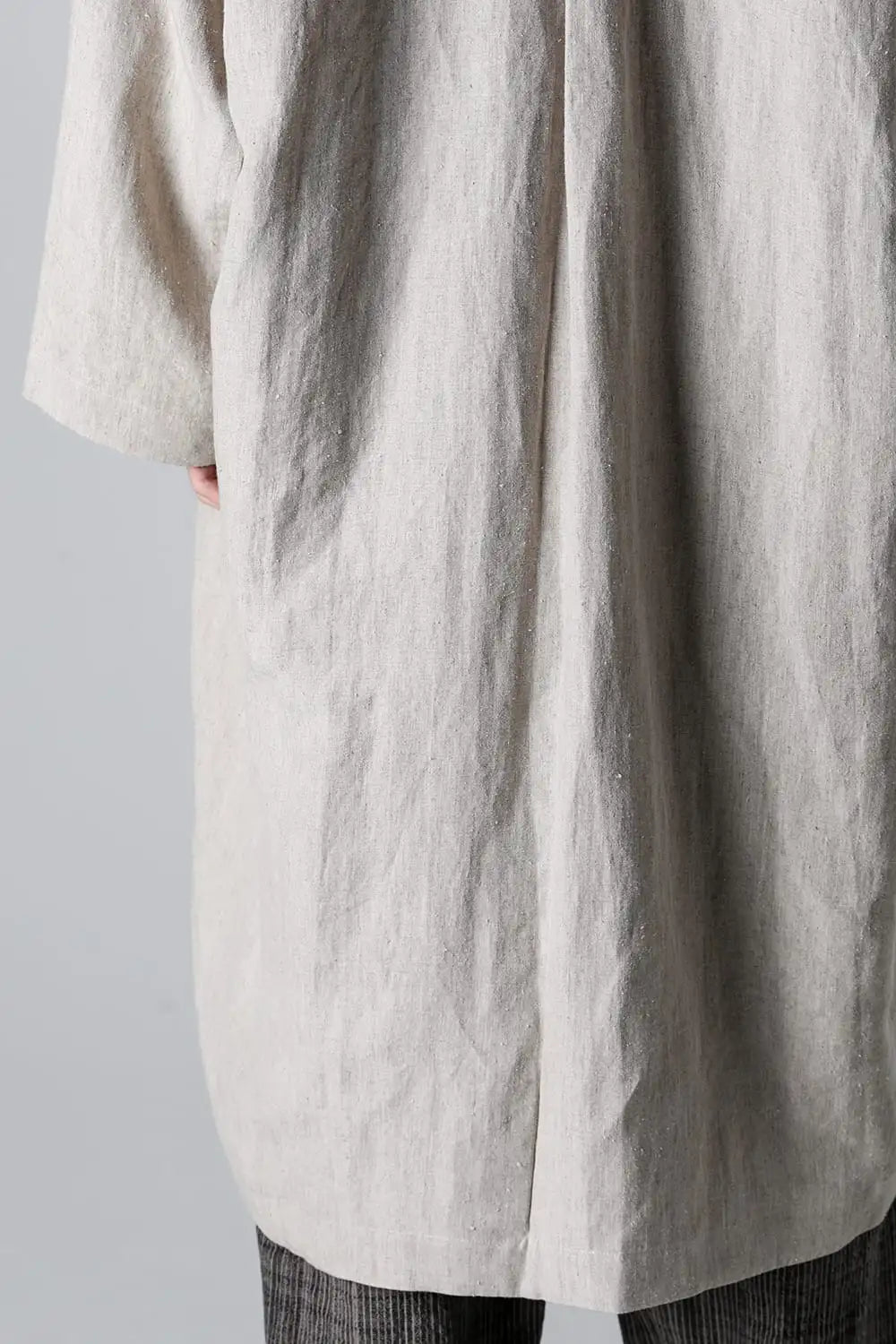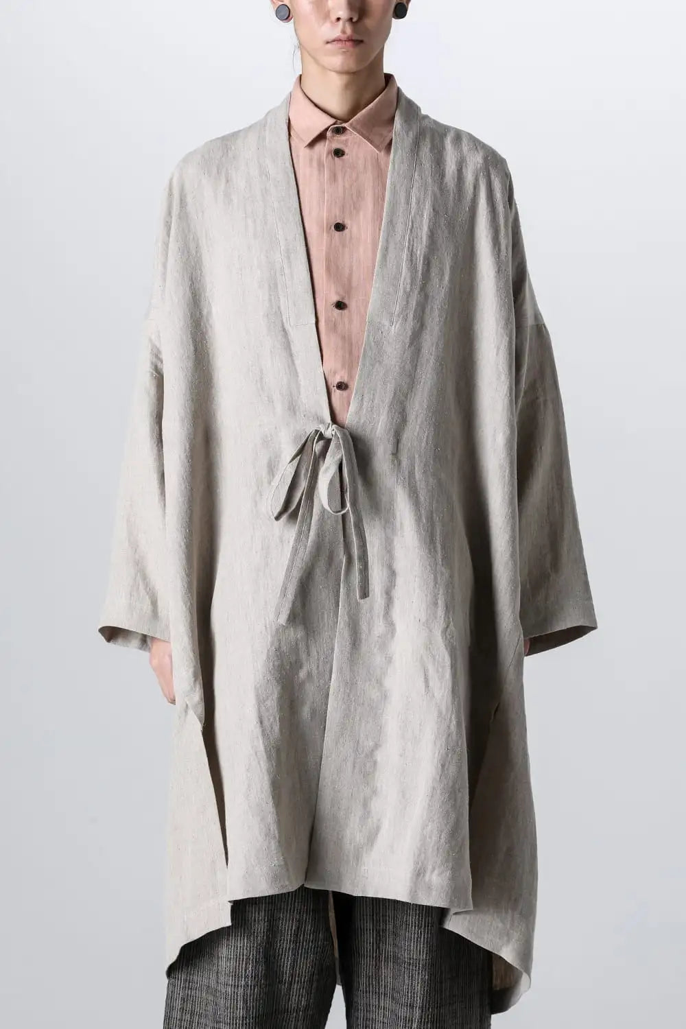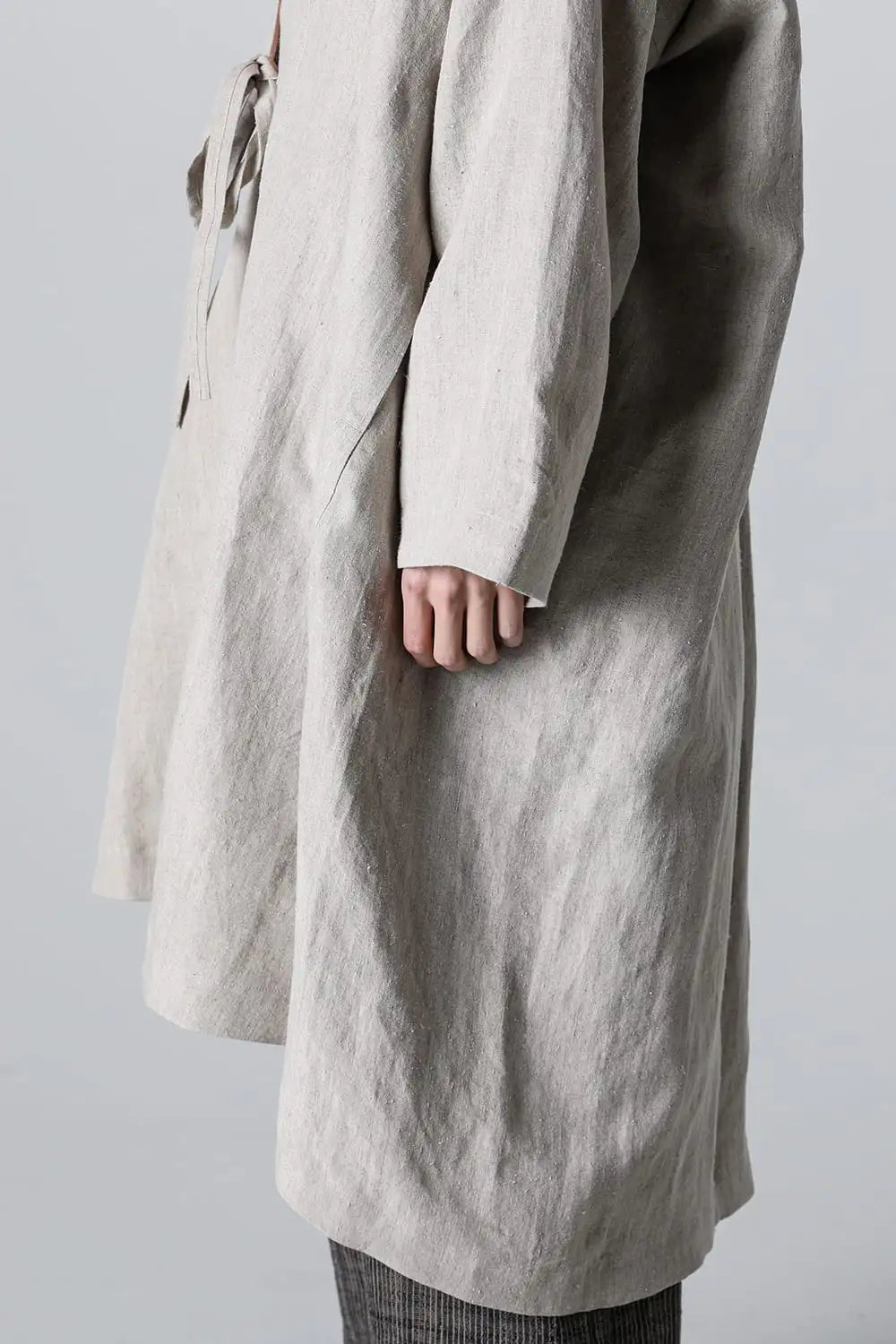 The fabric has a supple drape, utilizing the natural, uneven texture of the material, made from a light and soft hemp.