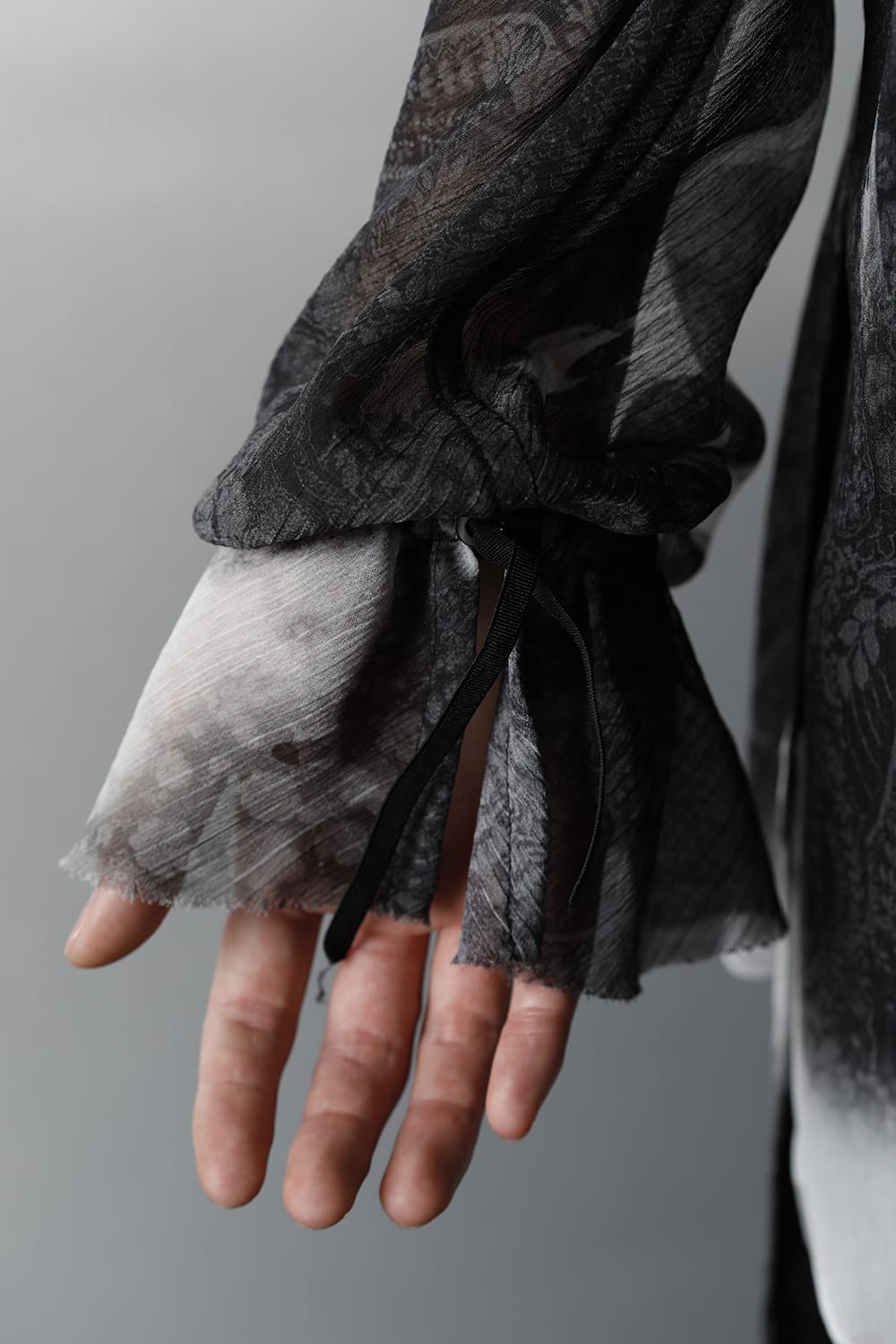 生地が軽く、動くたびに美しいドレープが生まれるブランドらしい作品です。