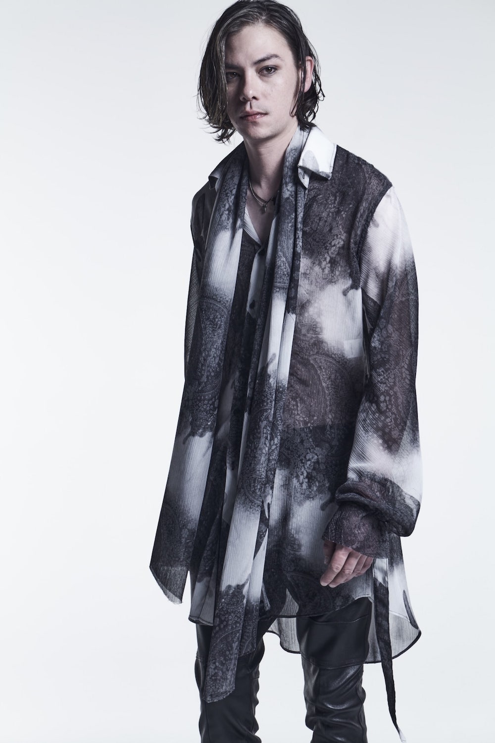単体での着用はもちろん、ジャケットやコートのインんあーに差し込んでも存在感を損なわない大胆なデザイン。