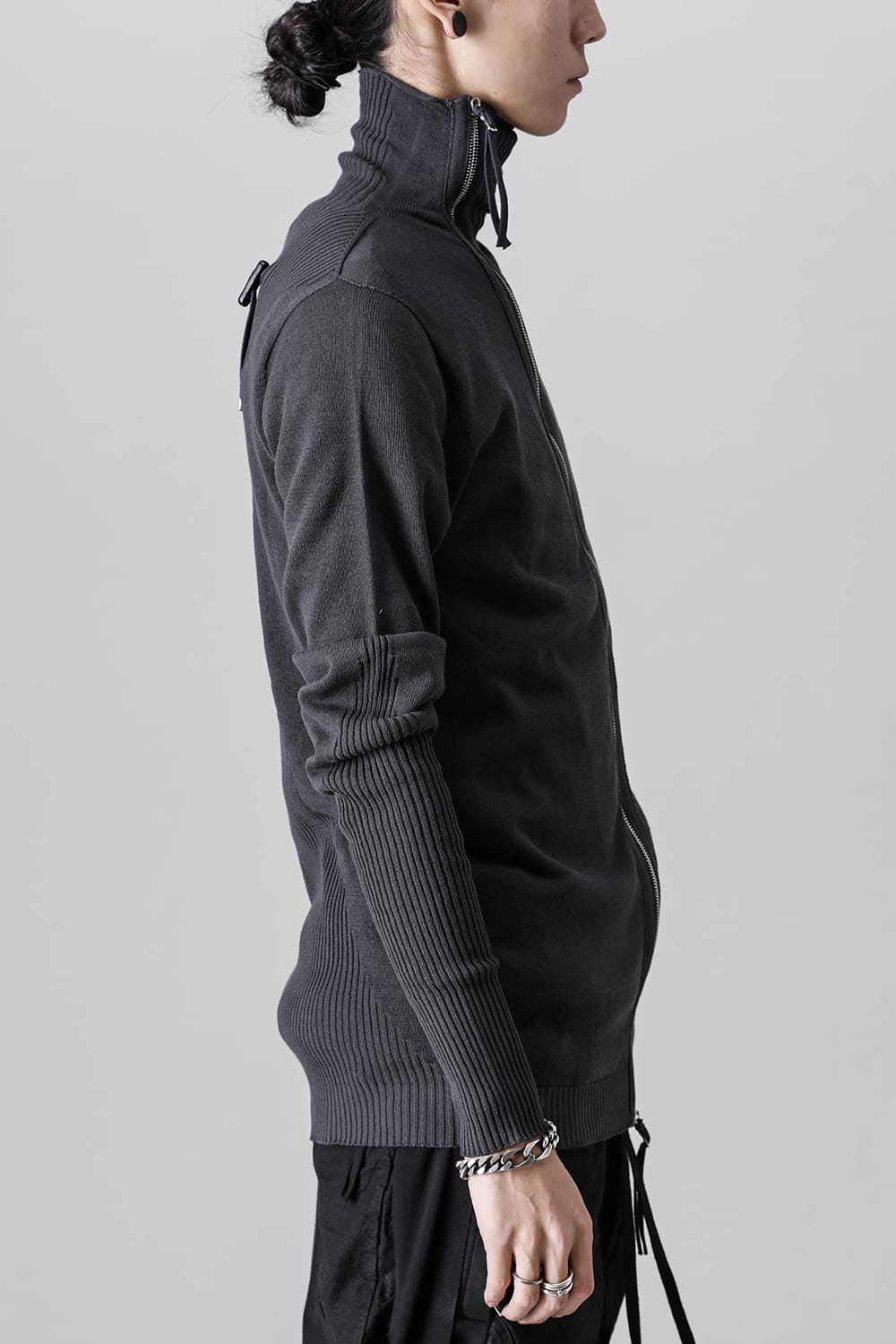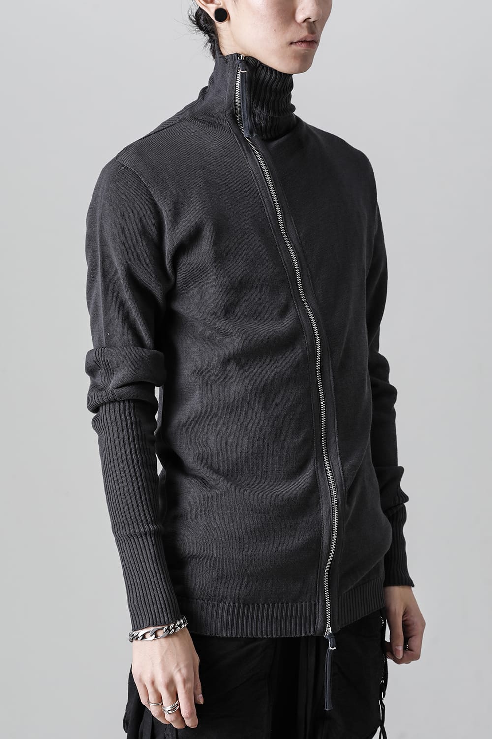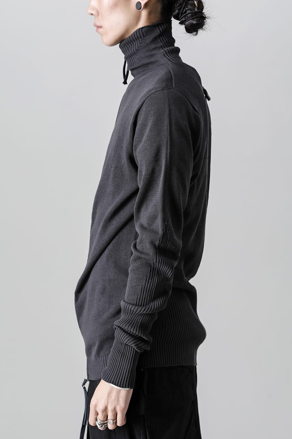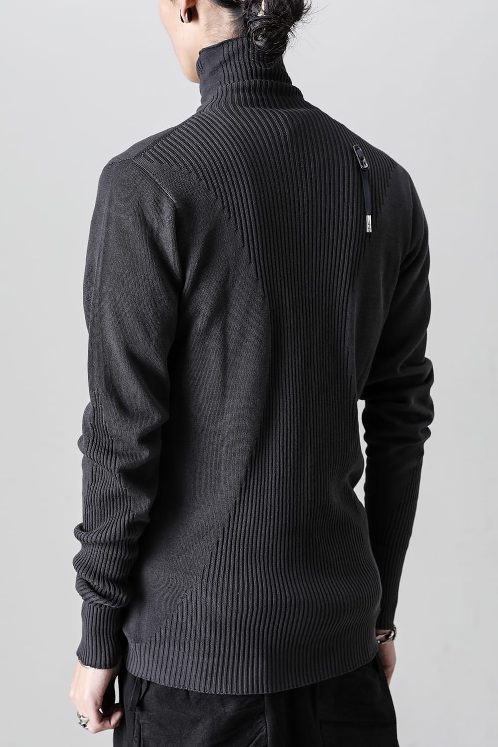 采用袖子、领口和背部的变化编织的高领拉链针织衫。 虽然是修身的轮廓,但是伸缩性非常好,所以穿起来没有压力。 这款针织衫使用了100%的棉质面料,具有清爽的质感,除了夏天以外的3个季节都可以使用。