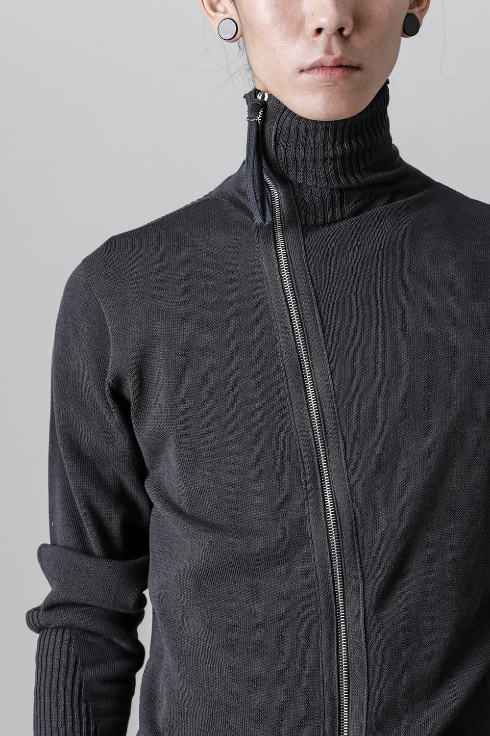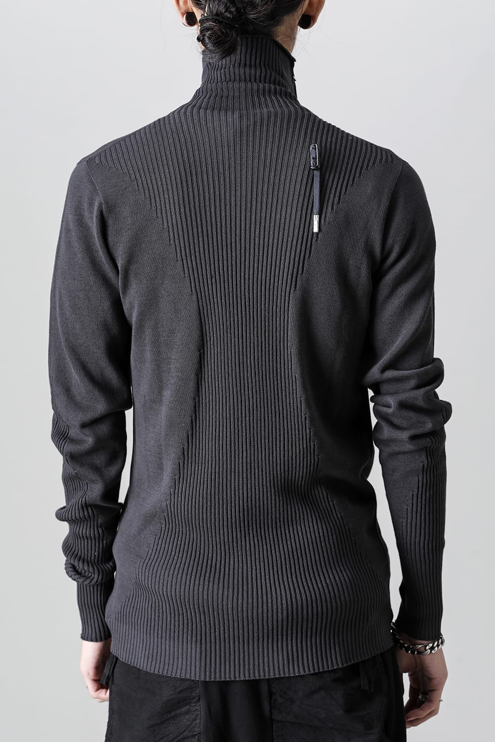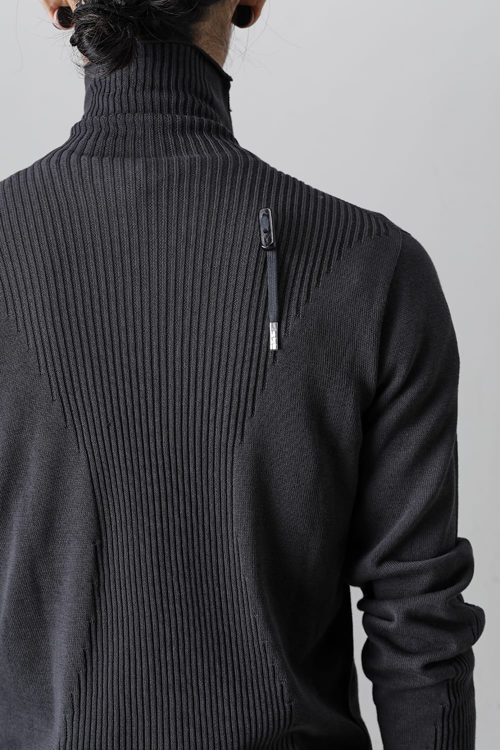 采用袖子、领口和背部的变化编织的高领拉链针织衫。 虽然是修身的轮廓,但是伸缩性非常好,所以穿起来没有压力。 这款针织衫使用了100%的棉质面料,具有清爽的质感,除了夏天以外的3个季节都可以使用。