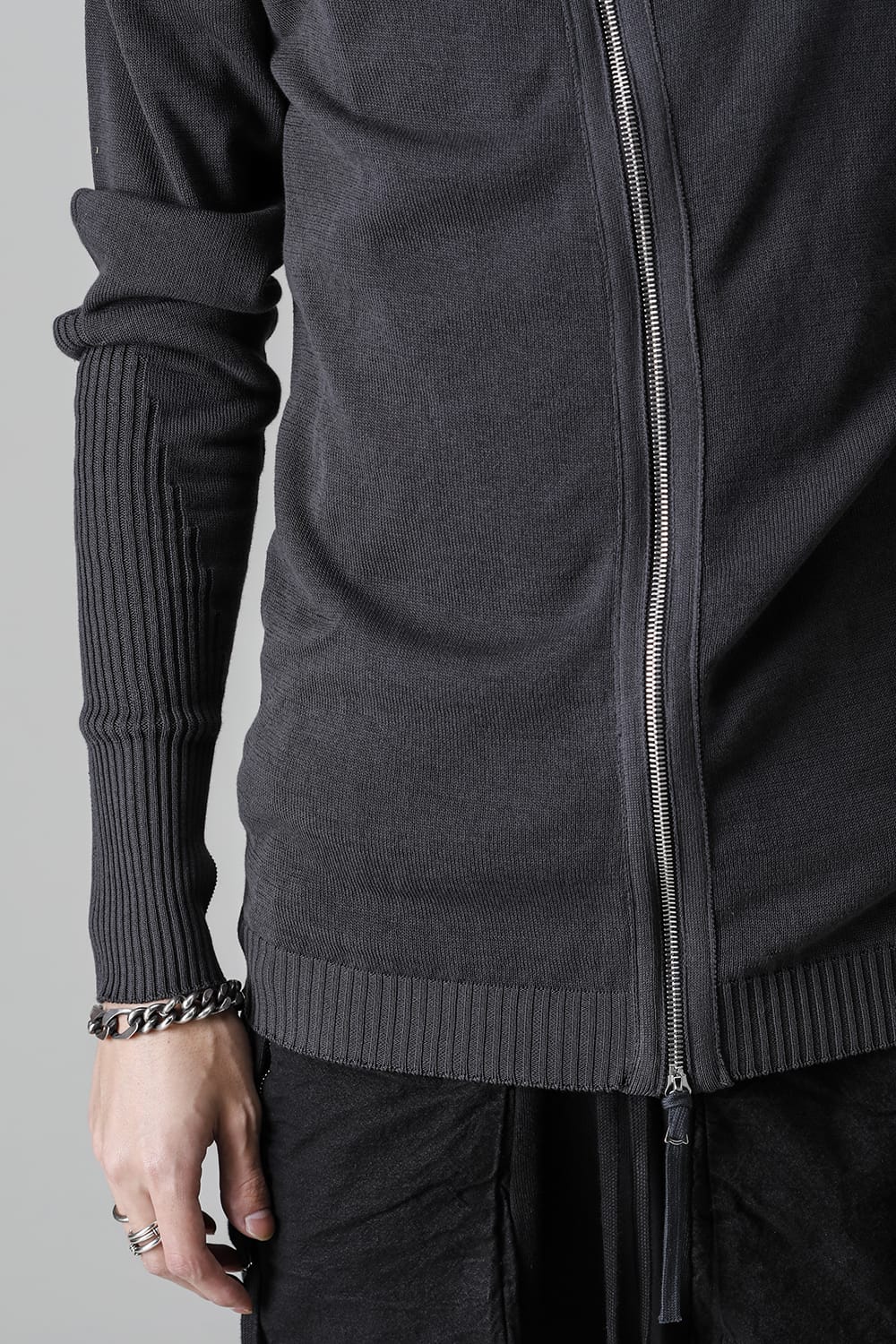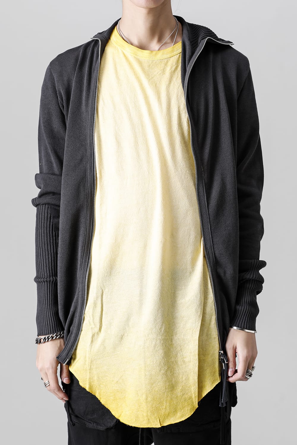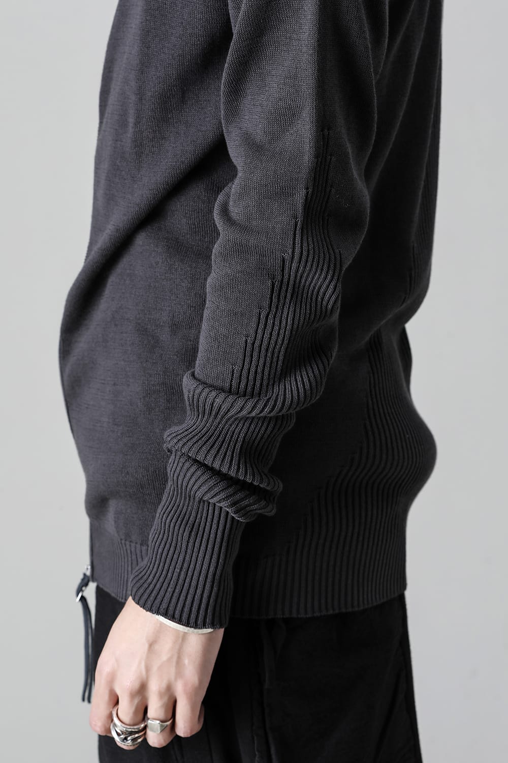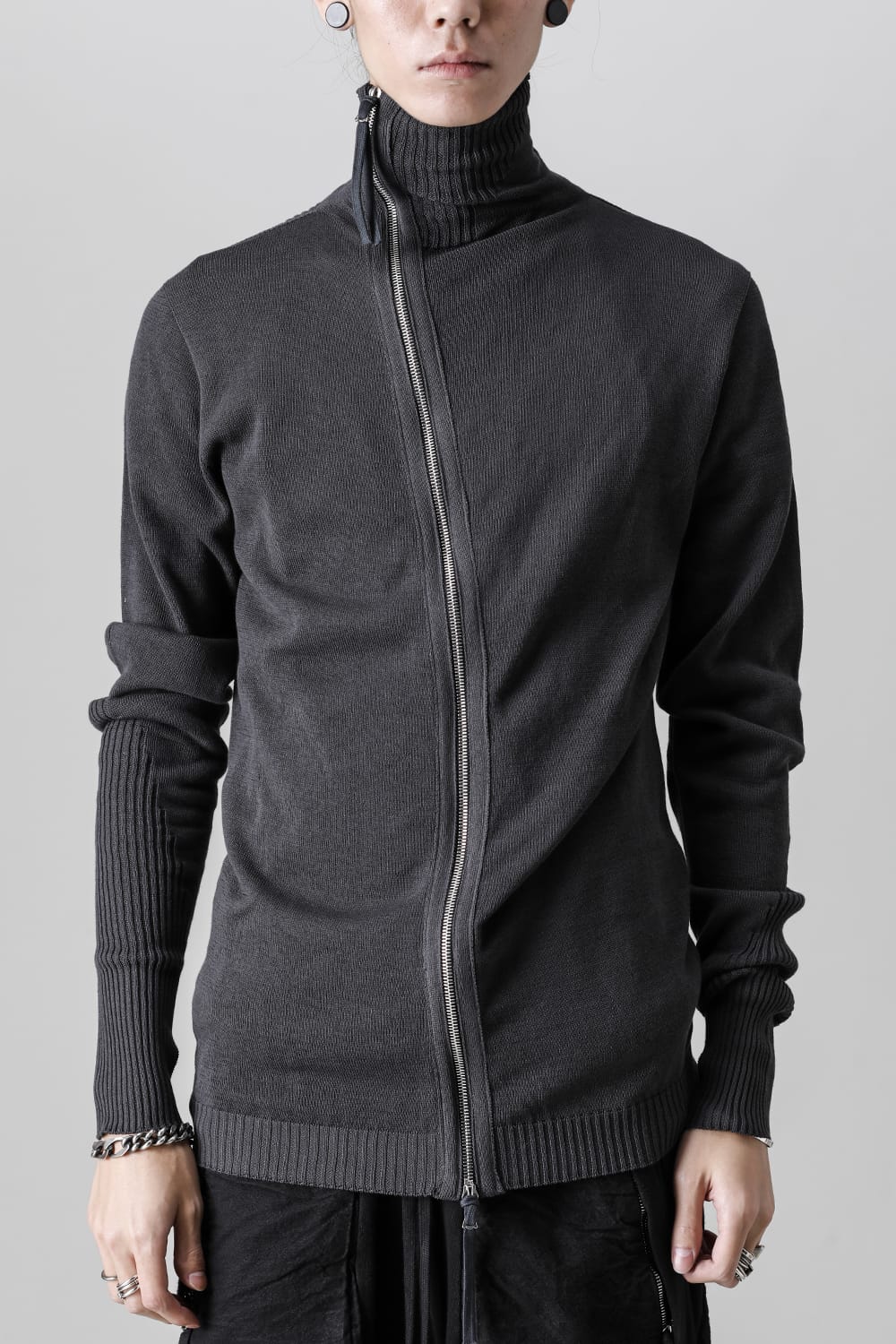 采用袖子、领口和背部的变化编织的高领拉链针织衫。 虽然是修身的轮廓,但是伸缩性非常好,所以穿起来没有压力。 这款针织衫使用了100%的棉质面料,具有清爽的质感,除了夏天以外的3个季节都可以使用。