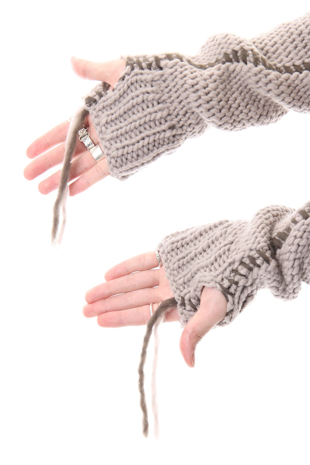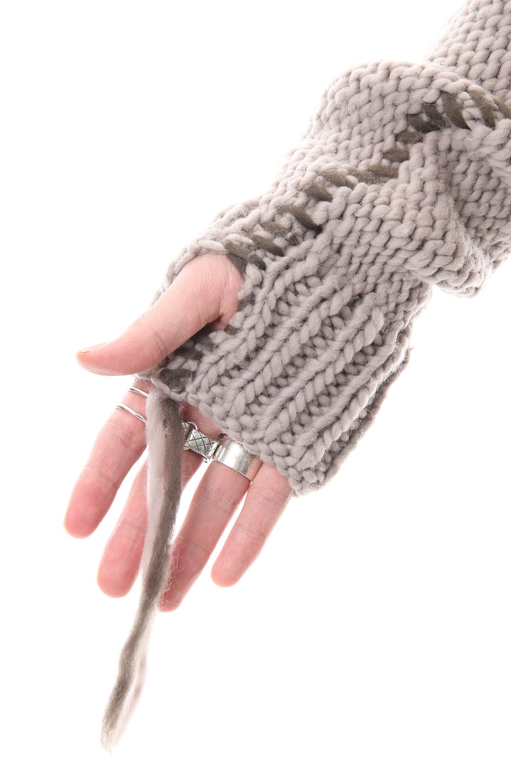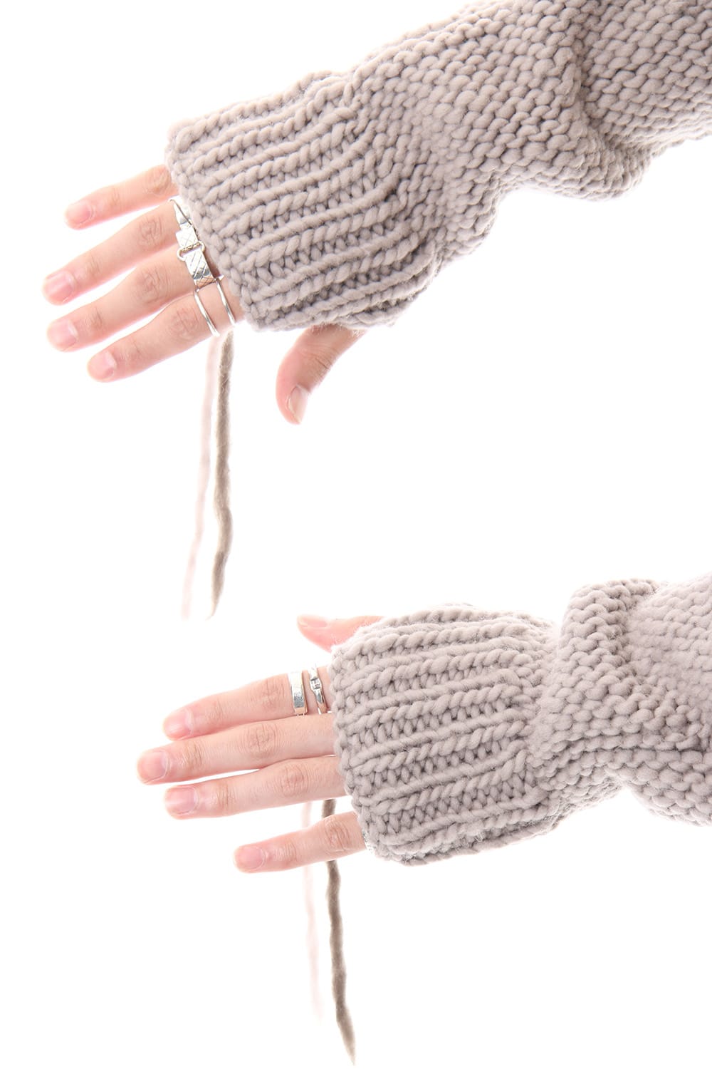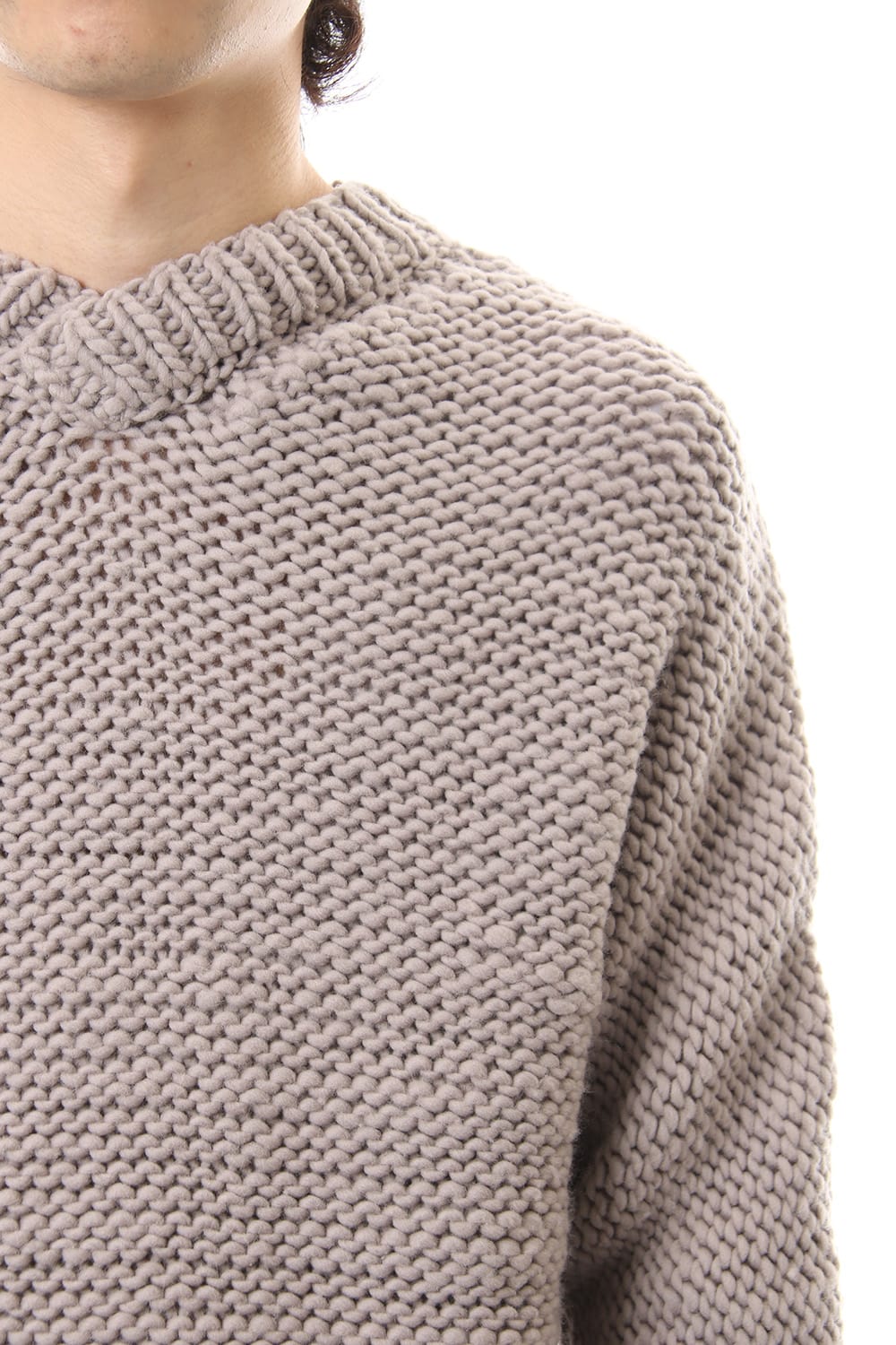 This hand knit series was impressive in this season's runway collection. This knit is a simple V-neck type that is easier to wear in a real style than the one used for the runway. The body and sleeves are knitted with the same parts to create a beautiful silhouette that blends well with the body. Wool of a different colour is woven on both sides and it also creates an accent. It's a thick knit but very light when worn.
