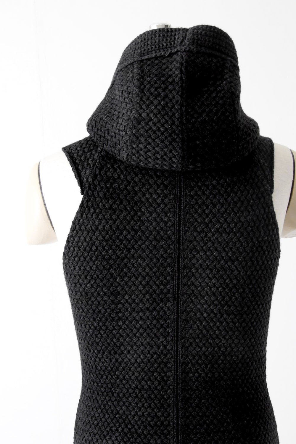 This cardigan was constructed with knitting machine and hand knitting. It can be worn alone or layered with other items.