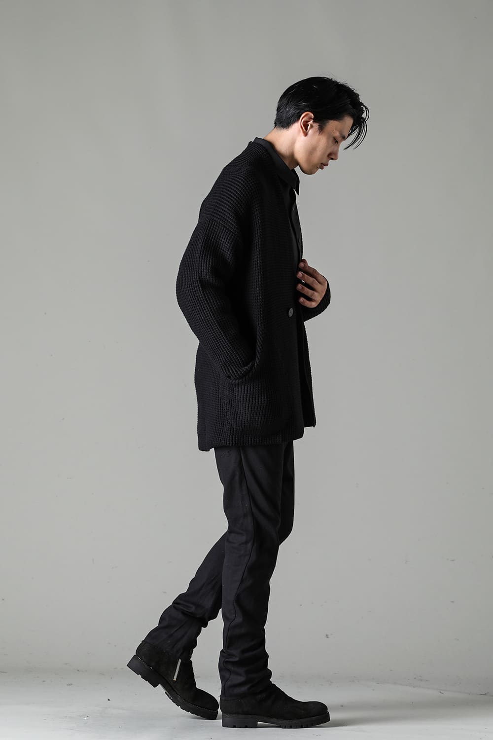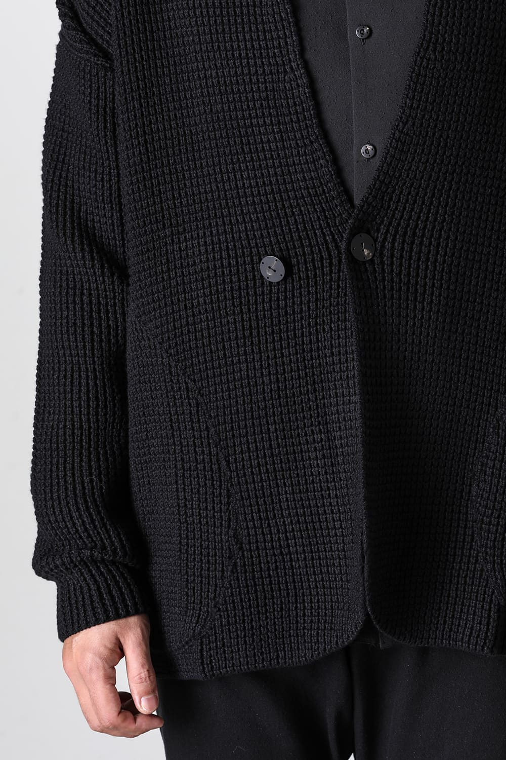 This cardigan is made as simple as possible with a single button and large patch pockets.