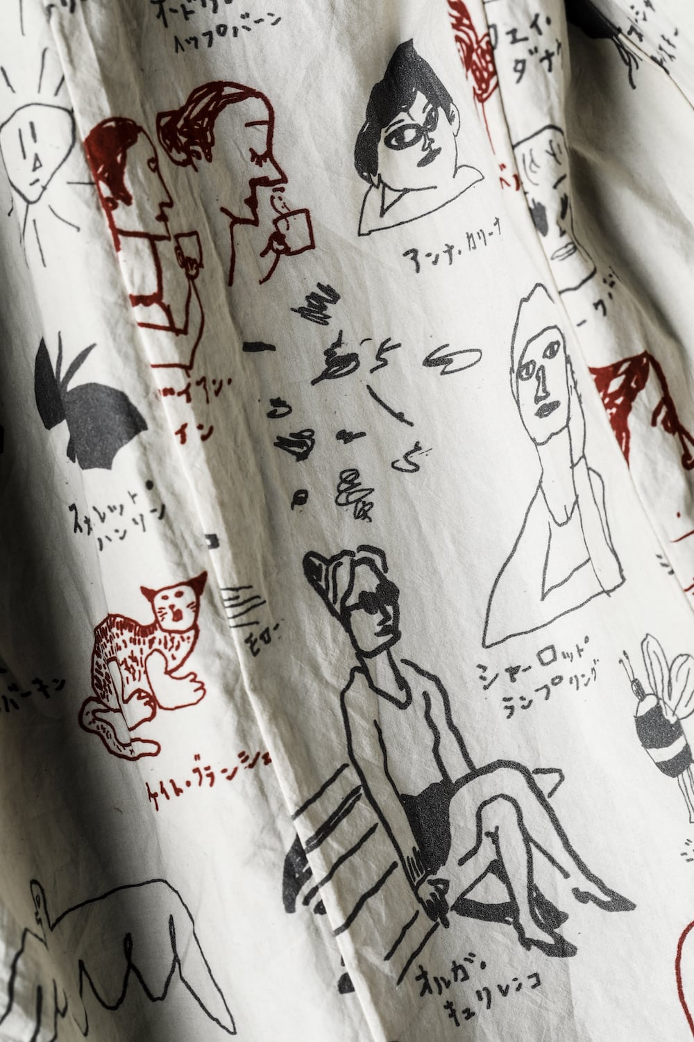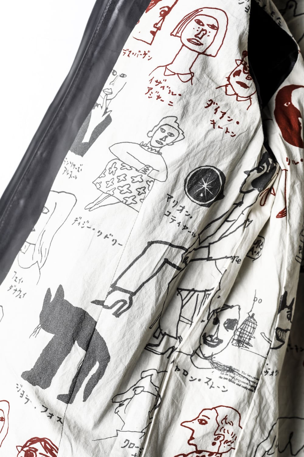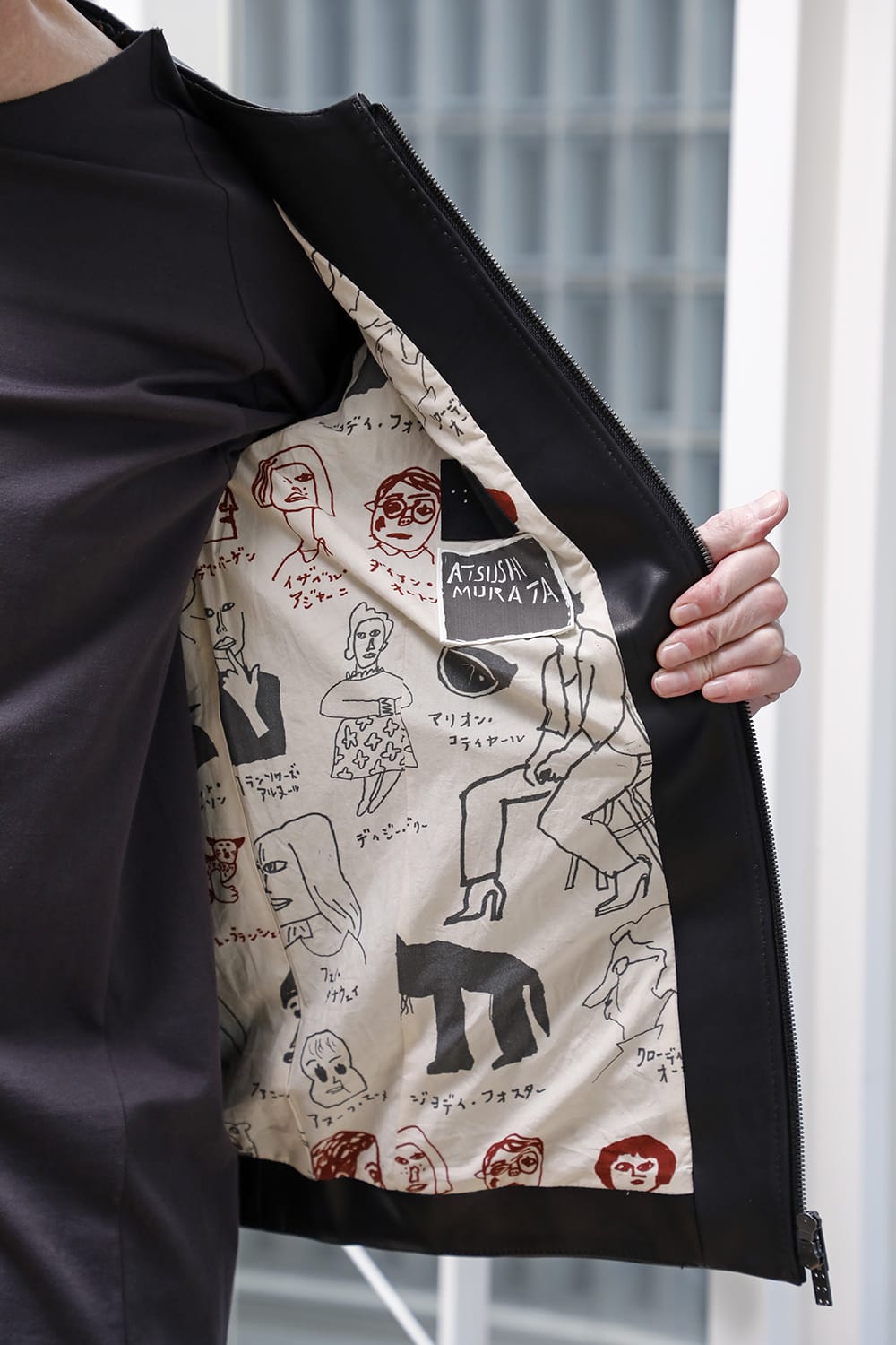 The lining of the body is cotton printed with illustrations by illustrator Atsushi Murata, and the sleeves are lined with silk.