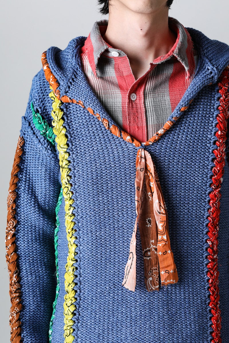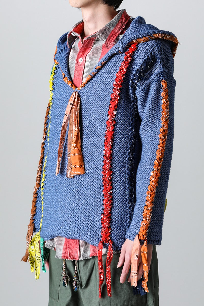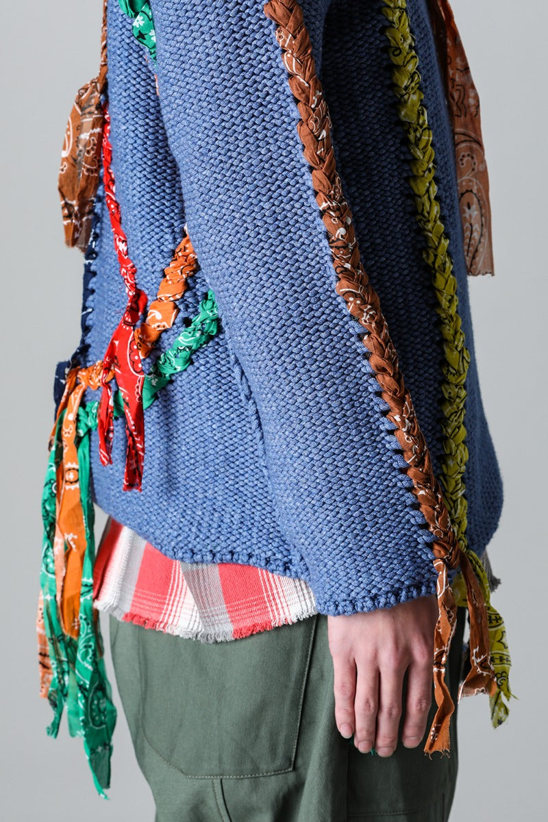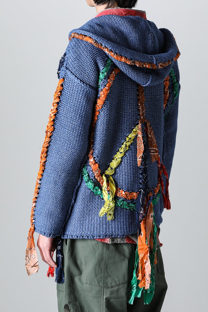 The knitted design uses bandanas throughout, and a peace mark is placed on the back.