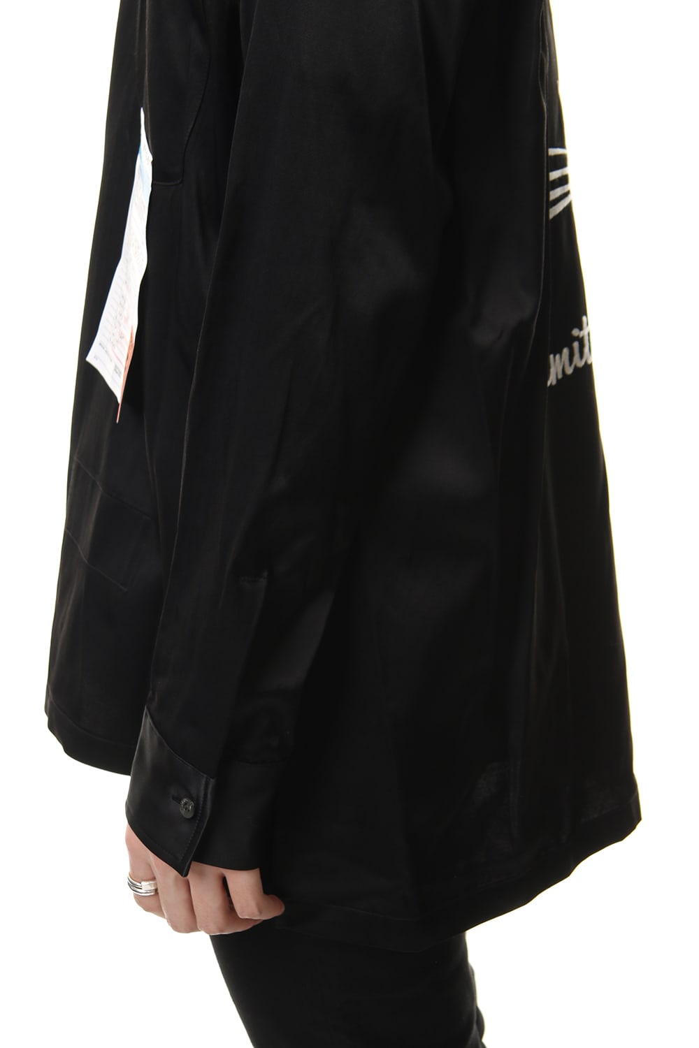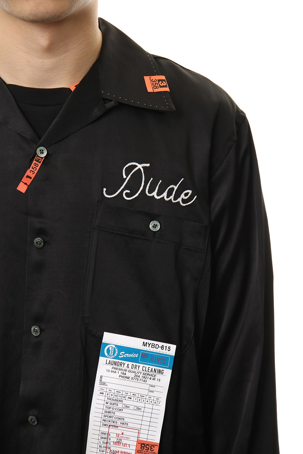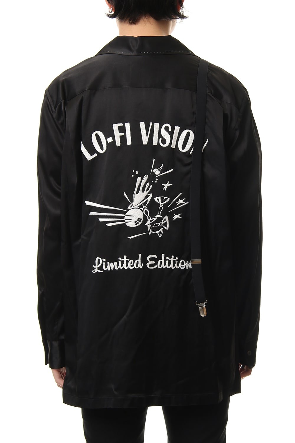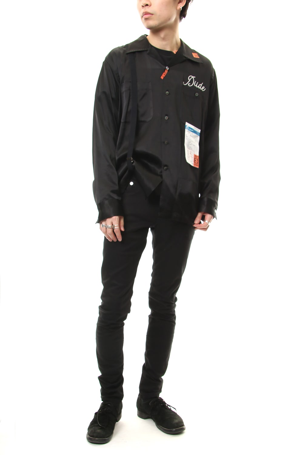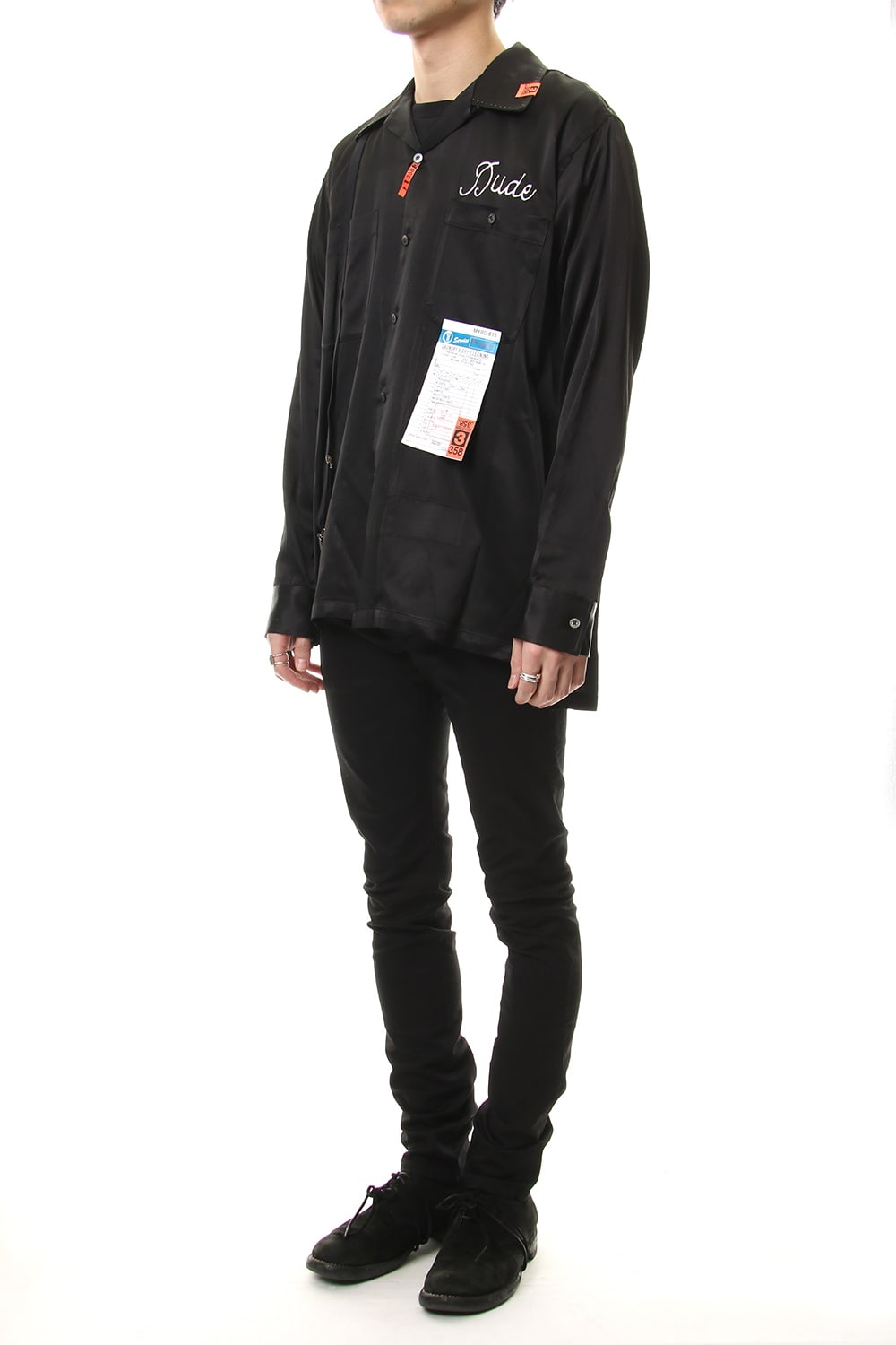 Shirt using soft rayon and cotton fabric Embroidery design on the back and left chest The design with suspenders are placed on the front and back of the right shoulder, it can be used as one point of styling Slightly relaxed oversized silhouette It has a playful design with the statement 358 wash tag attached to mimic the tags from the cleaners. ※ It is possible to wash with the tags attached, if you dislike it, it is also possible to remove.