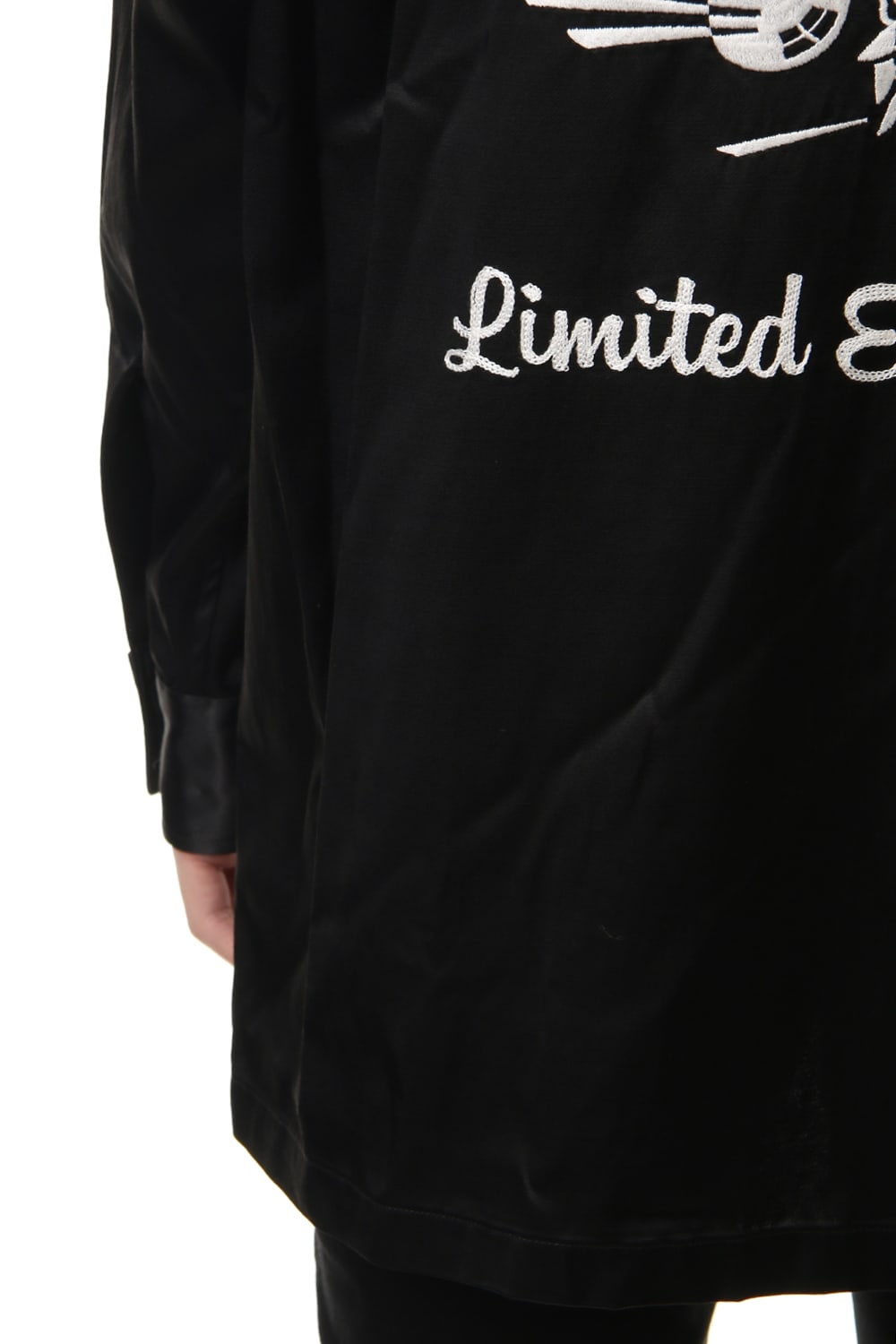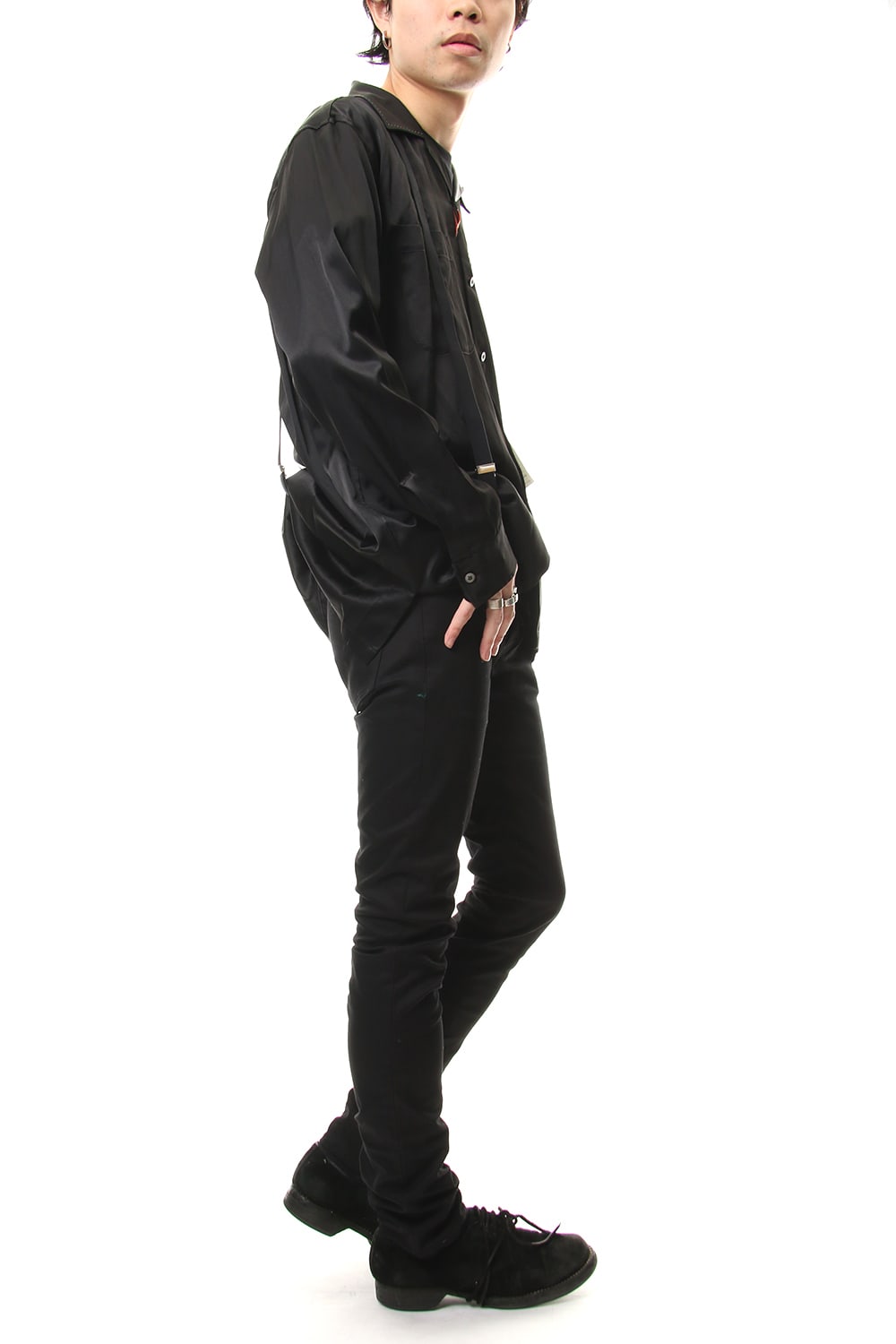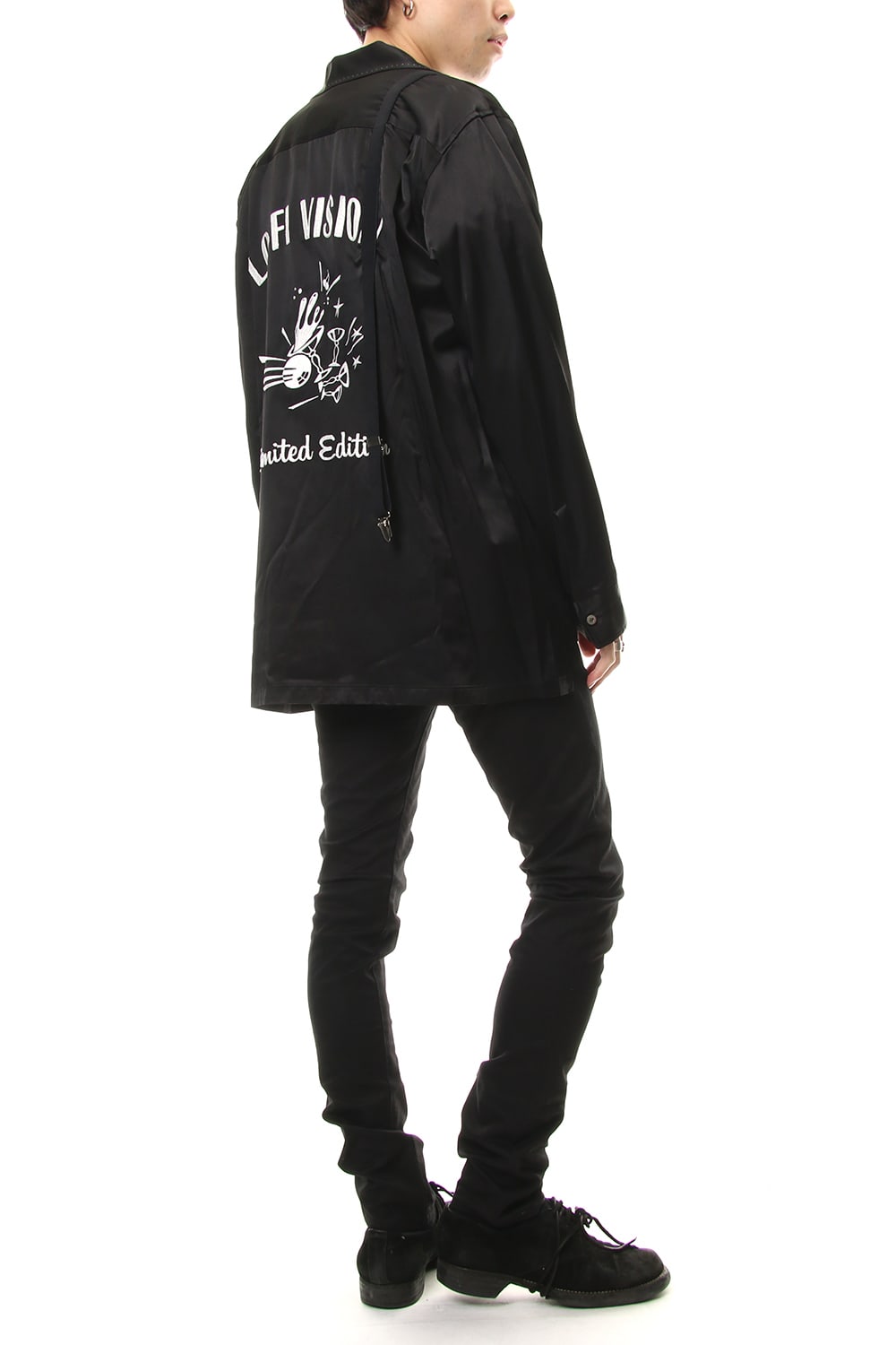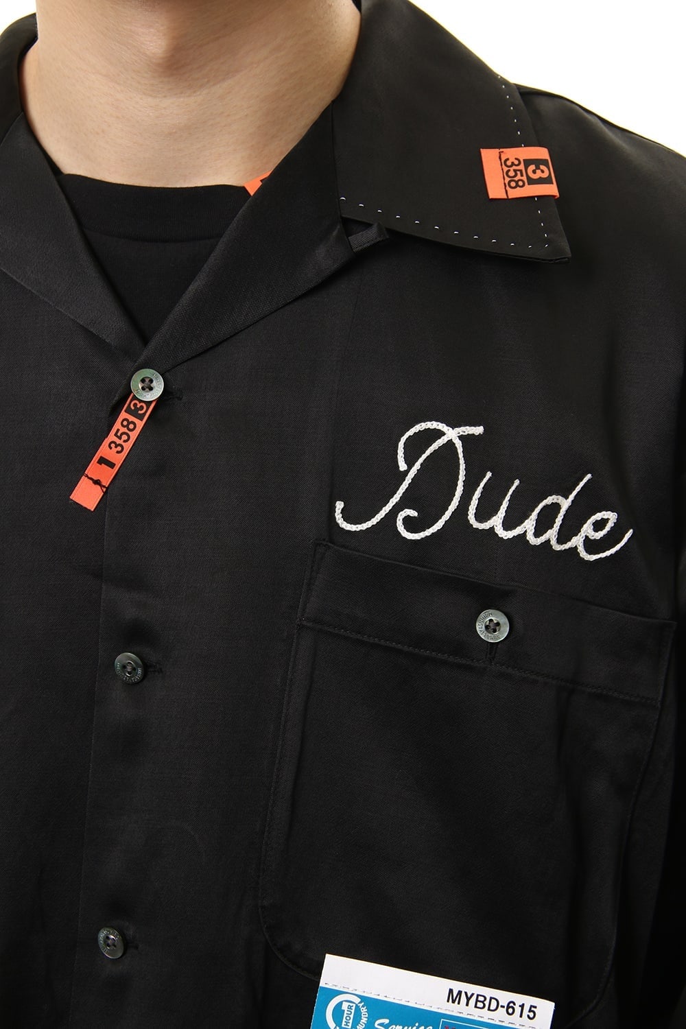 Shirt using soft rayon and cotton fabric Embroidery design on the back and left chest The design with suspenders are placed on the front and back of the right shoulder, it can be used as one point of styling Slightly relaxed oversized silhouette It has a playful design with the statement 358 wash tag attached to mimic the tags from the cleaners. ※ It is possible to wash with the tags attached, if you dislike it, it is also possible to remove.