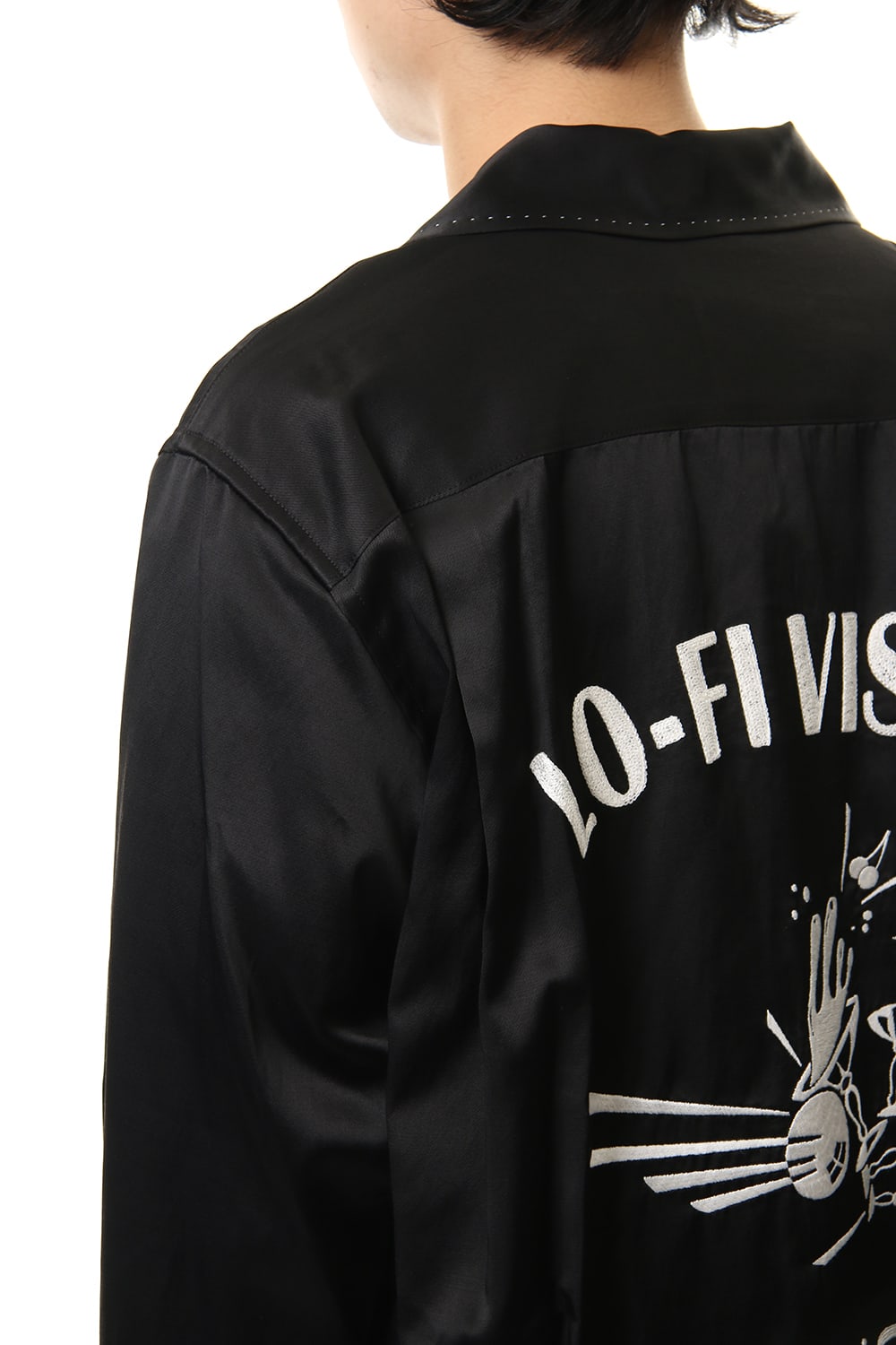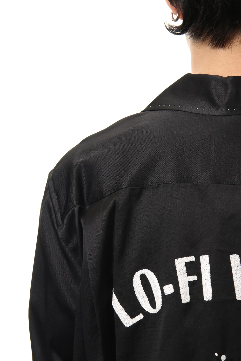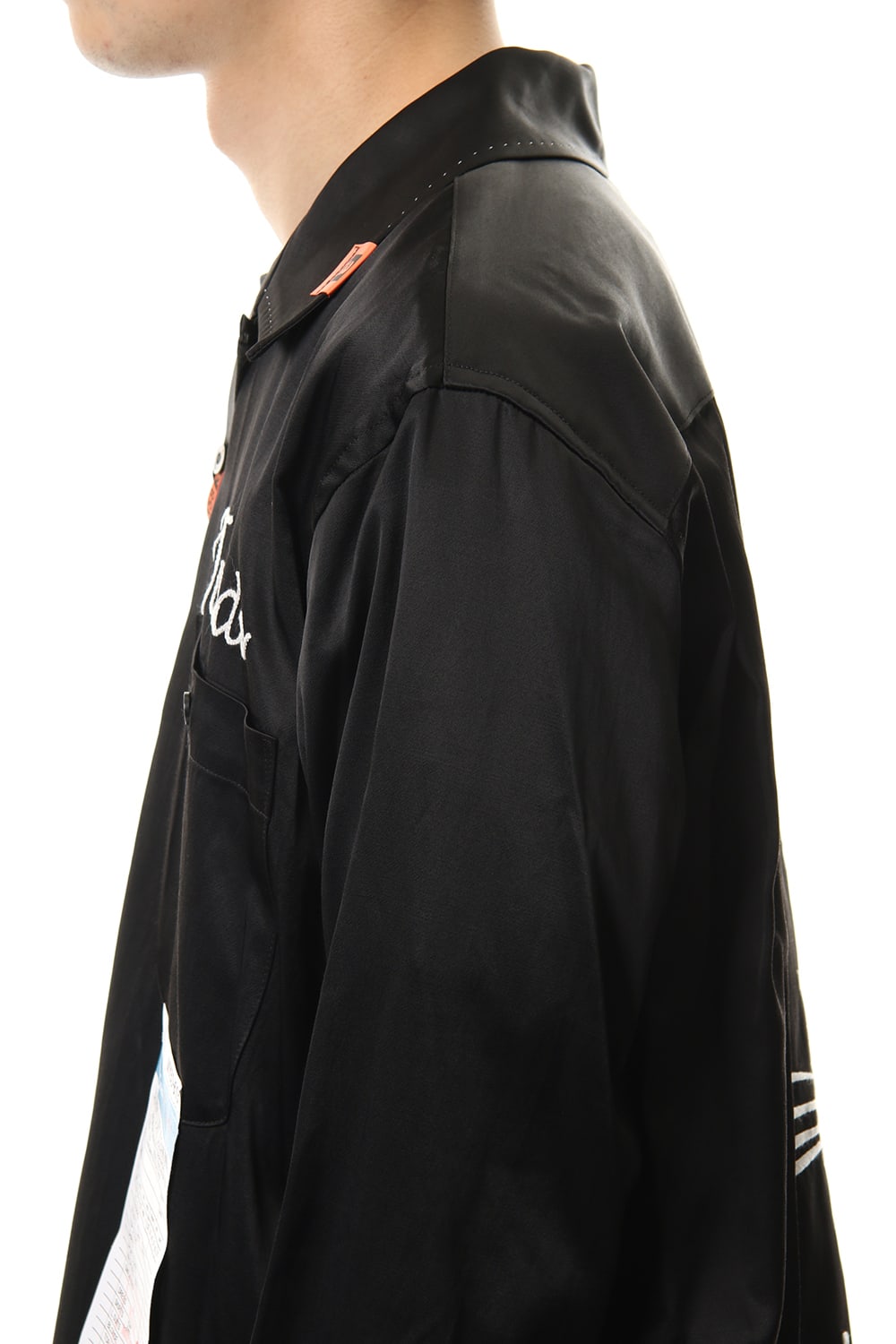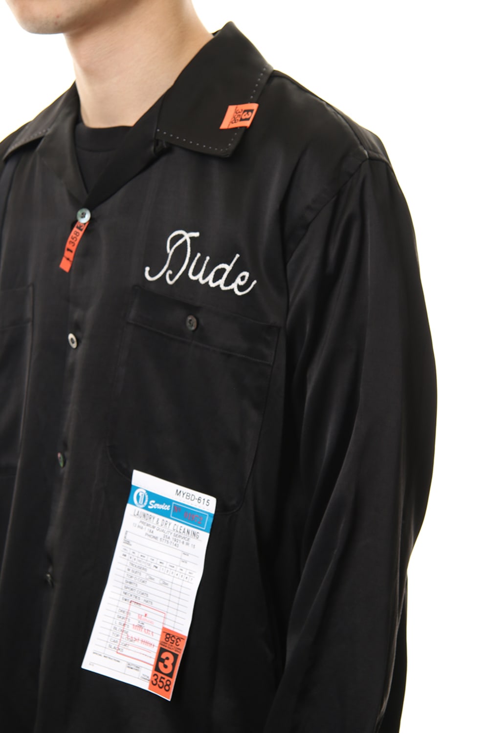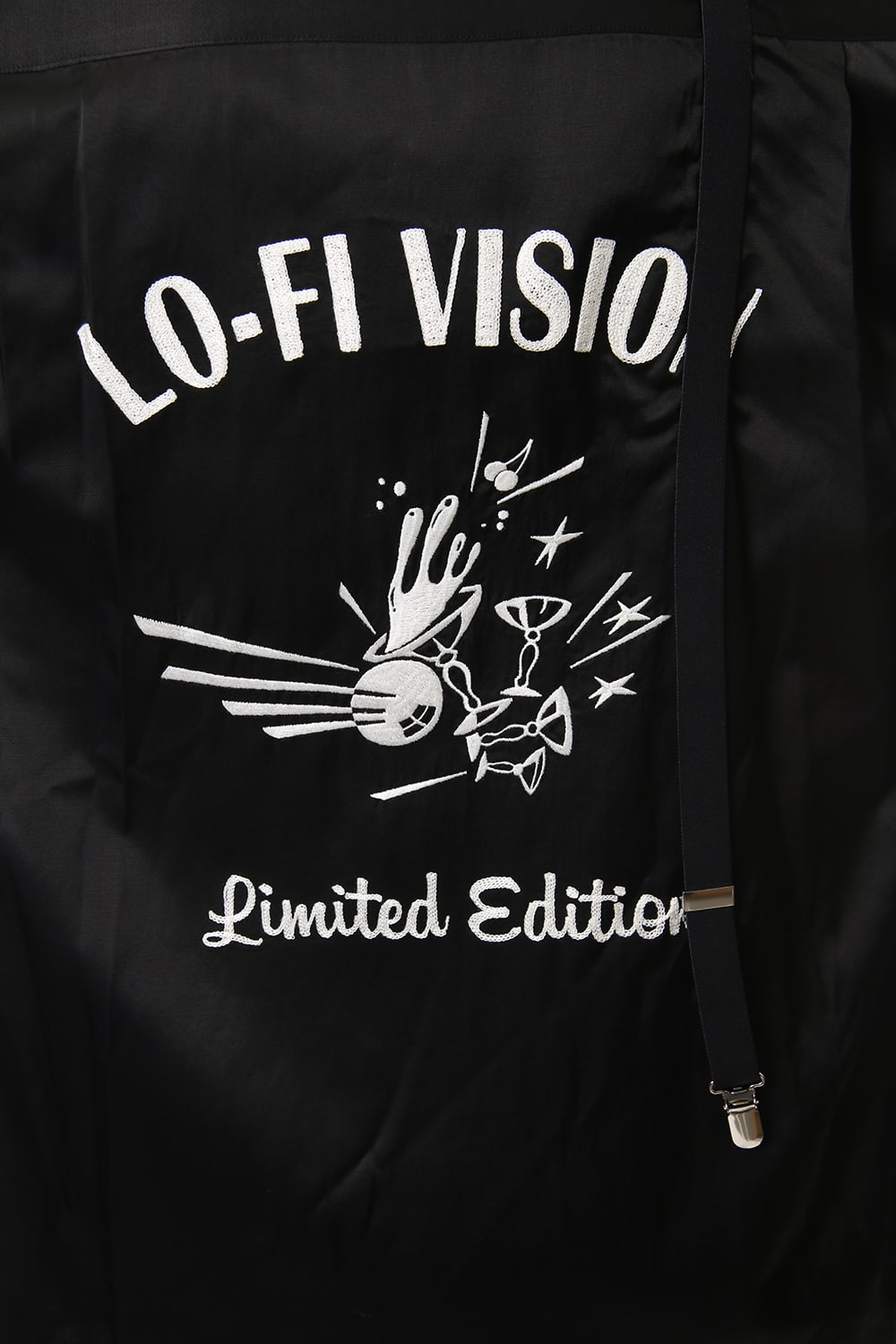 Shirt using soft rayon and cotton fabric Embroidery design on the back and left chest The design with suspenders are placed on the front and back of the right shoulder, it can be used as one point of styling Slightly relaxed oversized silhouette It has a playful design with the statement 358 wash tag attached to mimic the tags from the cleaners. ※ It is possible to wash with the tags attached, if you dislike it, it is also possible to remove.