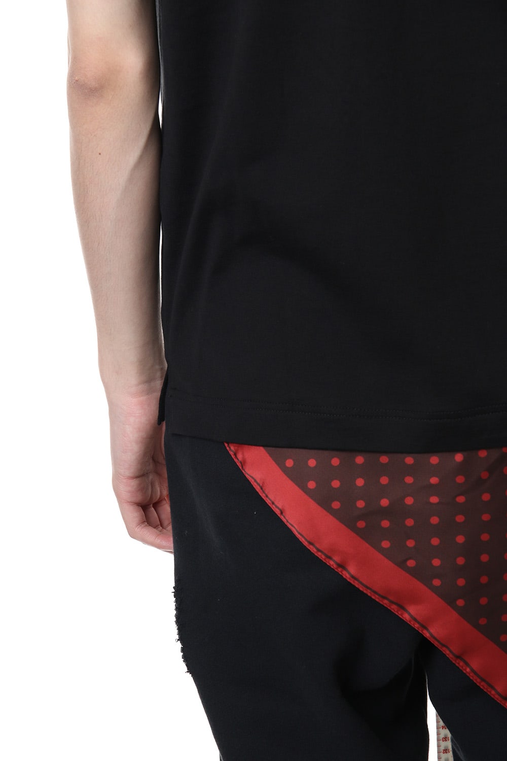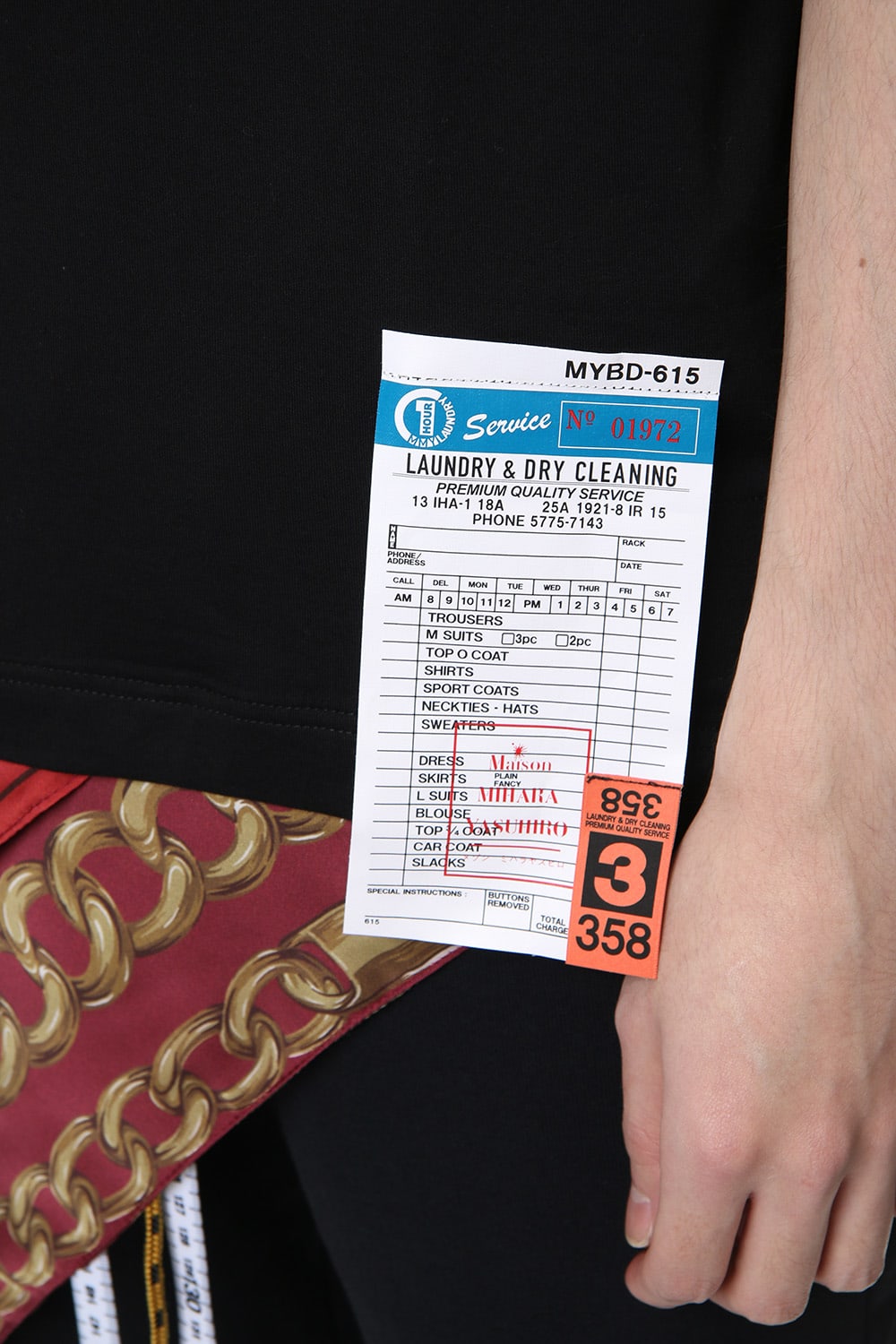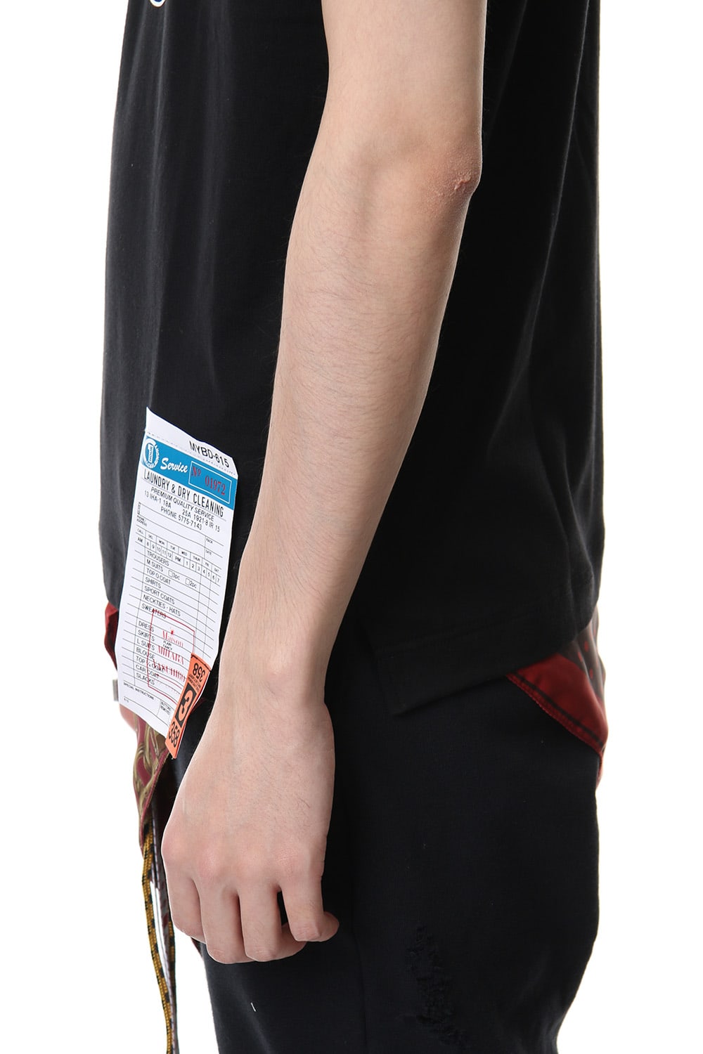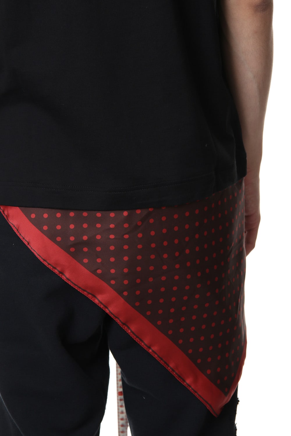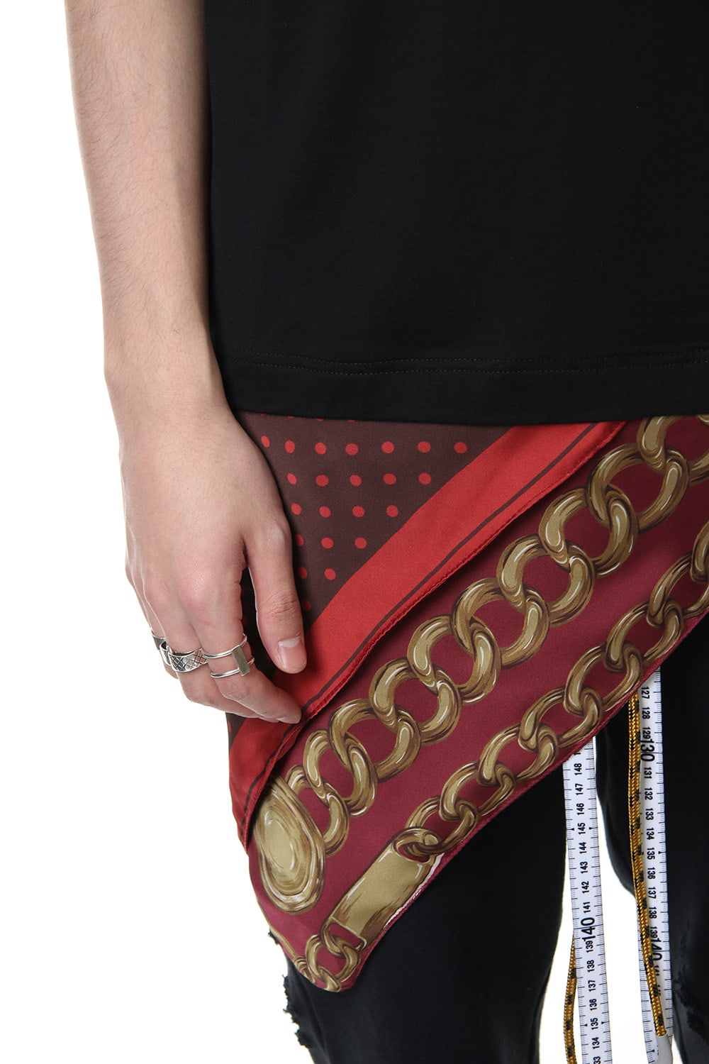 Design T-shirt with layered scarf of two different designs on the hem. (※ not removable) Regular silhouette. It has a playful design with the statement 358 wash tag attached to mimic the tags from the cleaners. ※ It is possible to wash with the tags attached, if you dislike it, it is also possible to remove.