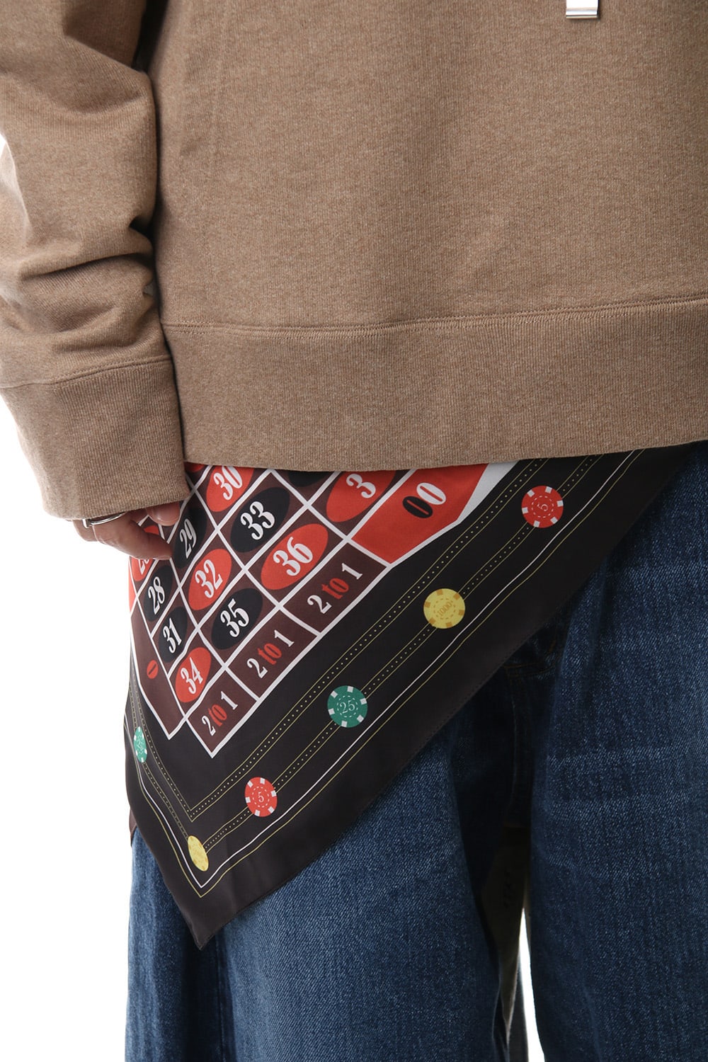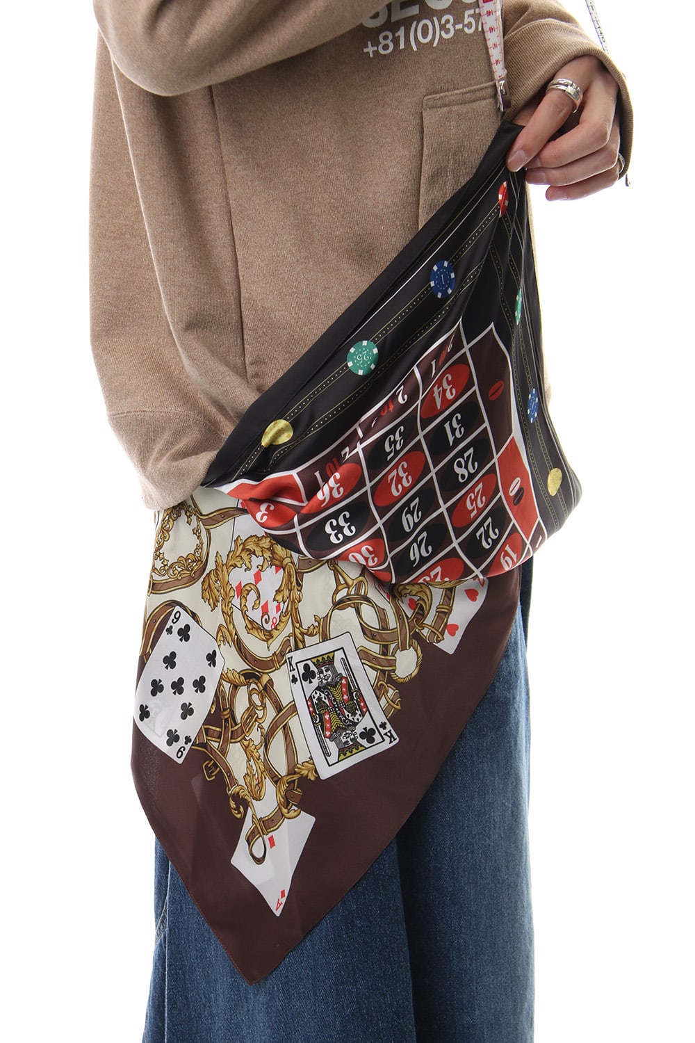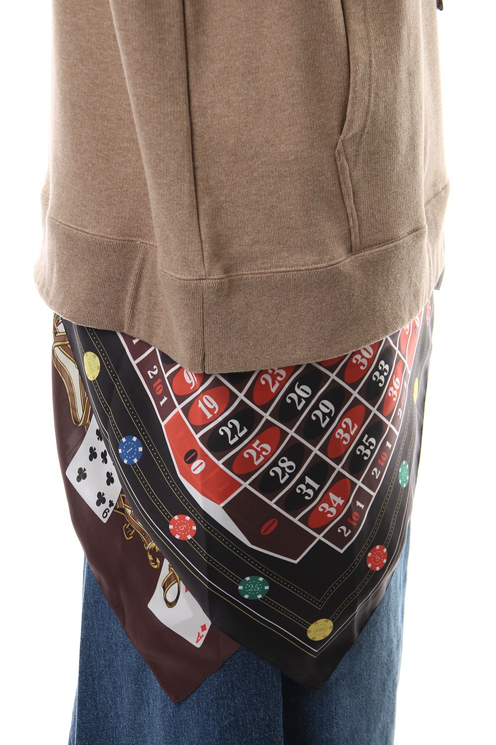 This season's scarves are a trump pattern and a casino roulette board pattern.