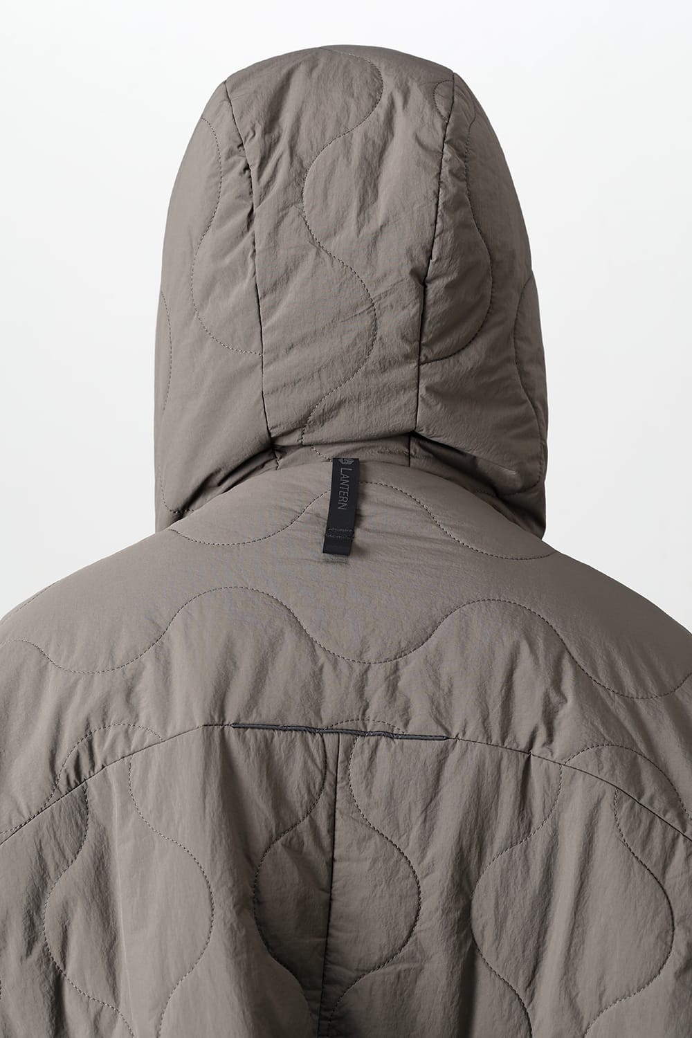 ・后领设计部分的领子部分采用了激光切割的LANTERN logo印花带子。当光线在黑暗的地方照射时,黑色反射器会反射并起到通知对方位置的作用。