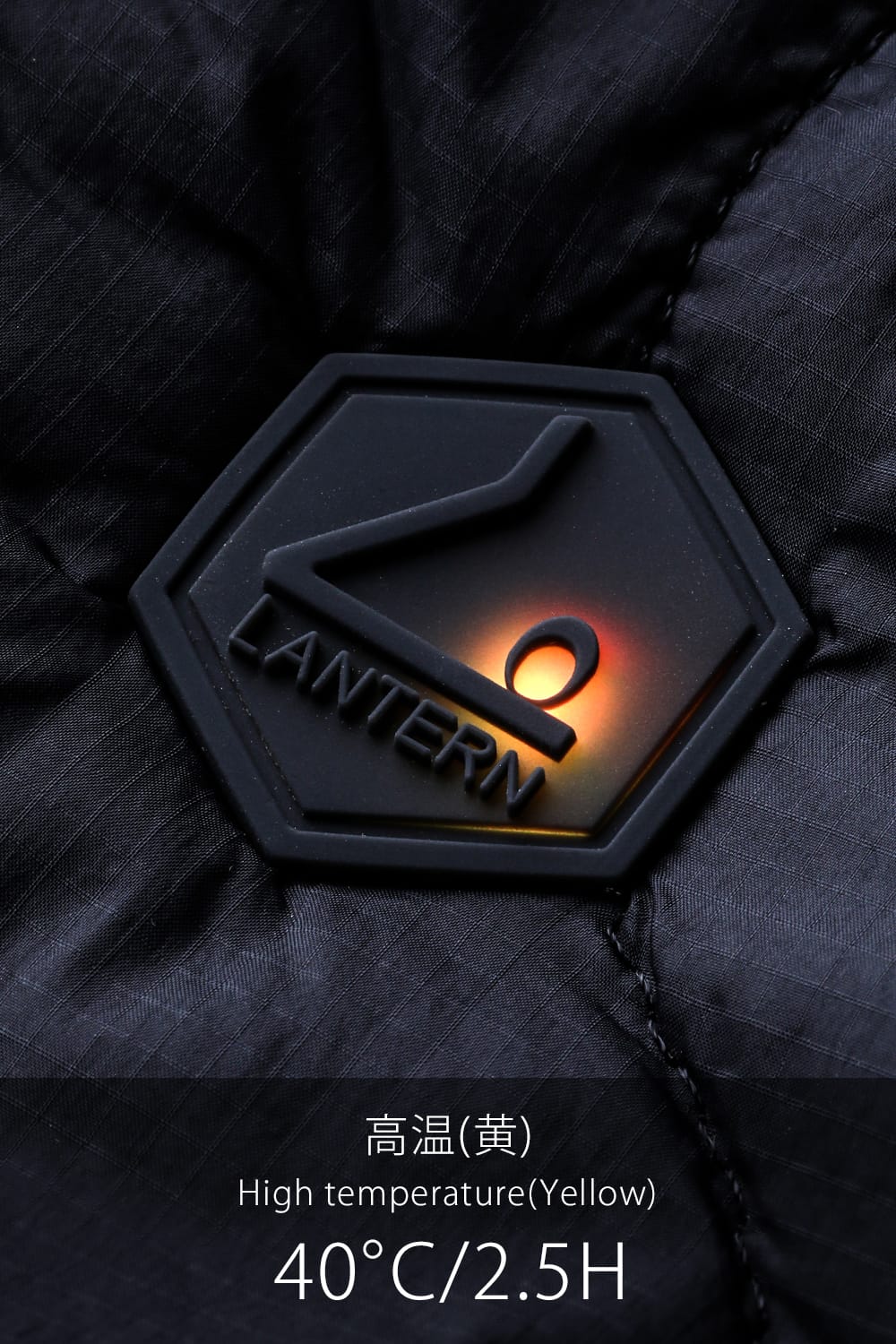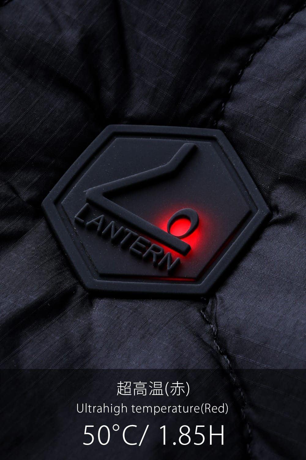 It is cotton padding wear that can adjust the temperature with the power supply temperature adjustment switch on the left sleeve. The heating device is a system that works by connecting the charging battery to the USB plug of the machine, and the switch changes color depending on the set temperature. The heat source is made from carbon fiber, and it warms from the core of the body by far-infrared ray effect. The operating time of the heating device varies depending on the battery capacity and temperature setting.