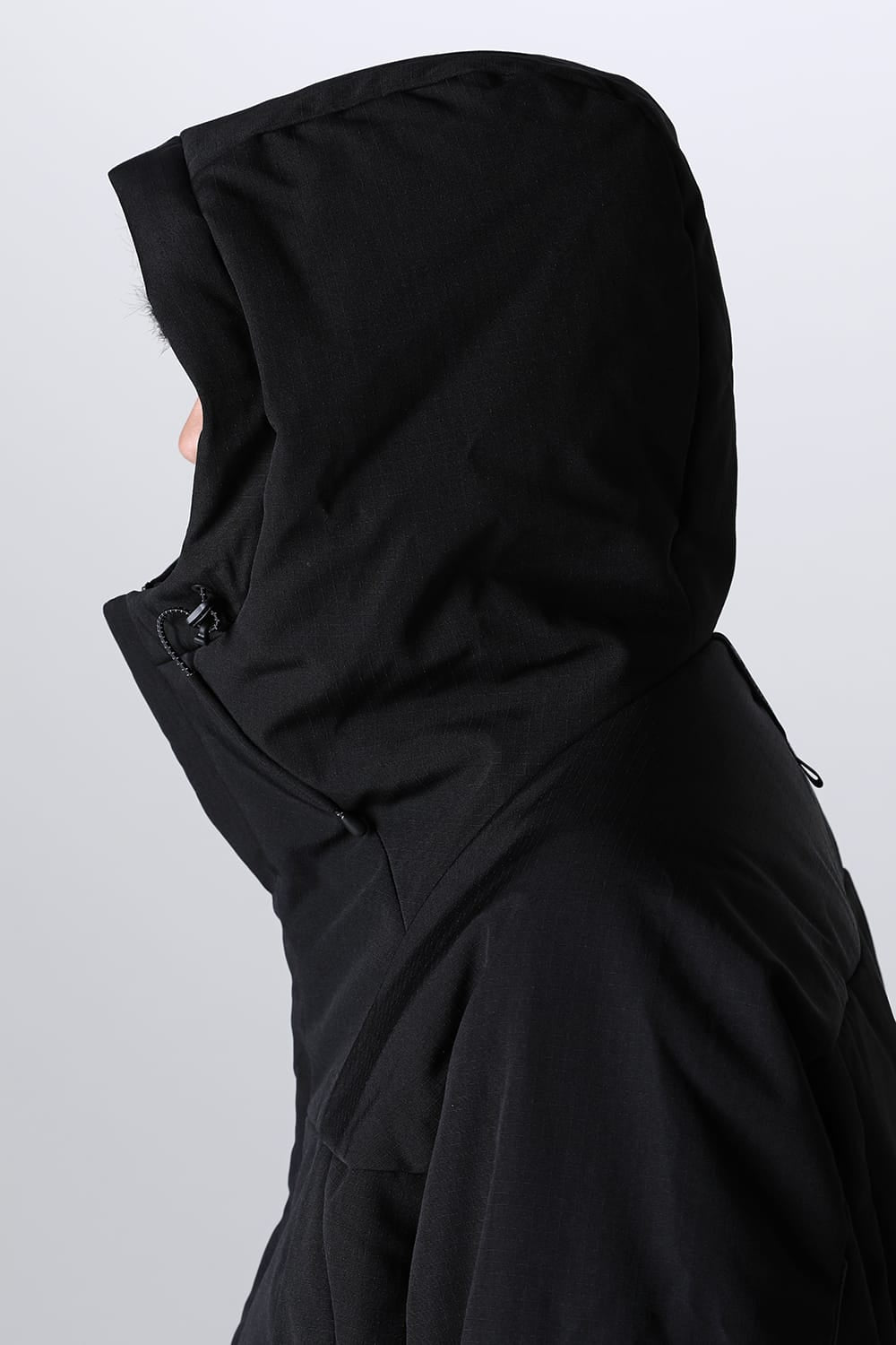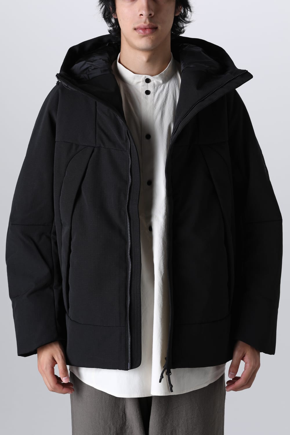 The three-dimensional hood shape and fully zipped closure provide protection against heavy rain and wind.