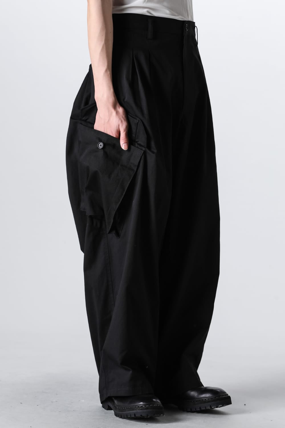 这条裤子采用12个褶皱设计,创造出极其宽松的轮廓,而大型口袋使其显得粗犷和阳刚。