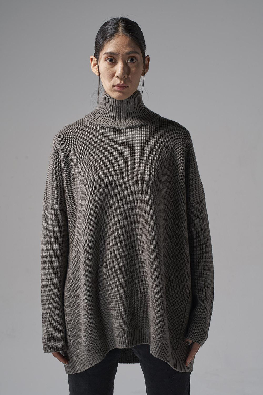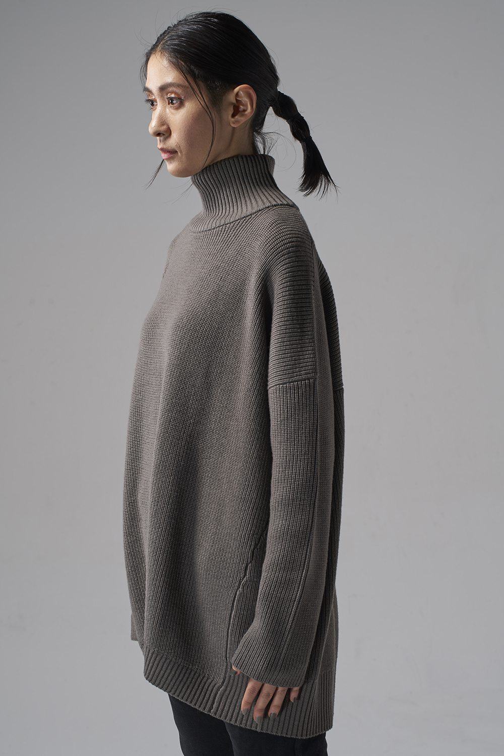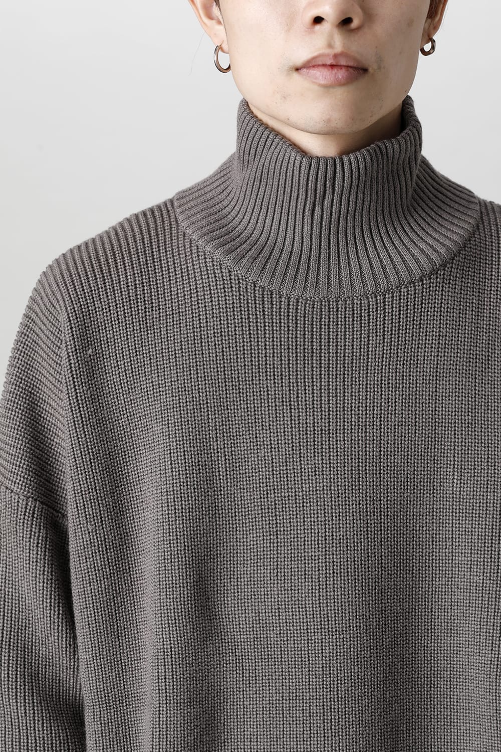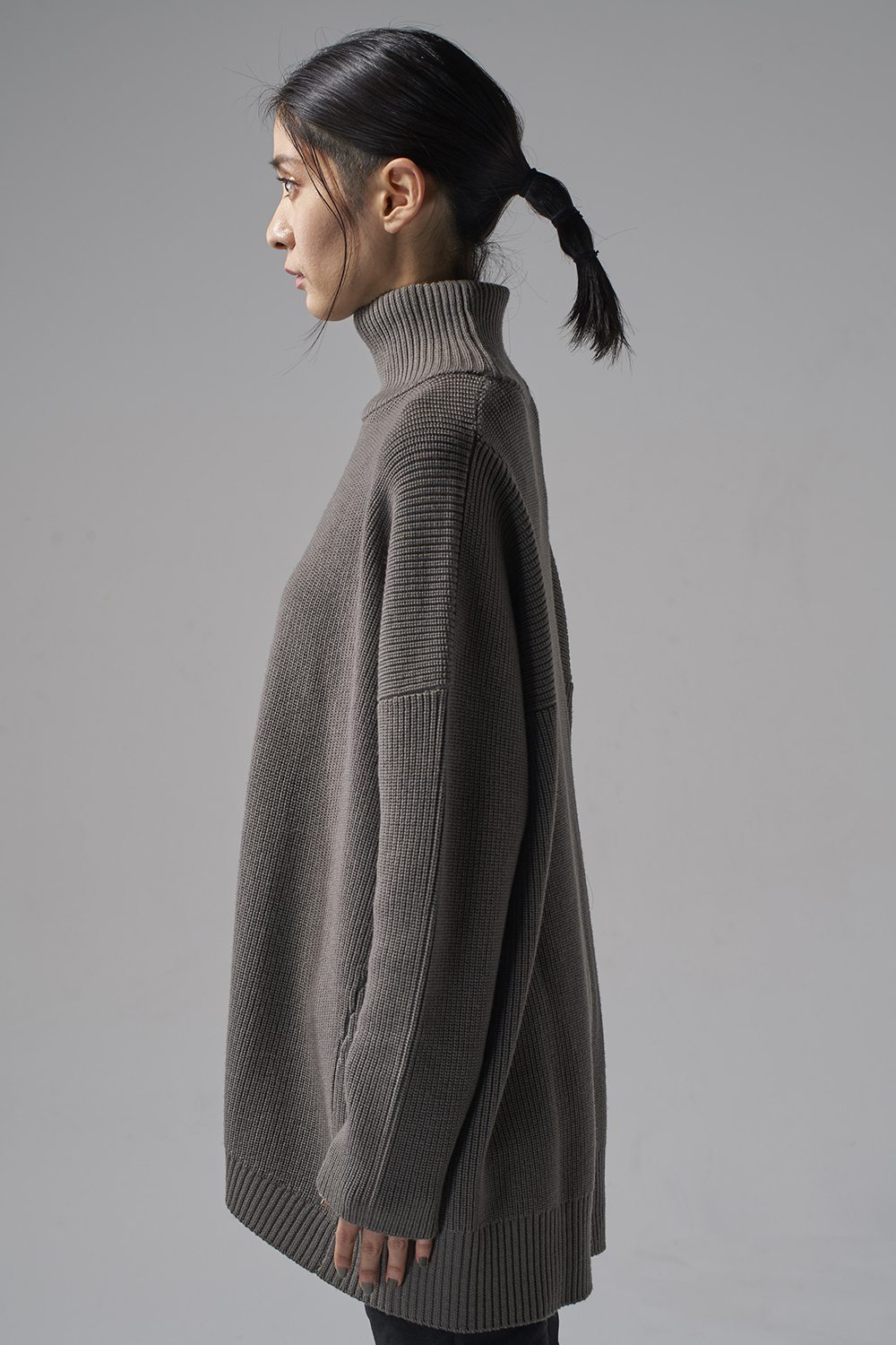 This high neck knit is made from high quality merino wool and is made with 7-gauge one-sided stitching.