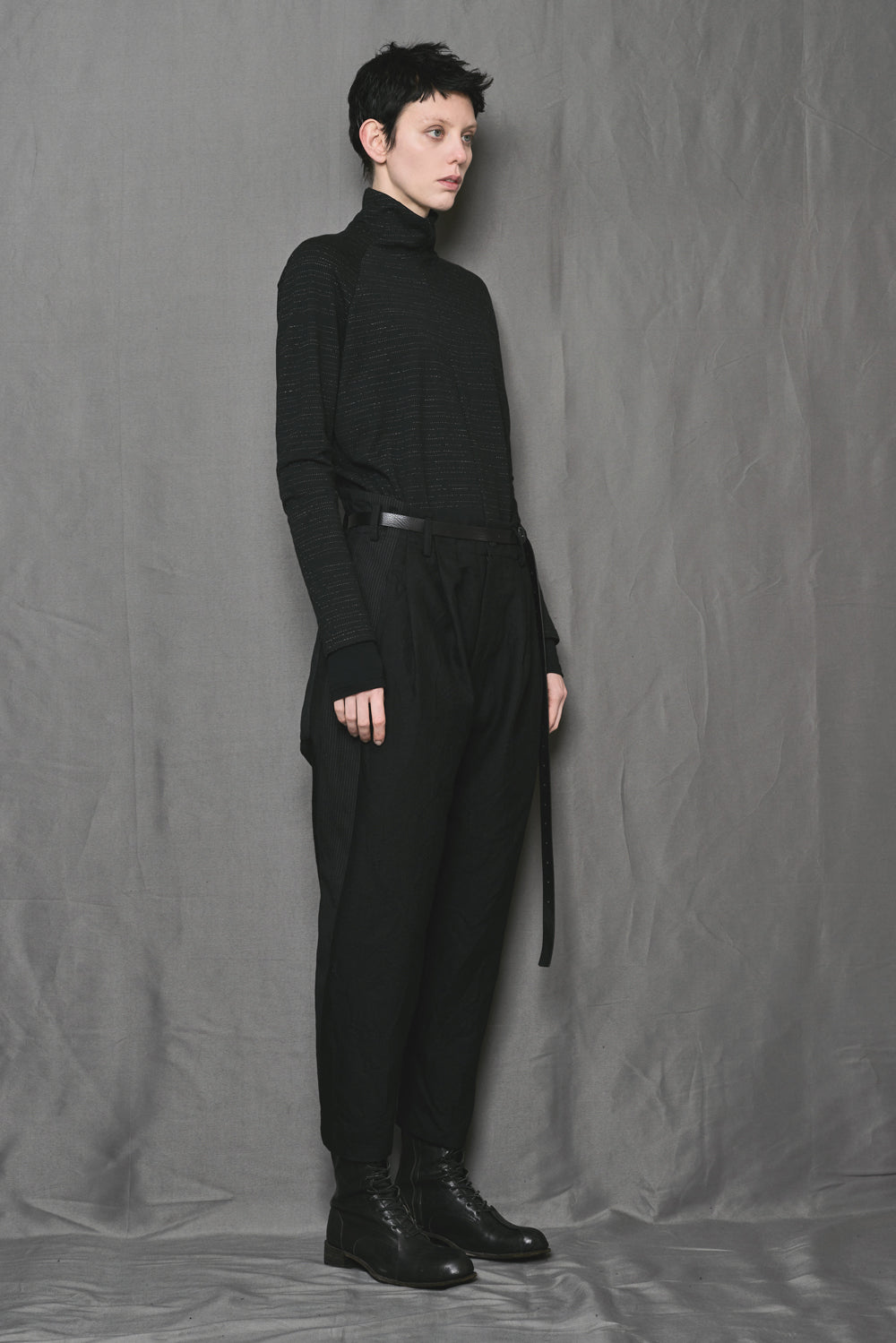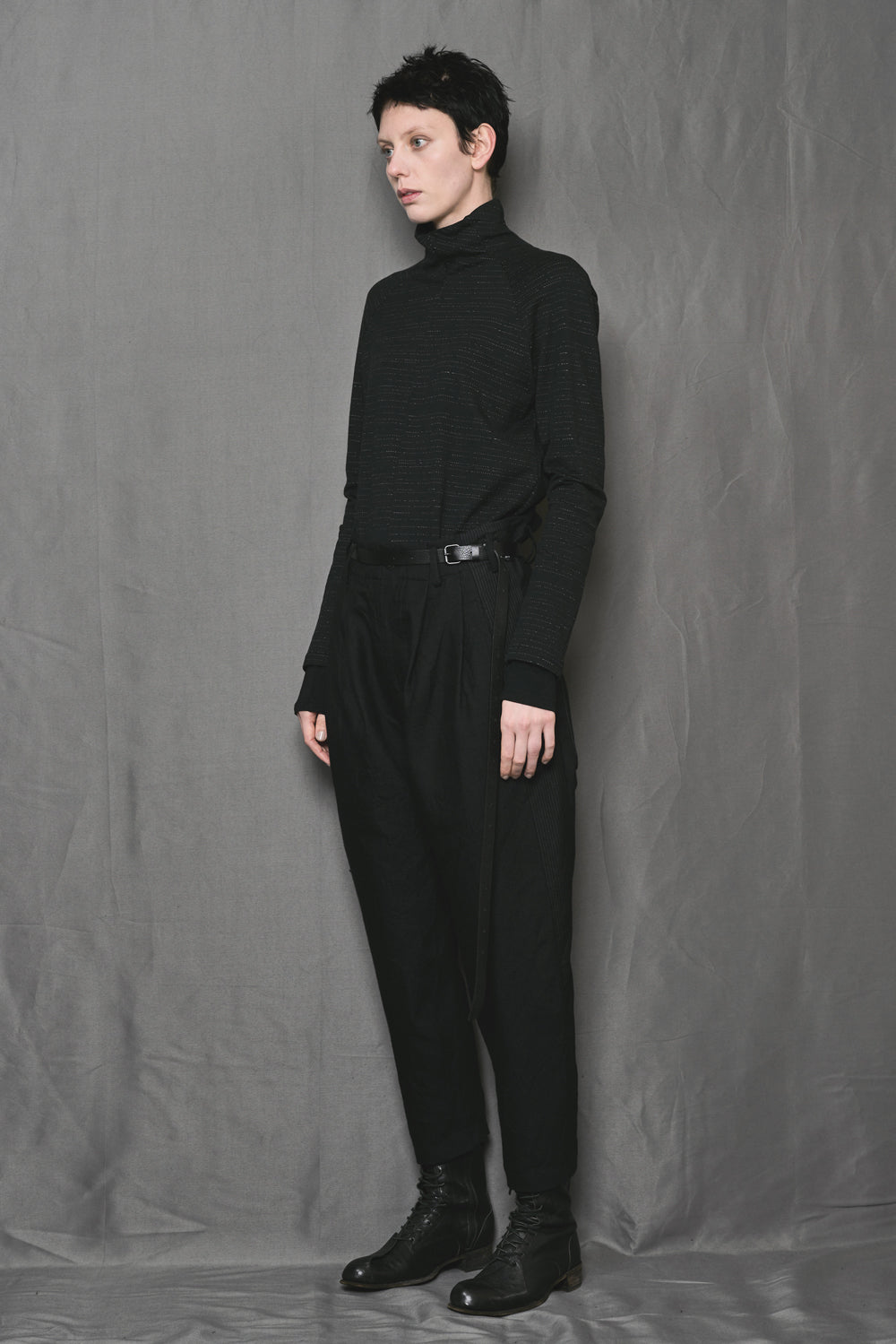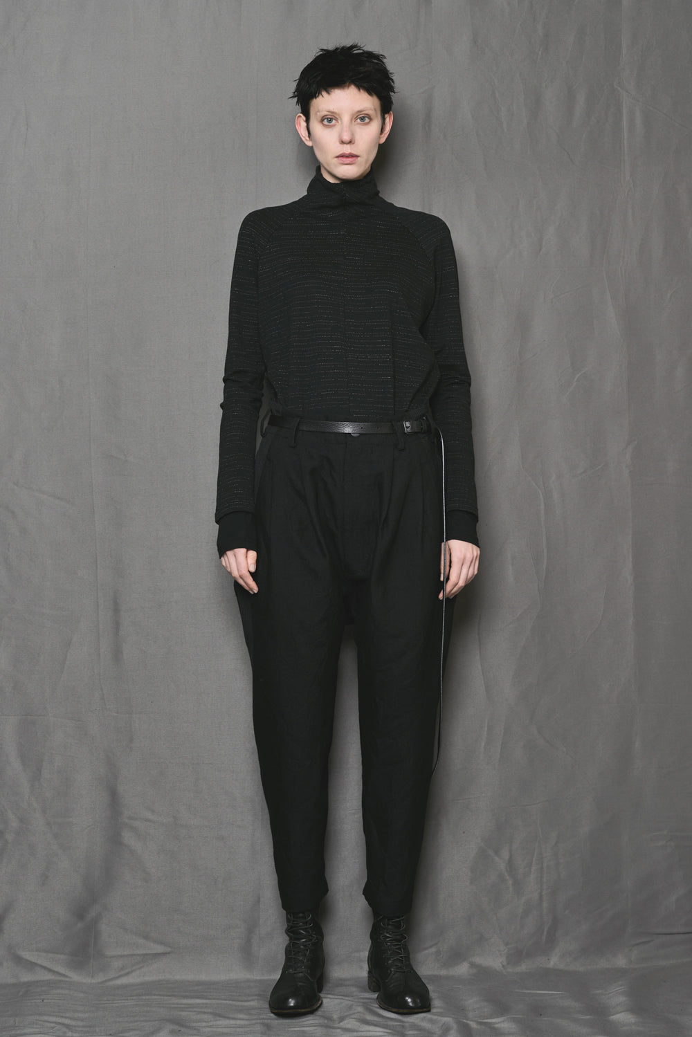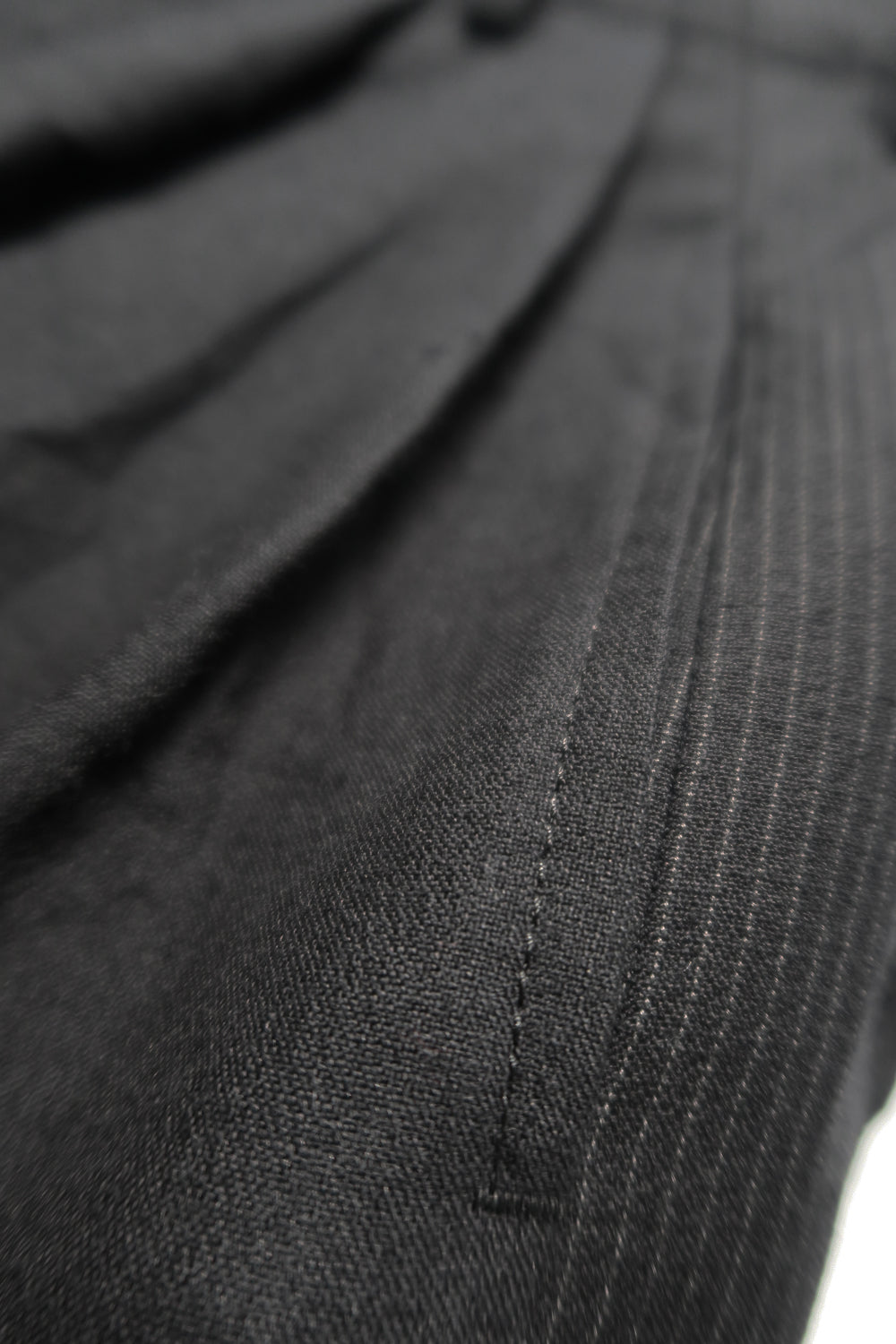 Wool/Linen Double Weave (Front: Stripe/Back: Plain) Polished Drop Crotch Pants
