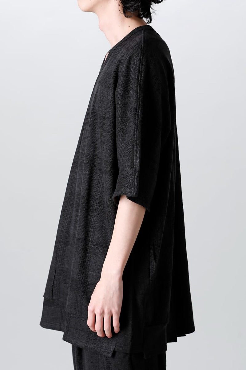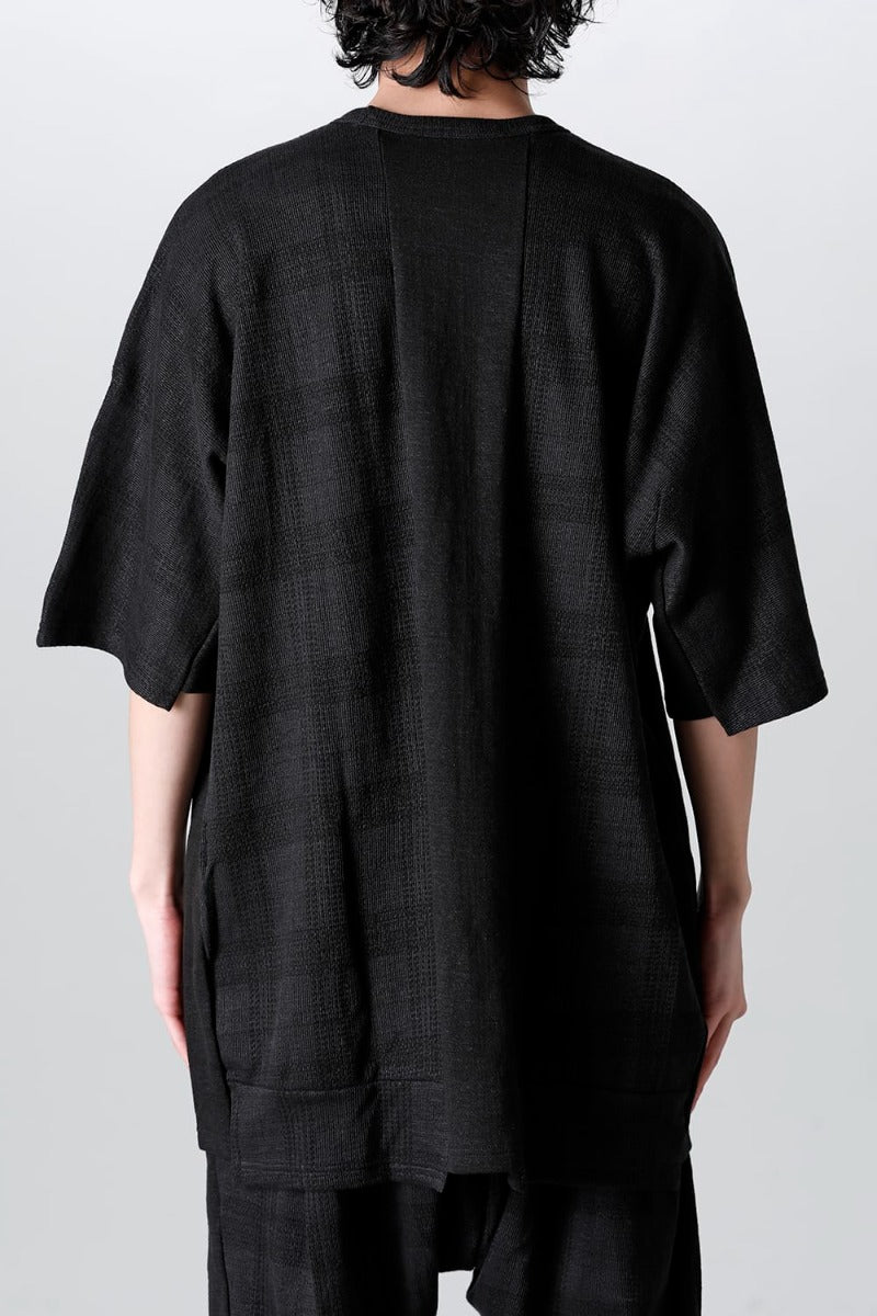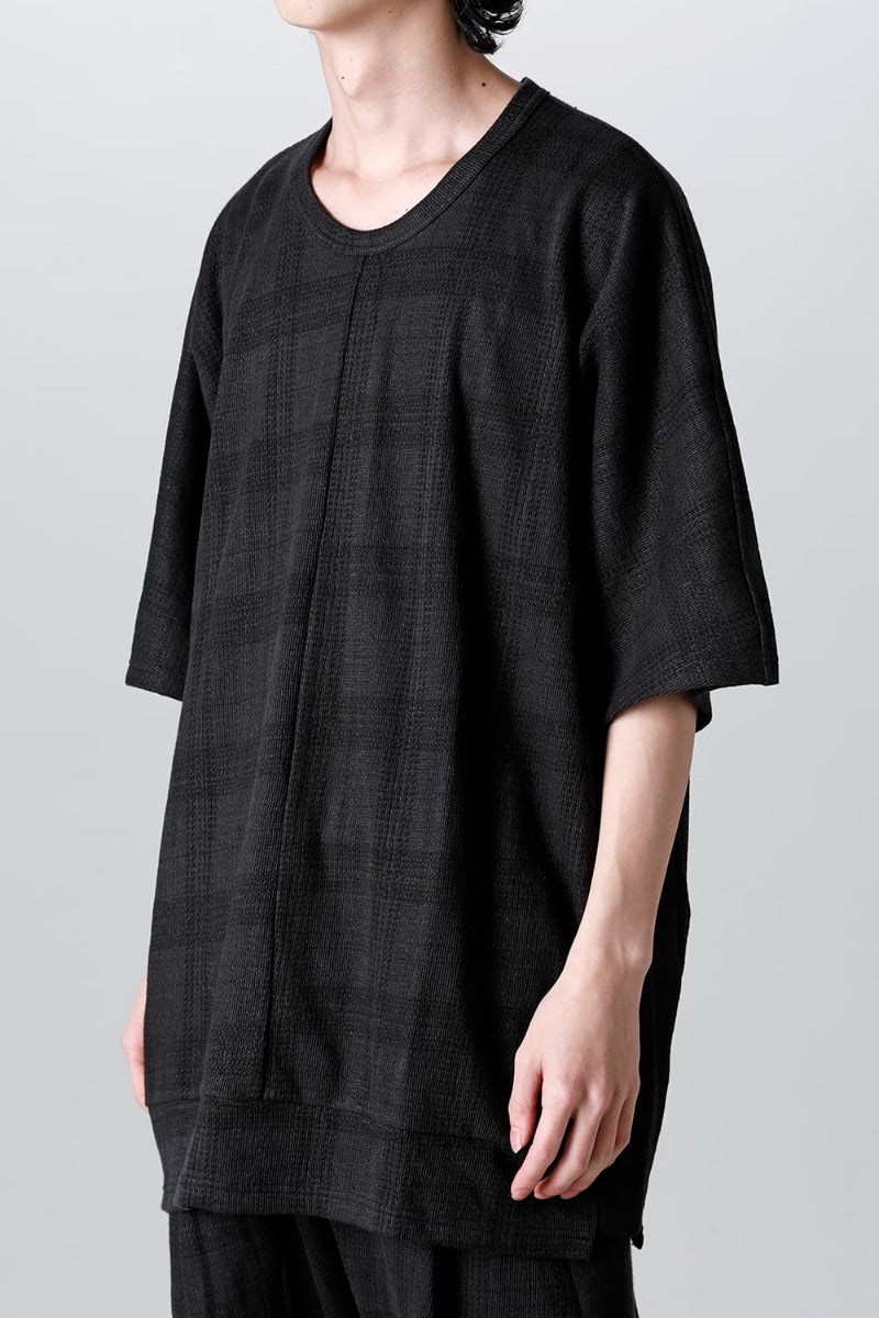 This piece is made of jersey material with a shadow check pattern that is both elegant and humorous.