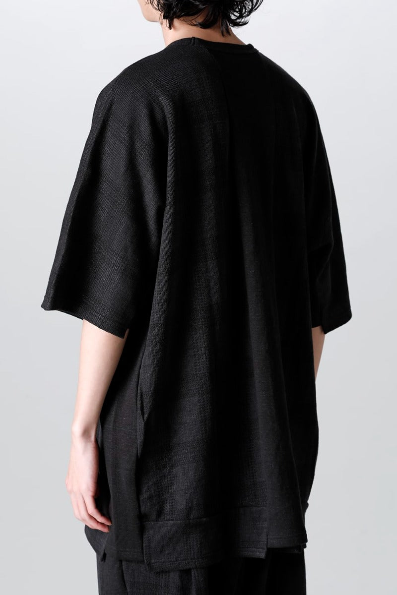 Short-sleeved T-shirt with an oversized silhouette made of cotton linen fabric.