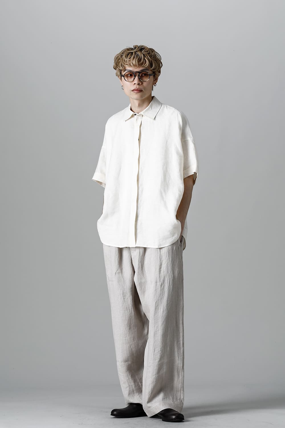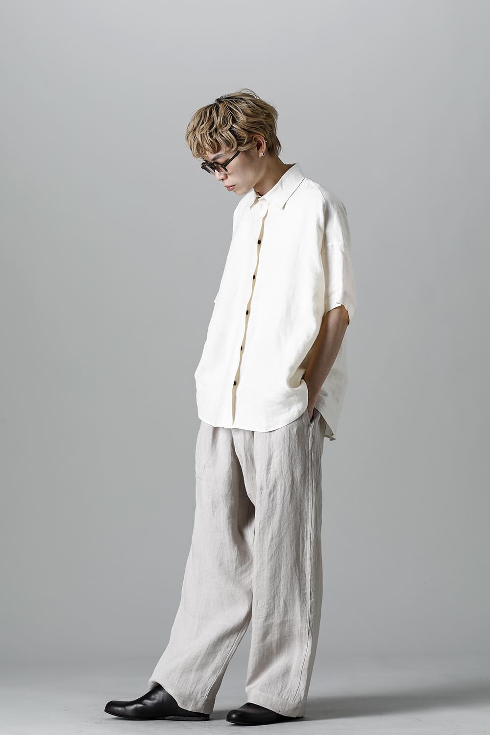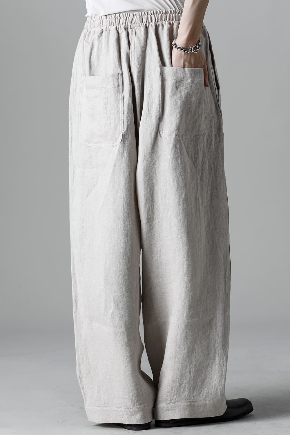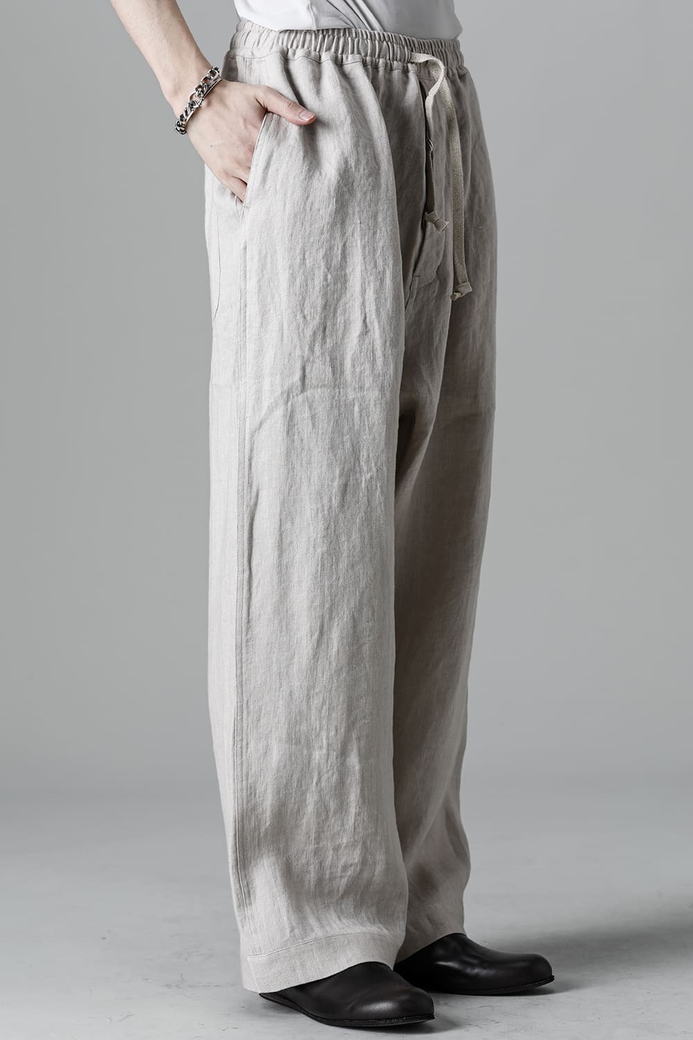 Full-length wide pants with drawstring waist elastic, which is rare in O project. This item is made of a linen herringbone fabric. The elastic fabric that bounces while the core remains as you wear it. By combining with rough and compact shoes such as sandals or slip-on shoes, you can create a light spring-summer-like footwear with full length.