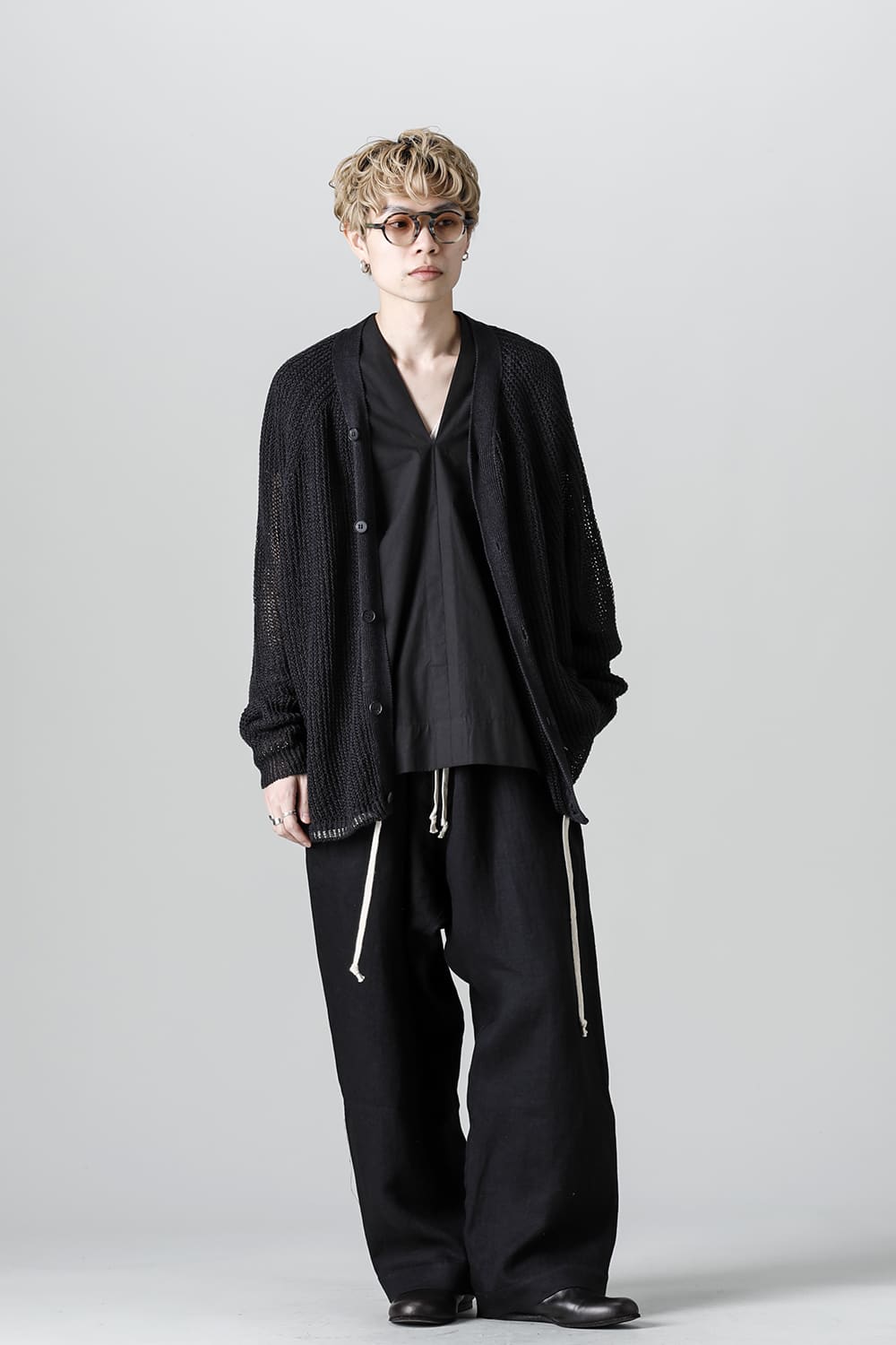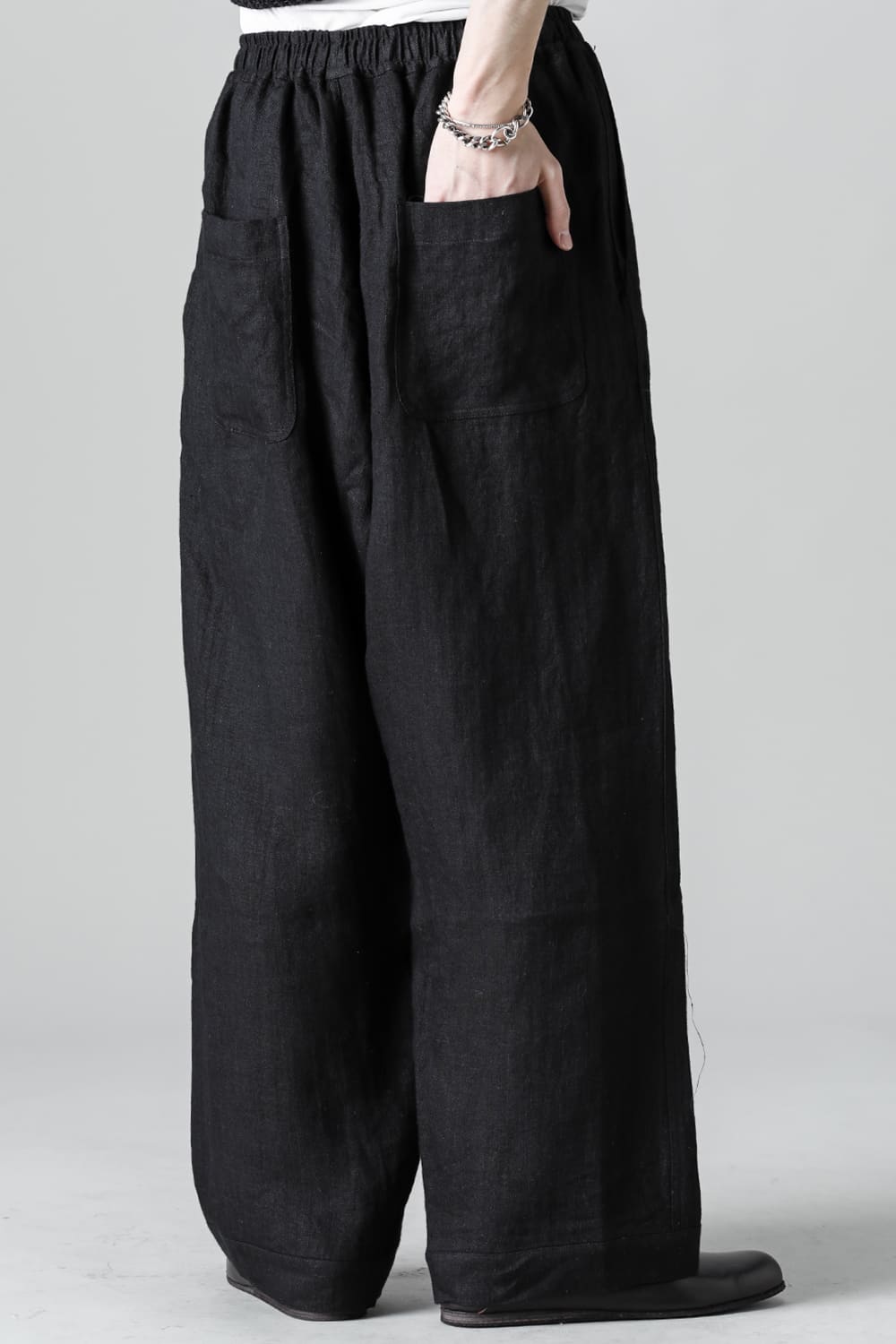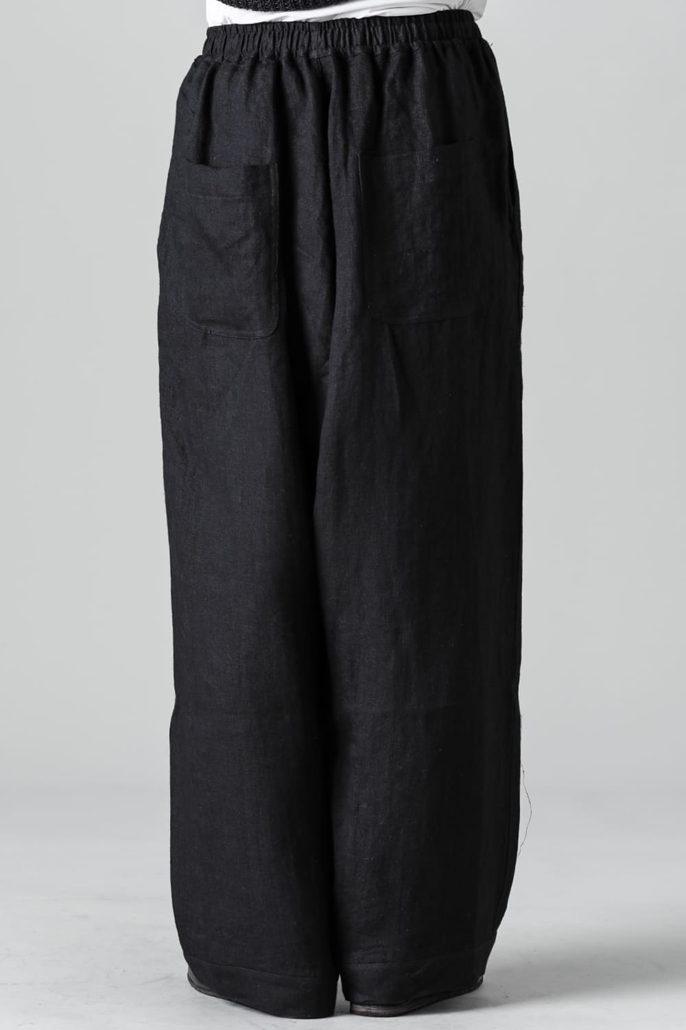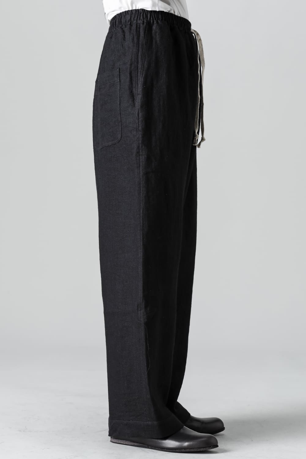 Full-length wide pants with drawstring waist elastic, which is rare in O project. This item is made of a linen herringbone fabric. The elastic fabric that bounces while the core remains as you wear it. By combining with rough and compact shoes such as sandals or slip-on shoes, you can create a light spring-summer-like footwear with full length.