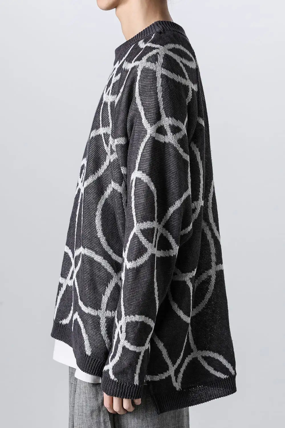 KNITTED CREW NECK Hemp yarn 7gg DK GREY