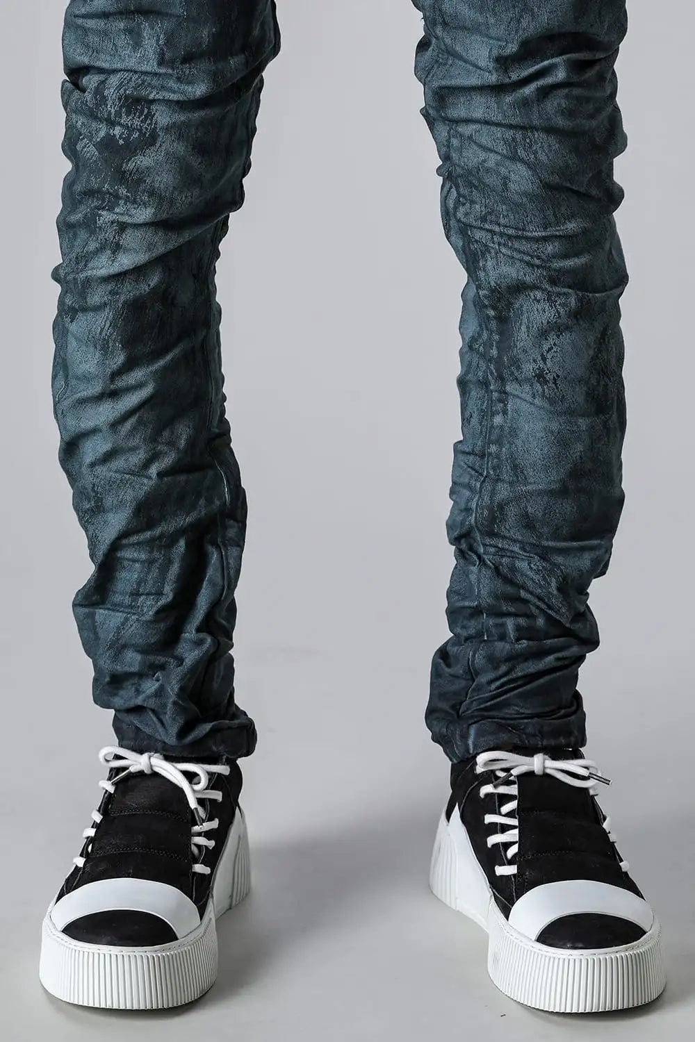 A staple of the brand, these denim pants are crafted from cotton with vinyl processing and nickel pressing, resulting in a three-dimensional, tight-fitting design.