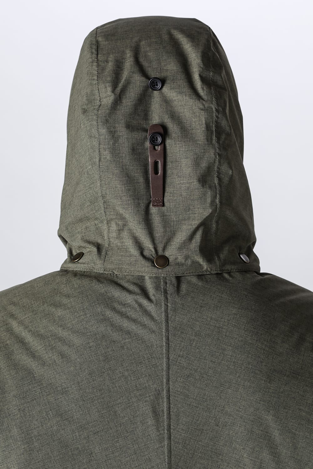 When the hood is removed, it transforms into jacket with details like coach jacket.