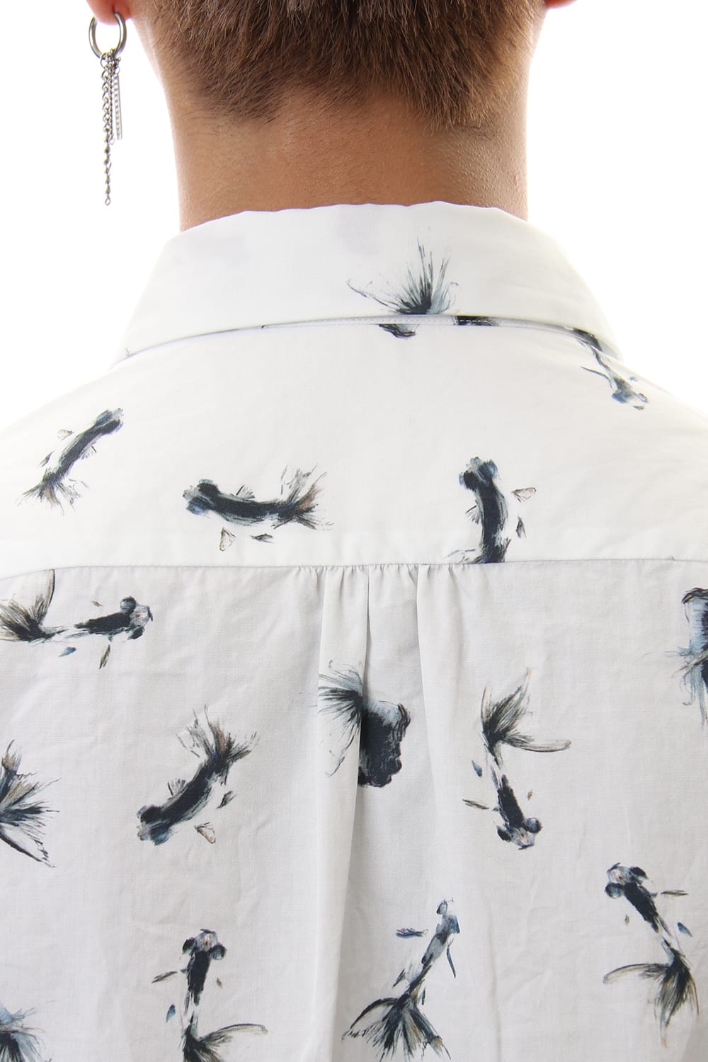 -Print drawing of a goldfish drawn by Patricia on 100/2 broad fabric