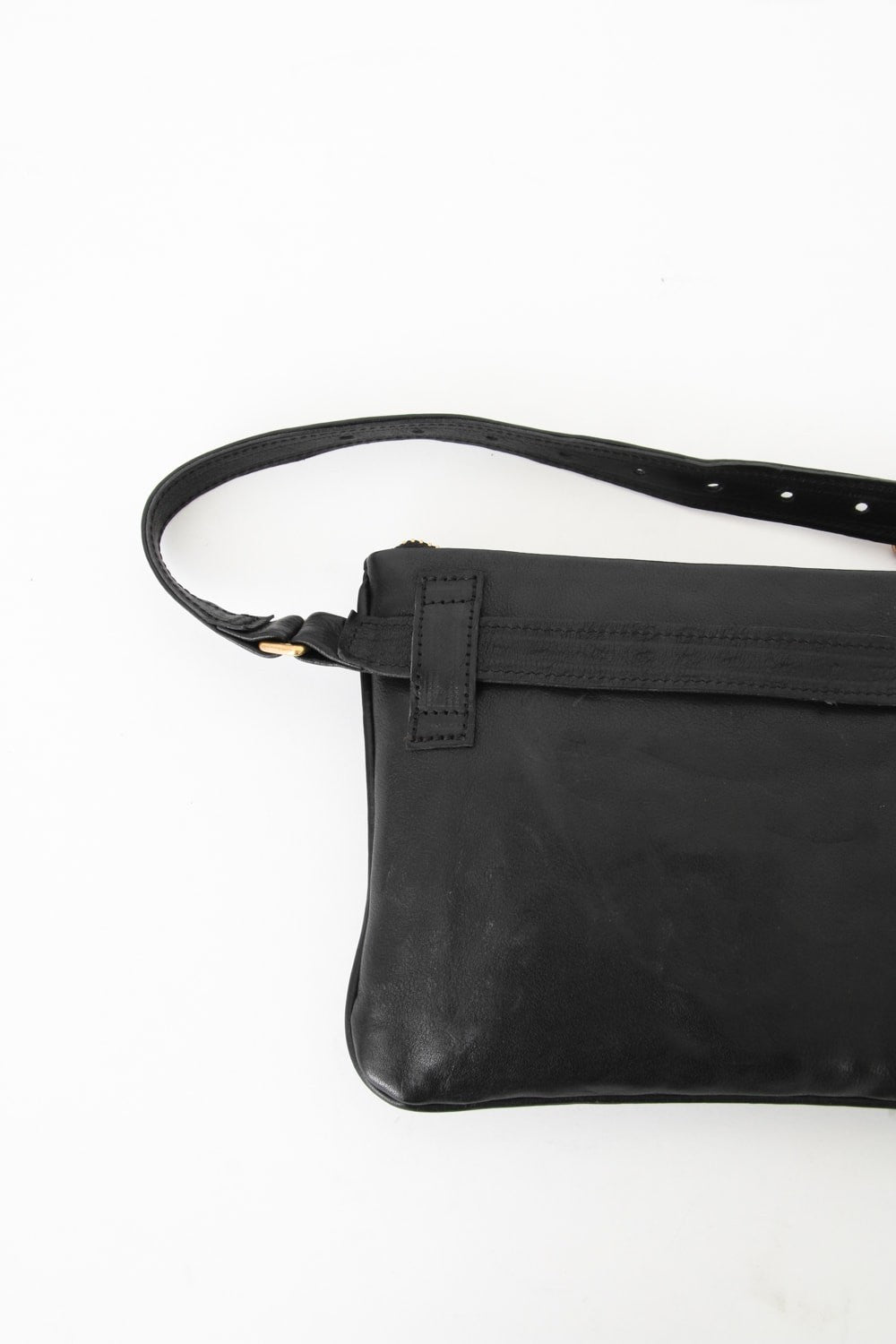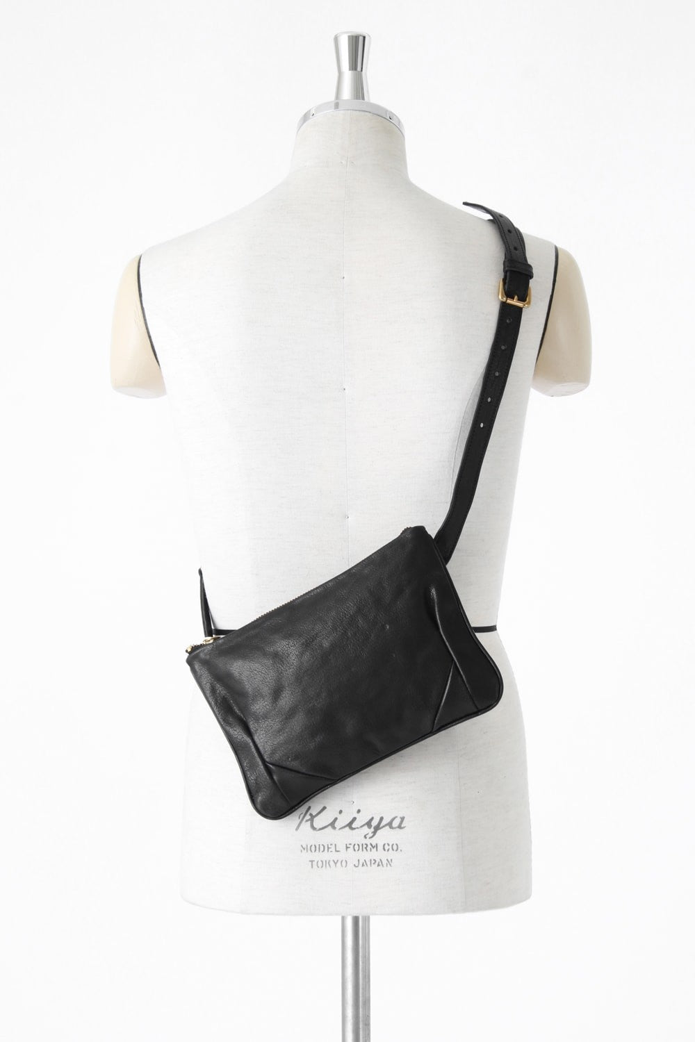 This Body Bag&Waist Bag is made with vegetable tanning process steer leather which fine grain, and it was oiled after the dyeing to create this glossiness leather. There is almost 0 depth so it is rather thin, and fits the body well with its compact size. It has 2 belts, and if you undo one, you can use the item as a waist bag.