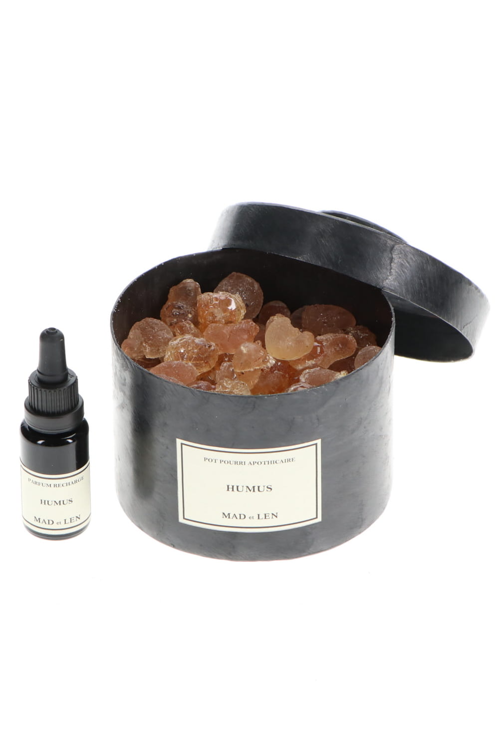Room fragrance used by impregnating natural lava stone with fragrance. The metal container in which the potpourri is housed is made by a Moroccan craftsman, pounding the metal plate one by one, following one of the ancient methods of black metal, panel beating.