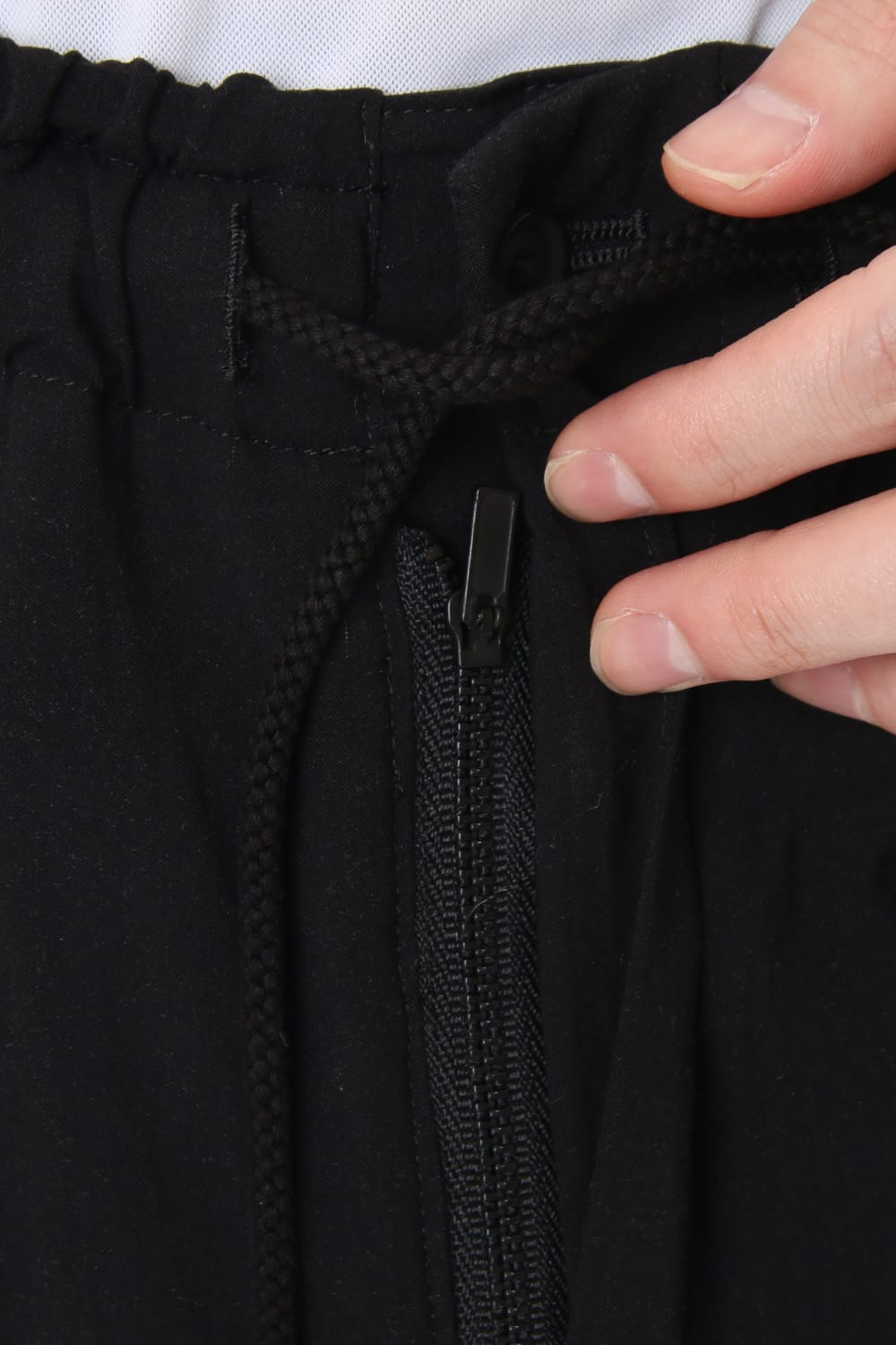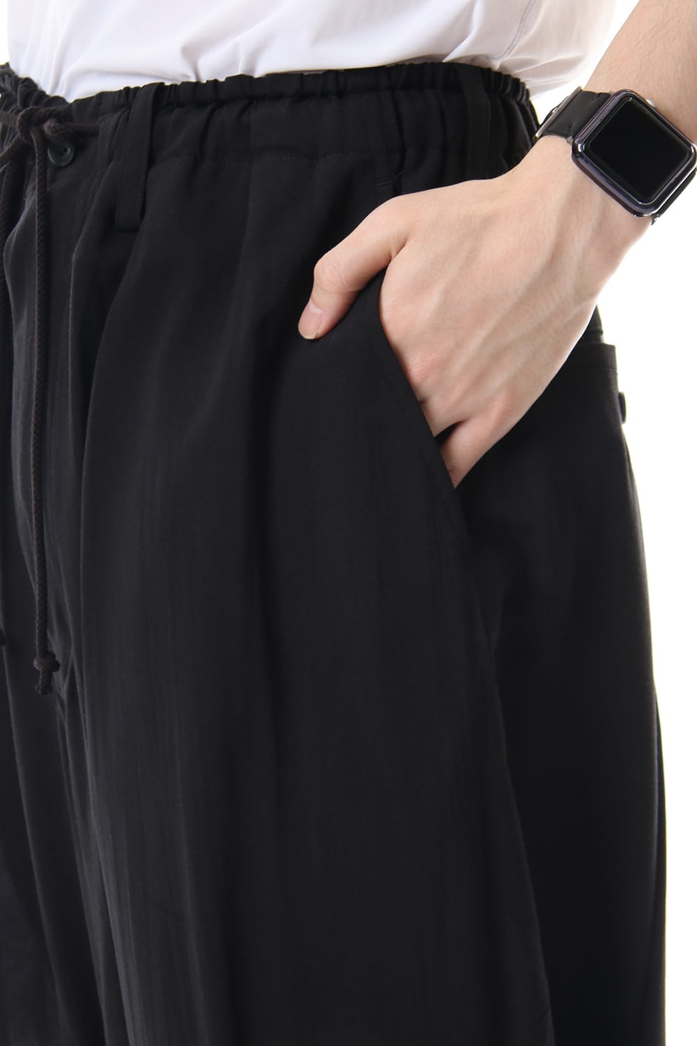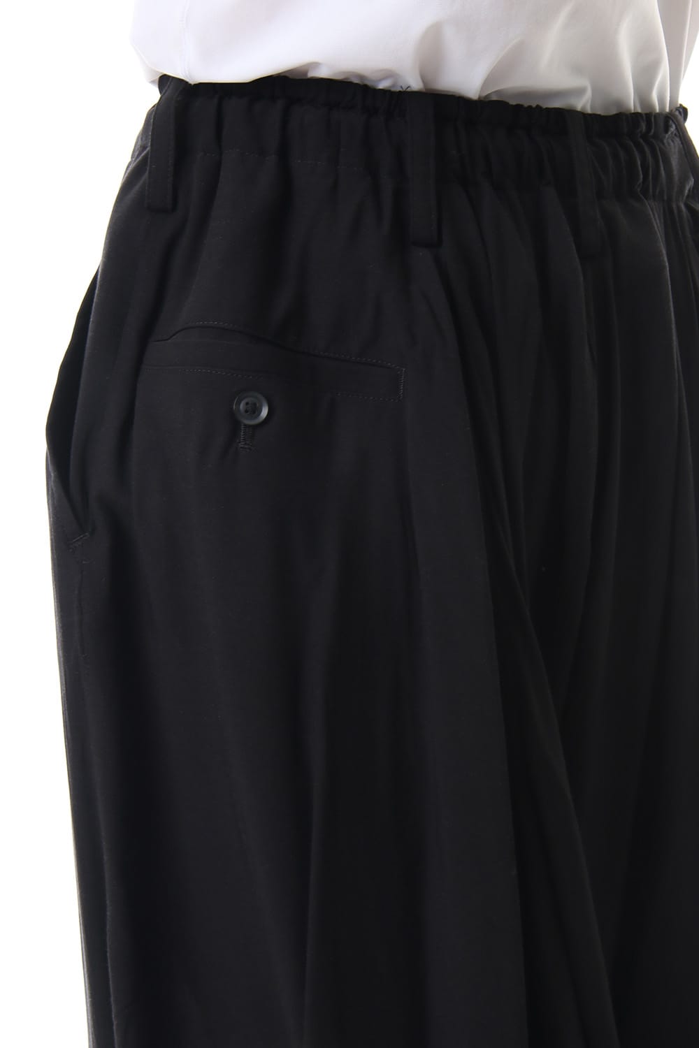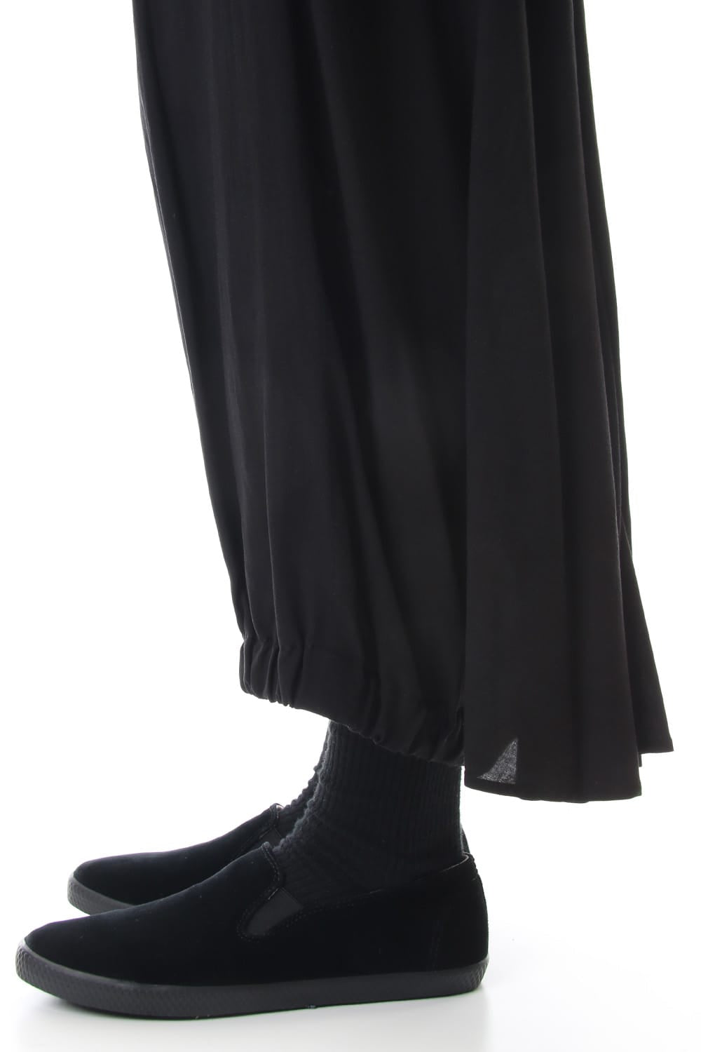 Crow pants with a woman print on the right side that was worn during the Runway LOOK 34. The crow pants were re-developed from the 19SS season, it has a unique shape that has voluminous fabric on the back that allows the pants to move beautifully when walking.