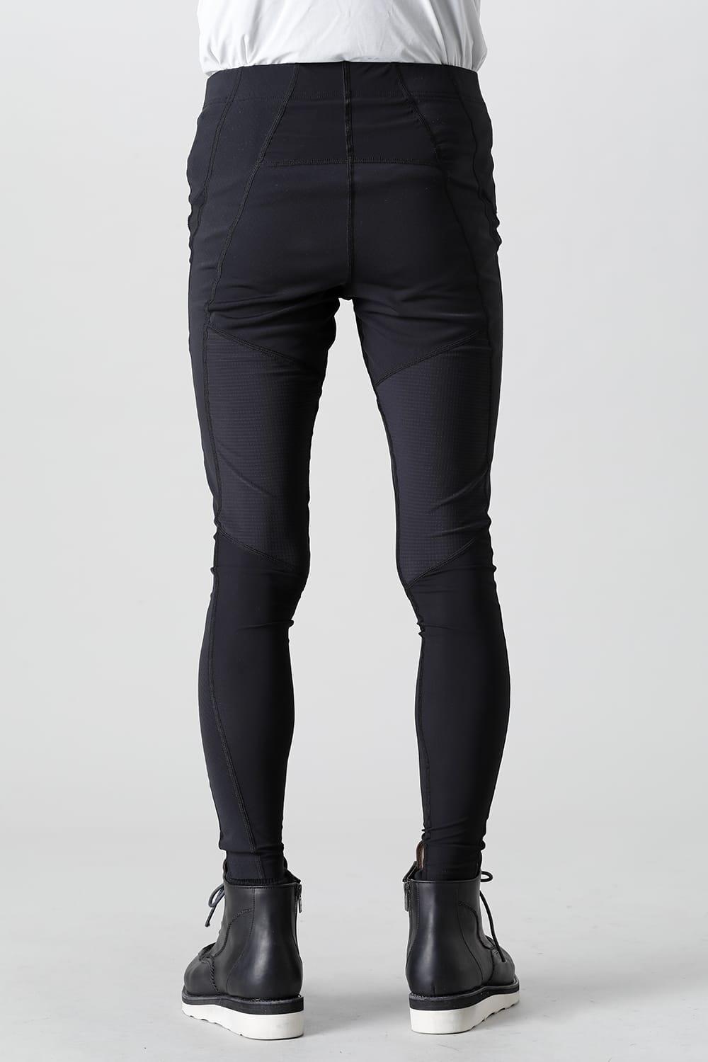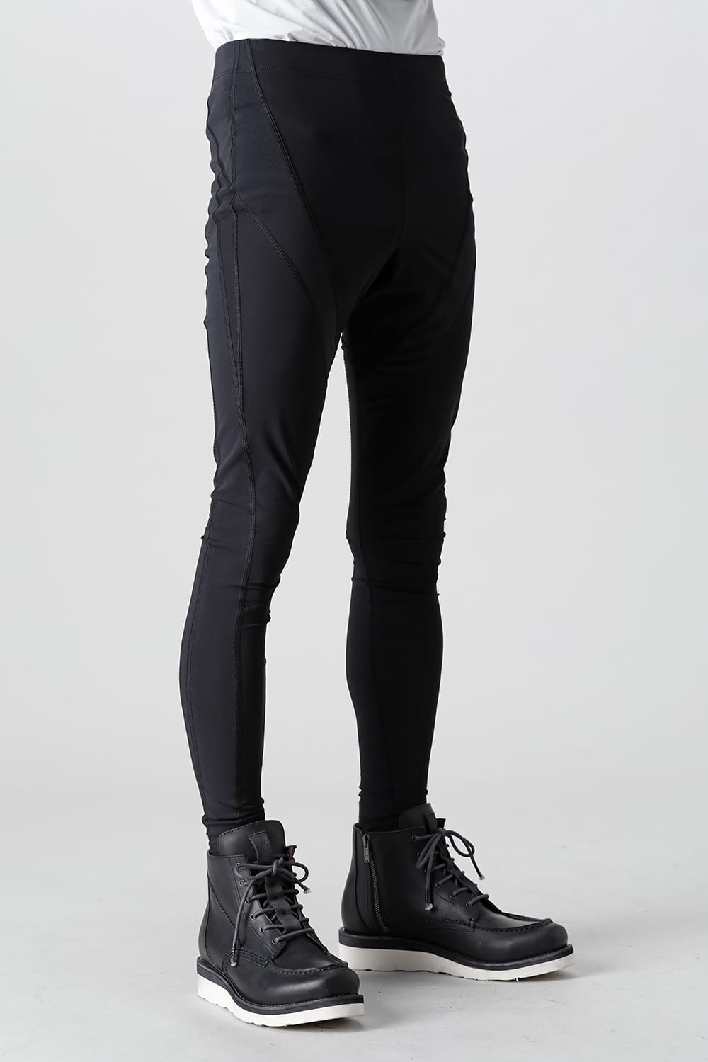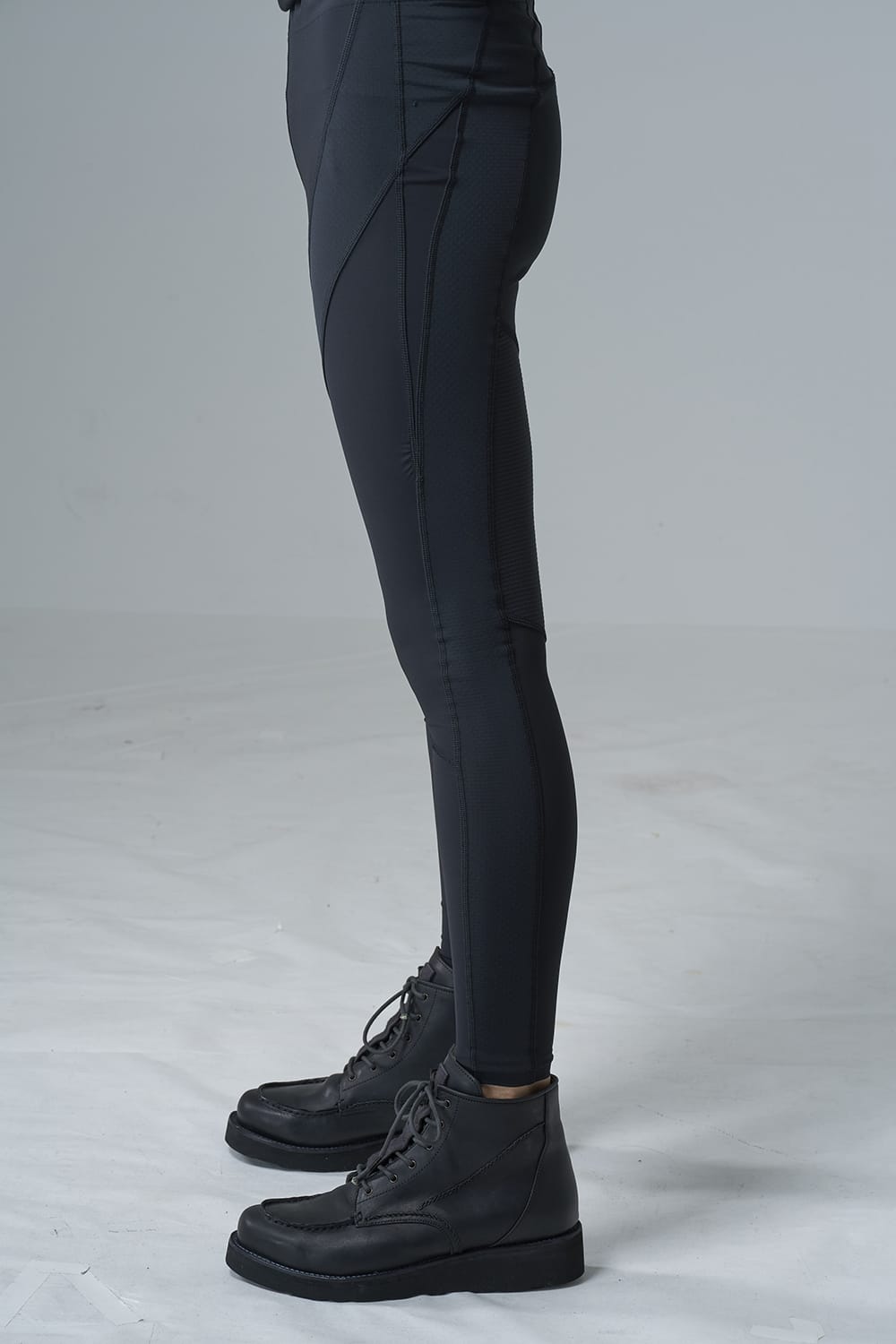 Leggings designed with a unique philosophy. Three different fabrics are used to suit each part of the body, and all of them are sewn with flat seamer processing.