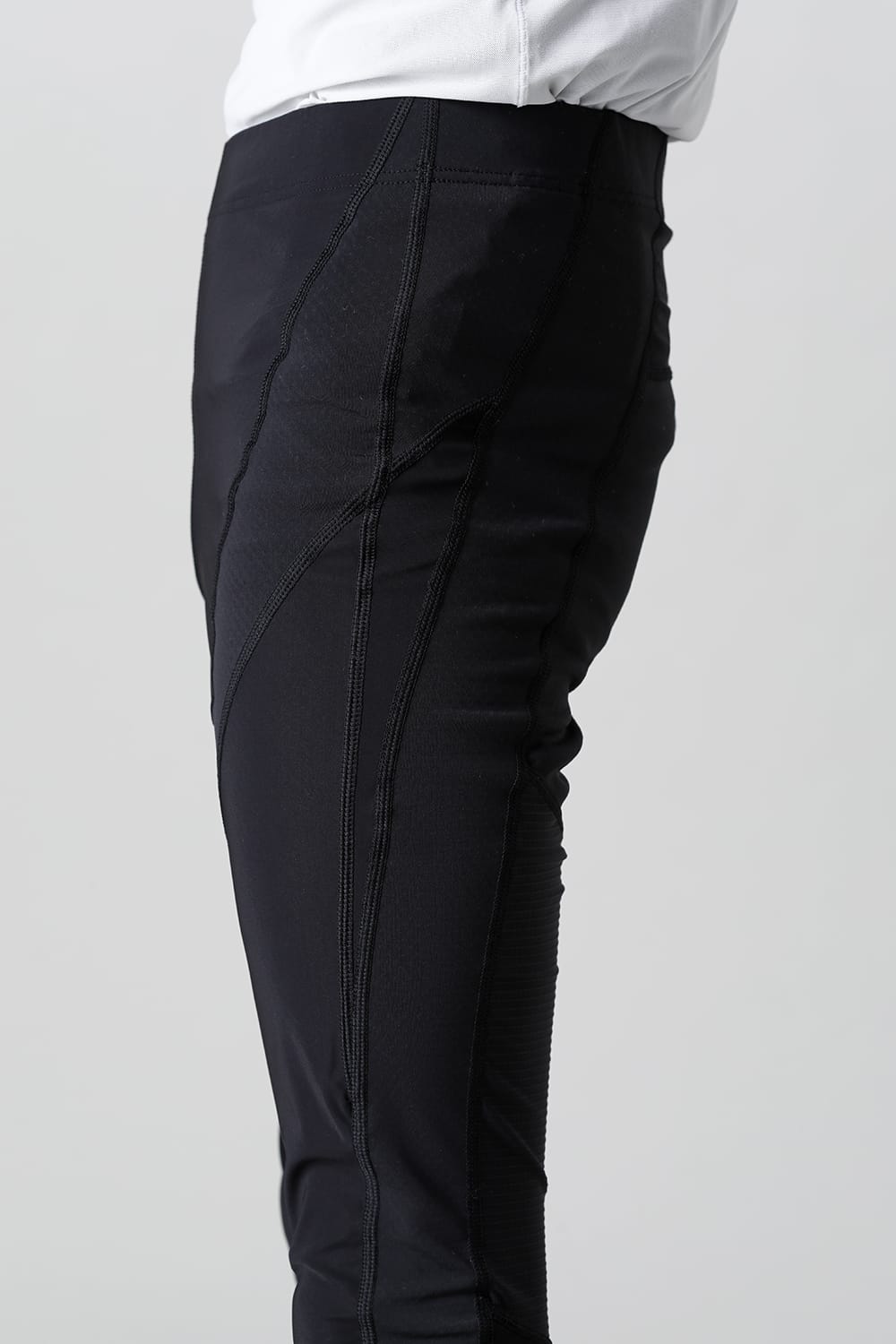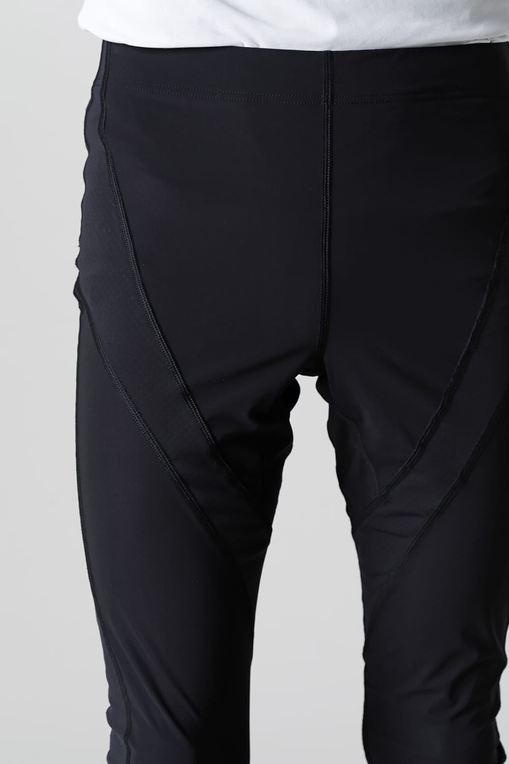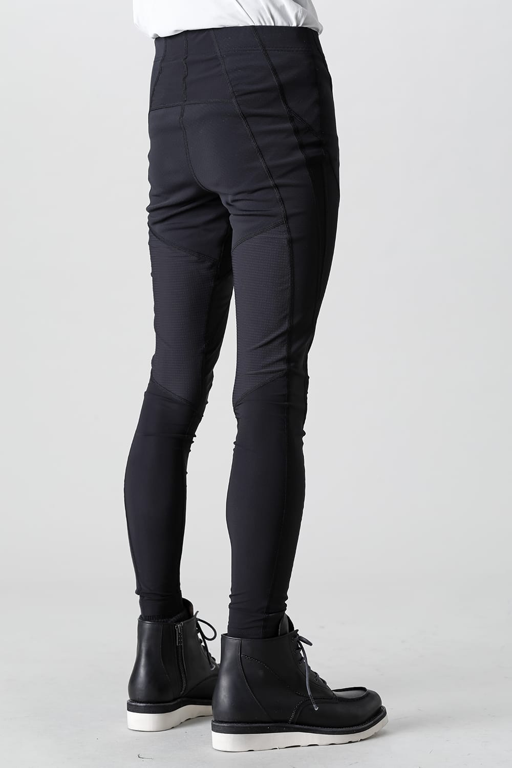 Leggings designed with a unique philosophy. Three different fabrics are used to suit each part of the body, and all of them are sewn with flat seamer processing.