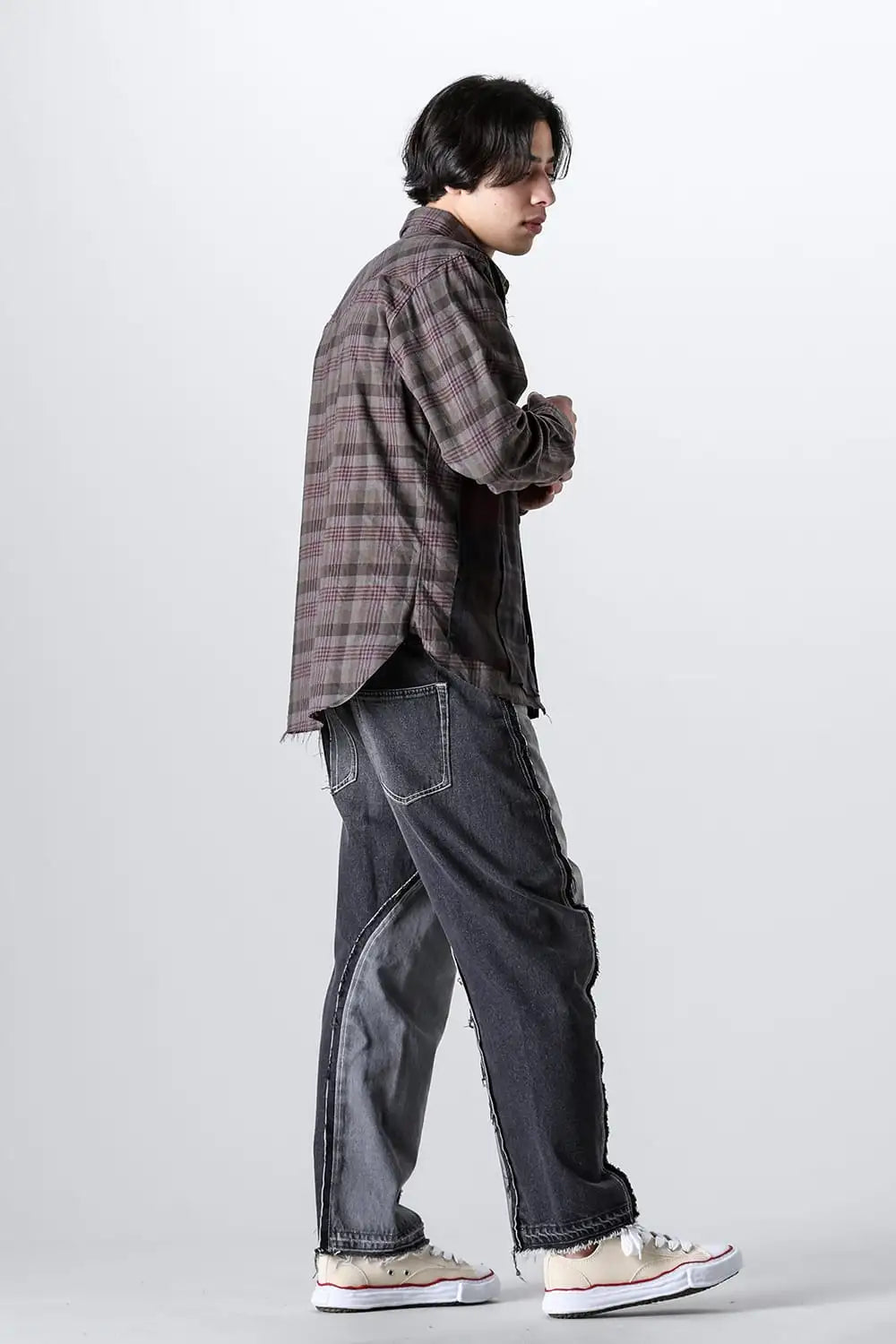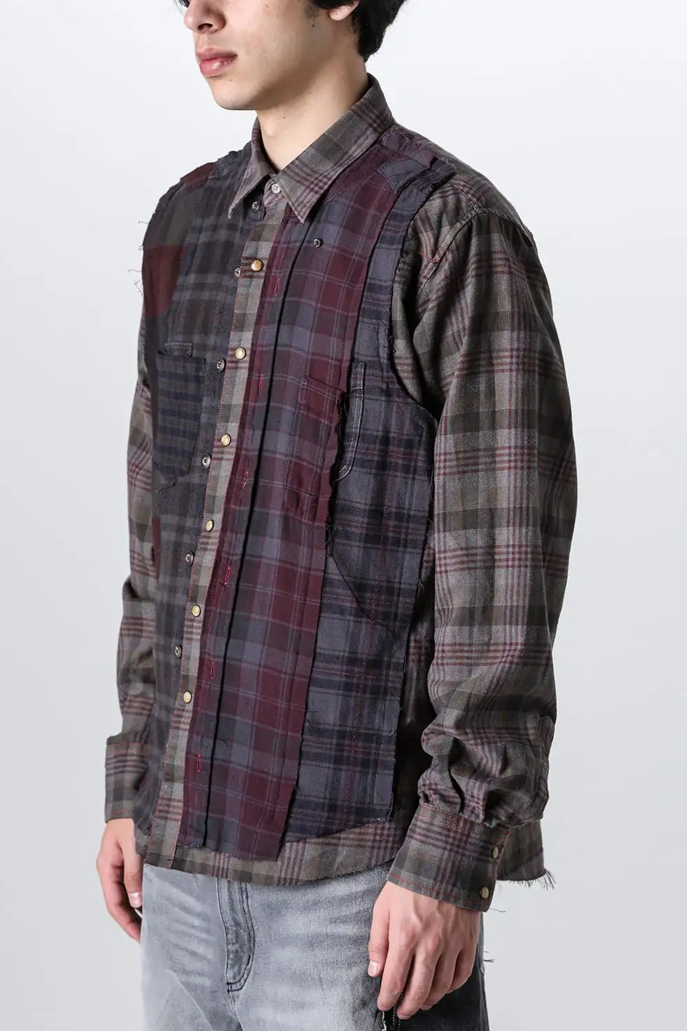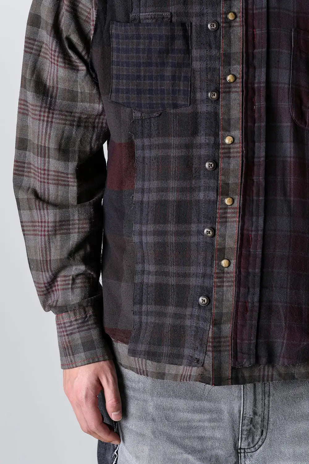 ・Following the technique of 'sewing bandanas onto vintage flannel shirts,' which is also a signature model of MIYAGIHIDETAKA, multiple flannel shirts are sewn onto vintage flannel shirt bases, each produced manually.