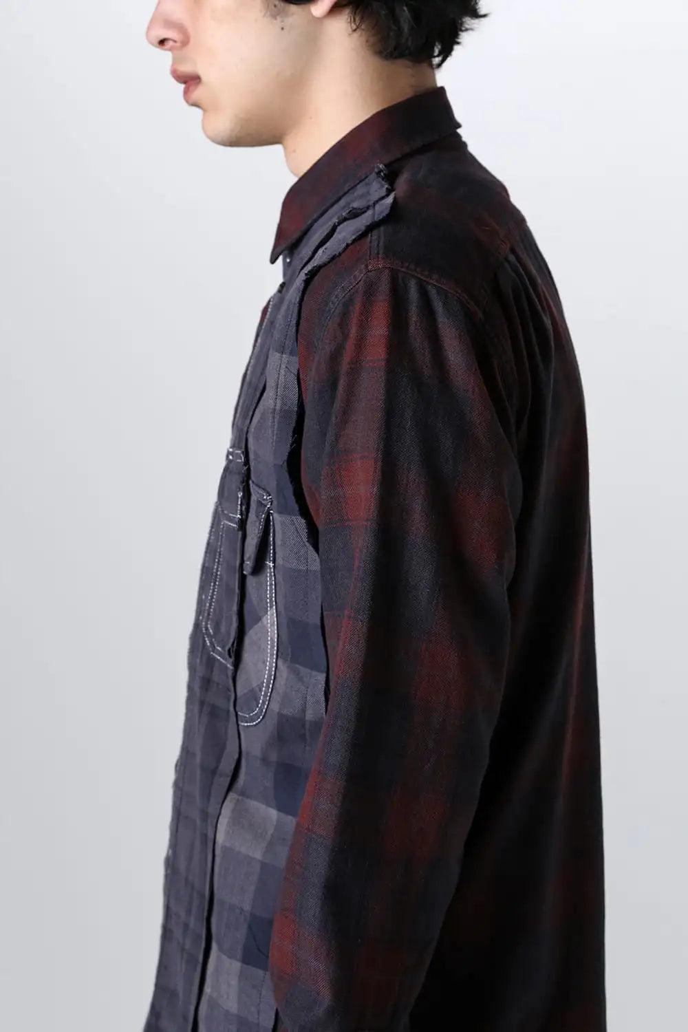 ・Following the technique of 'sewing bandanas onto vintage flannel shirts,' which is also a signature model of MIYAGIHIDETAKA, multiple flannel shirts are sewn onto vintage flannel shirt bases, each produced manually.
